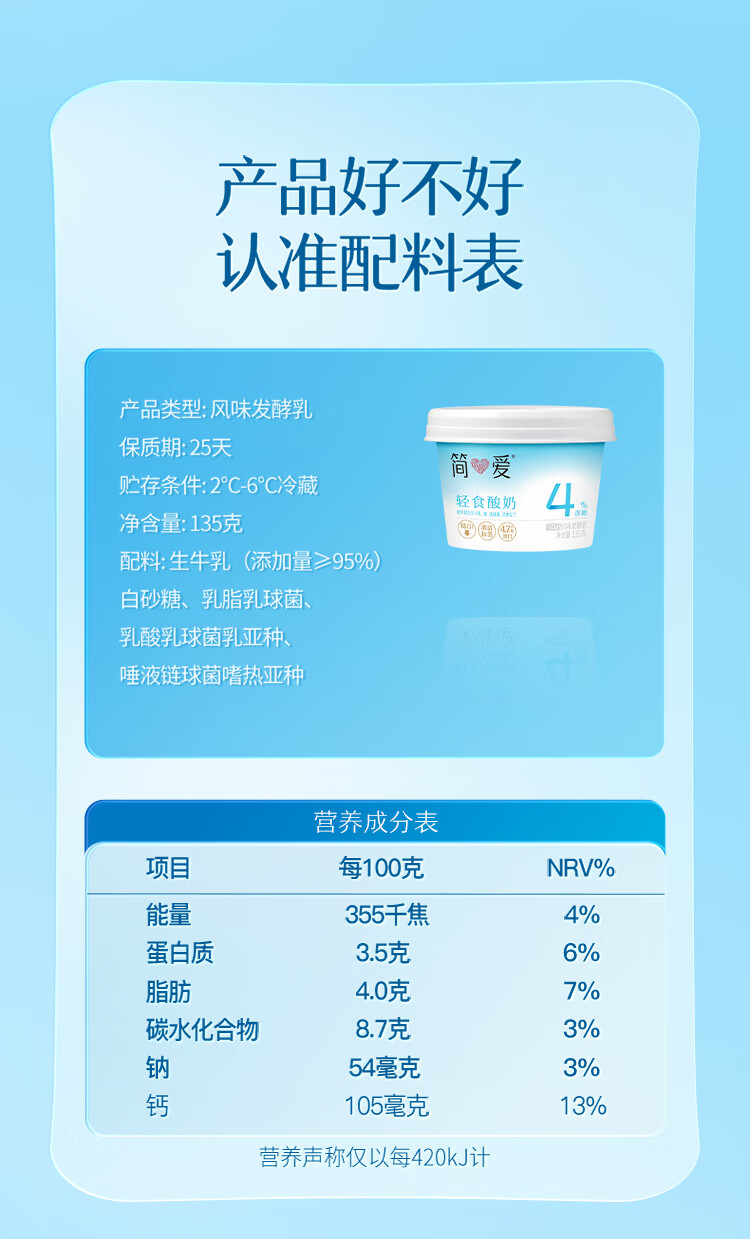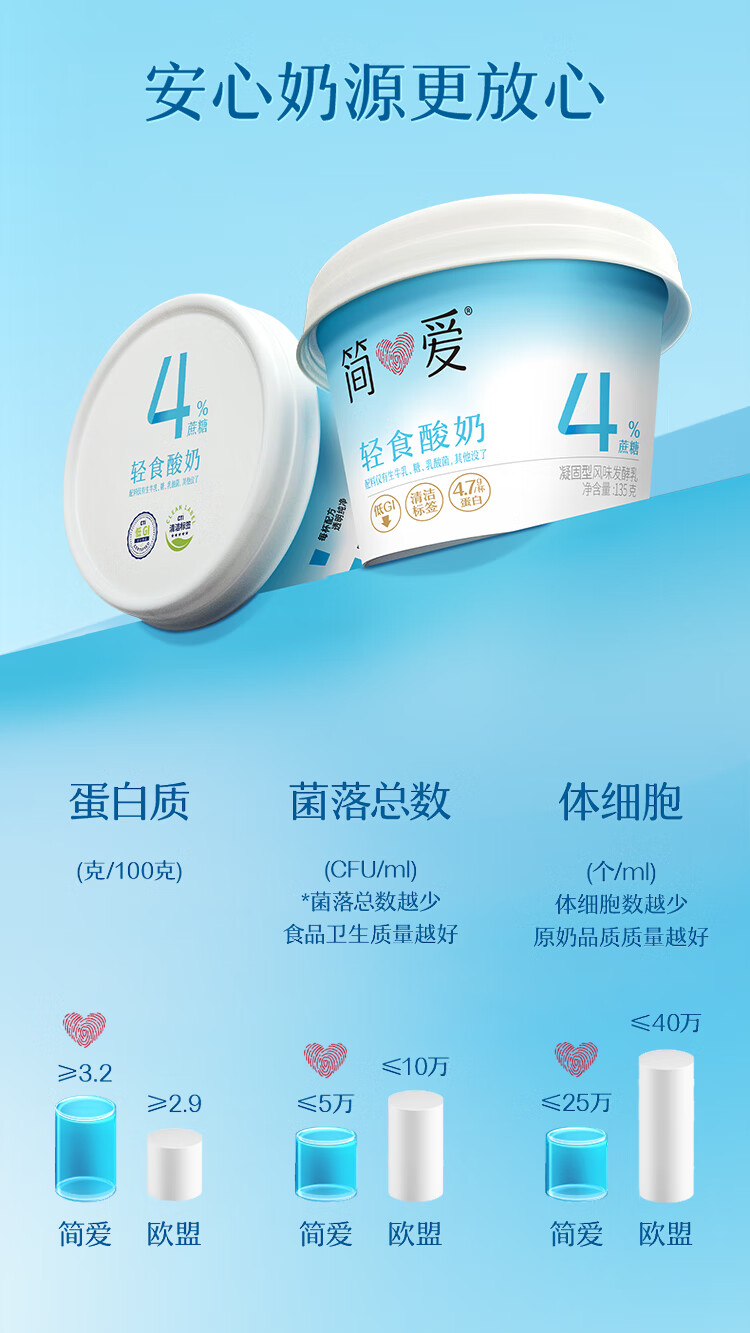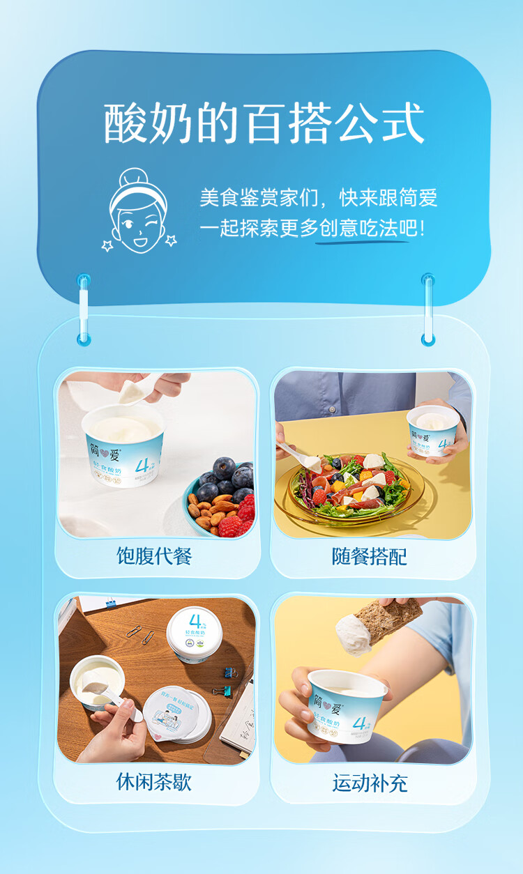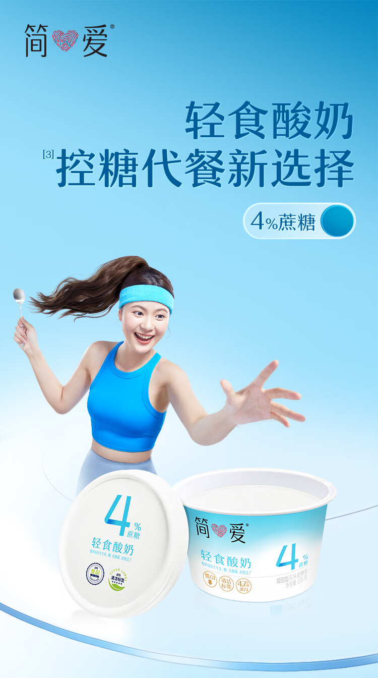 简爱 酸奶 0蔗糖 0代糖 天然乳蛋白健康儿童健身轻食低温酸奶 0%蔗糖原味135g*9杯