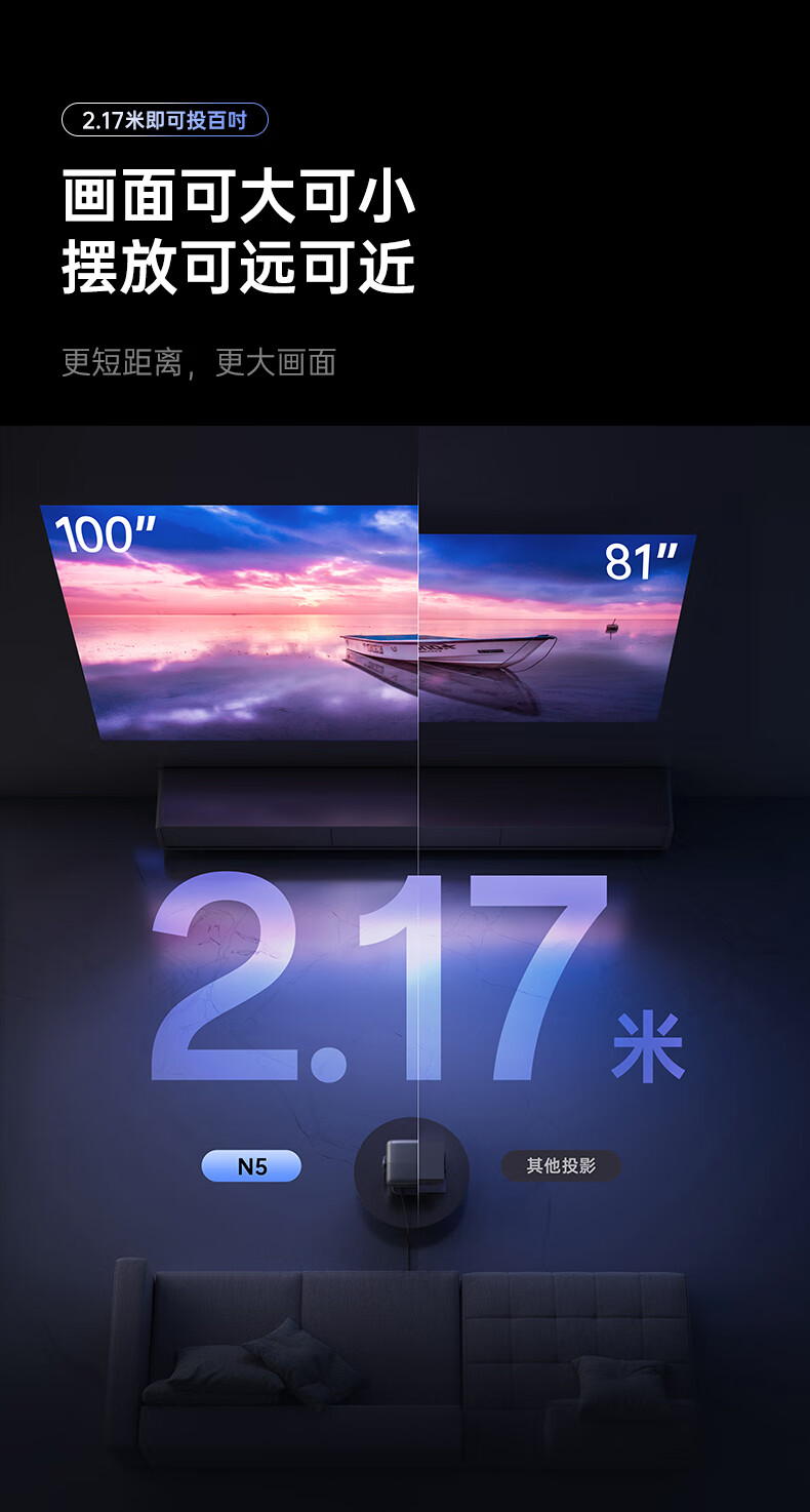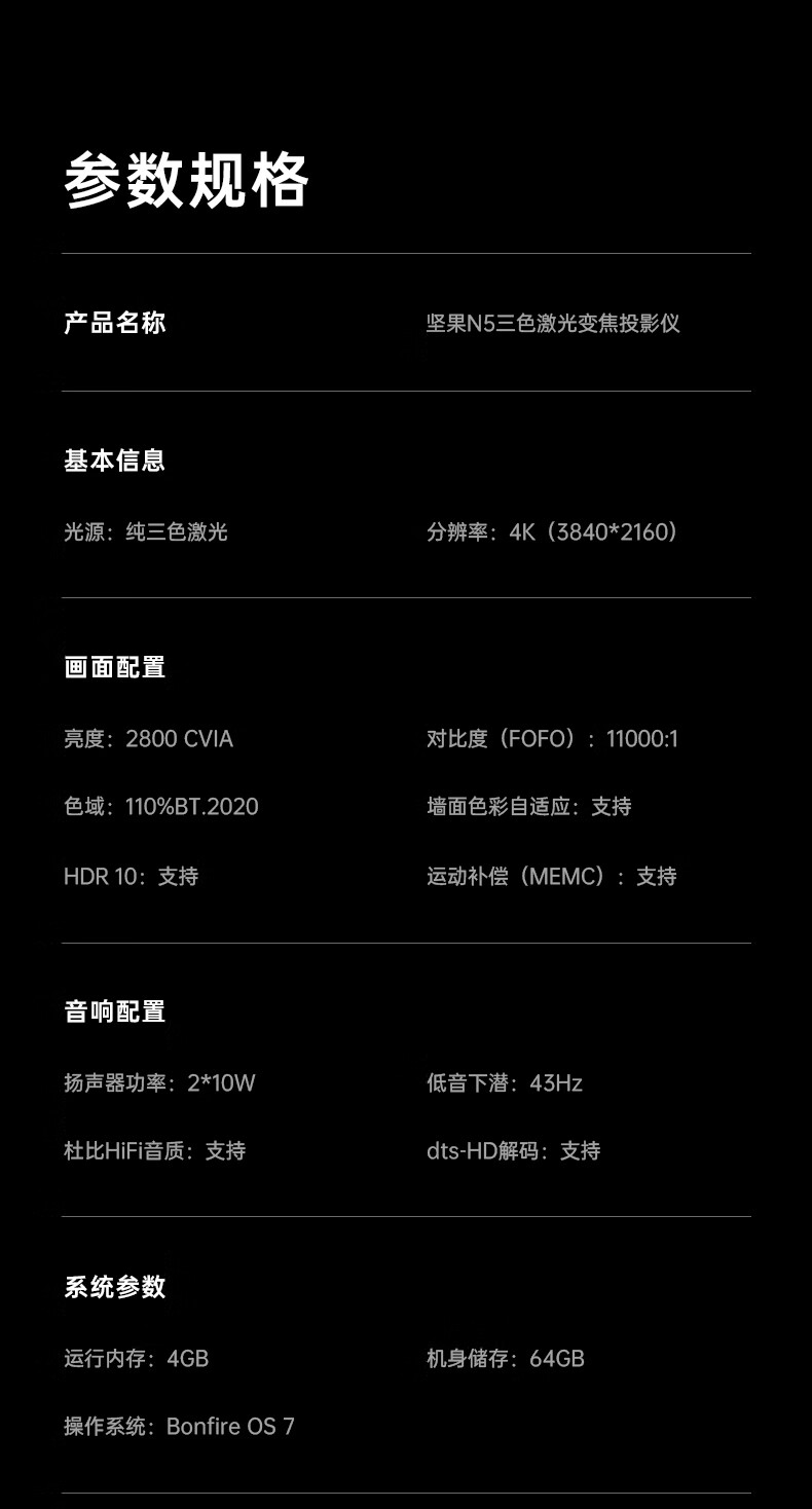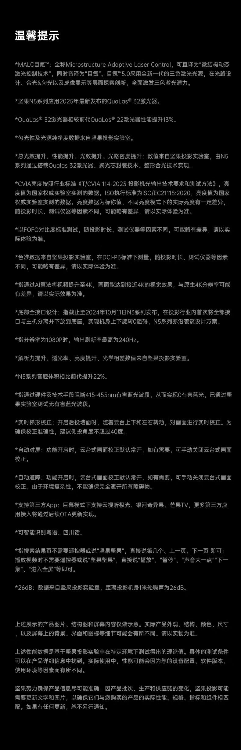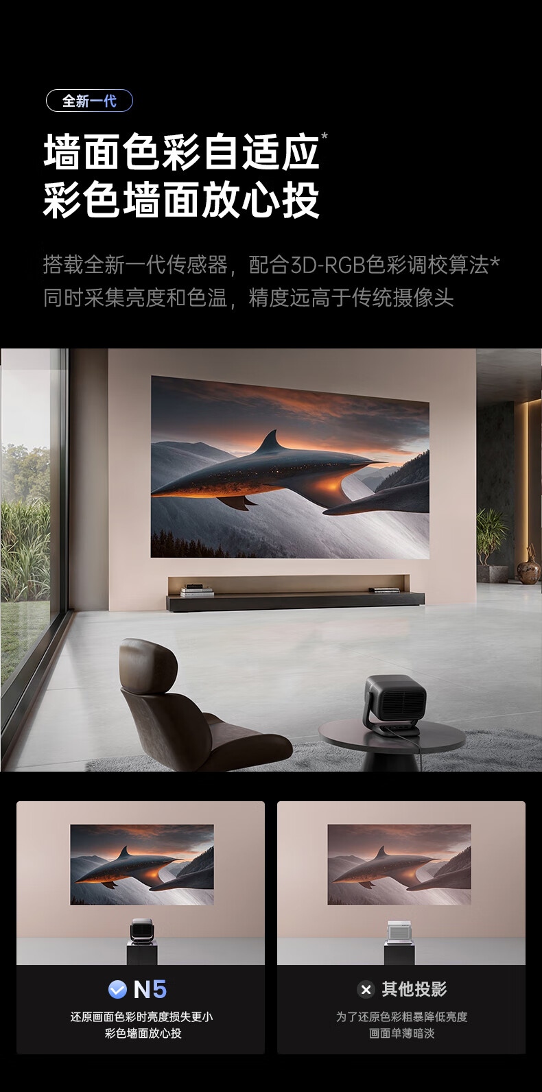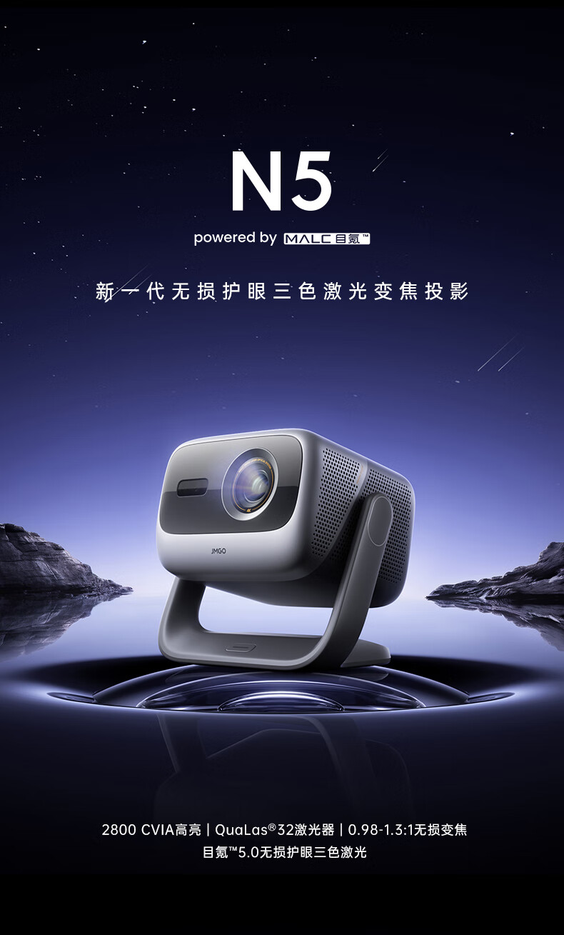 坚果投影(JMGO)N5 全新4K变焦投影仪 无损超高清云台投影机 智能家庭影院 国家补贴20%