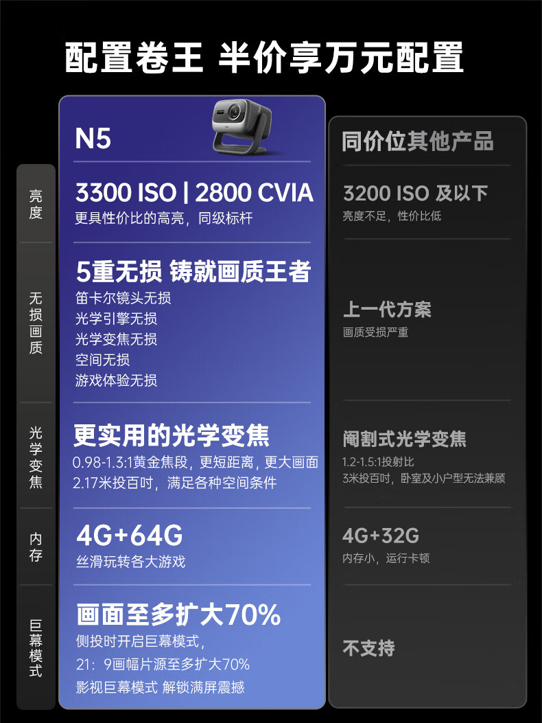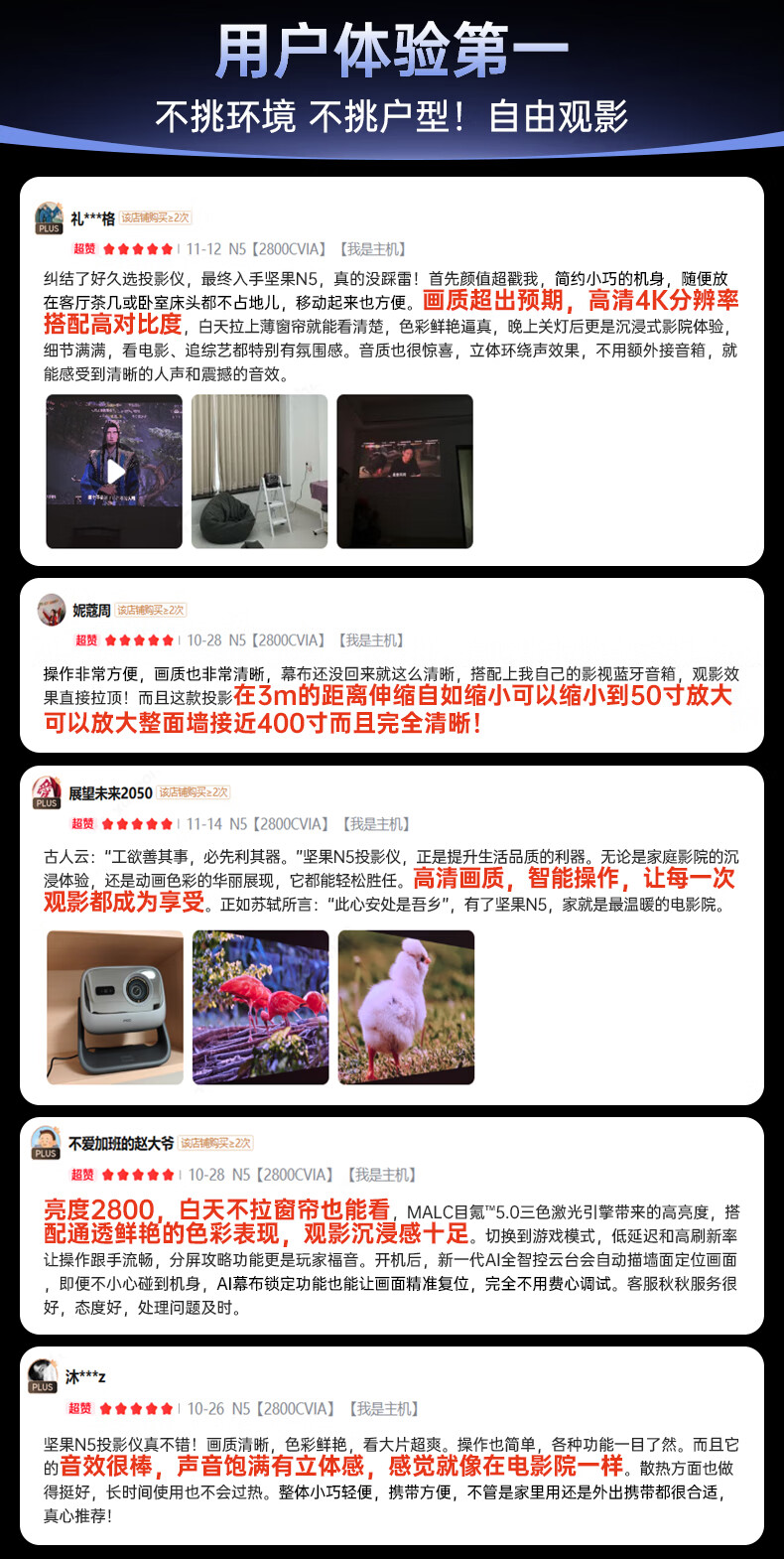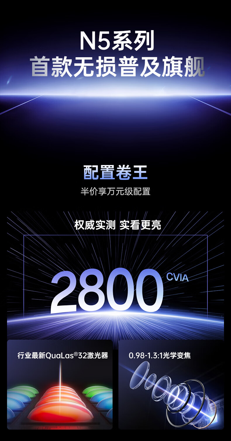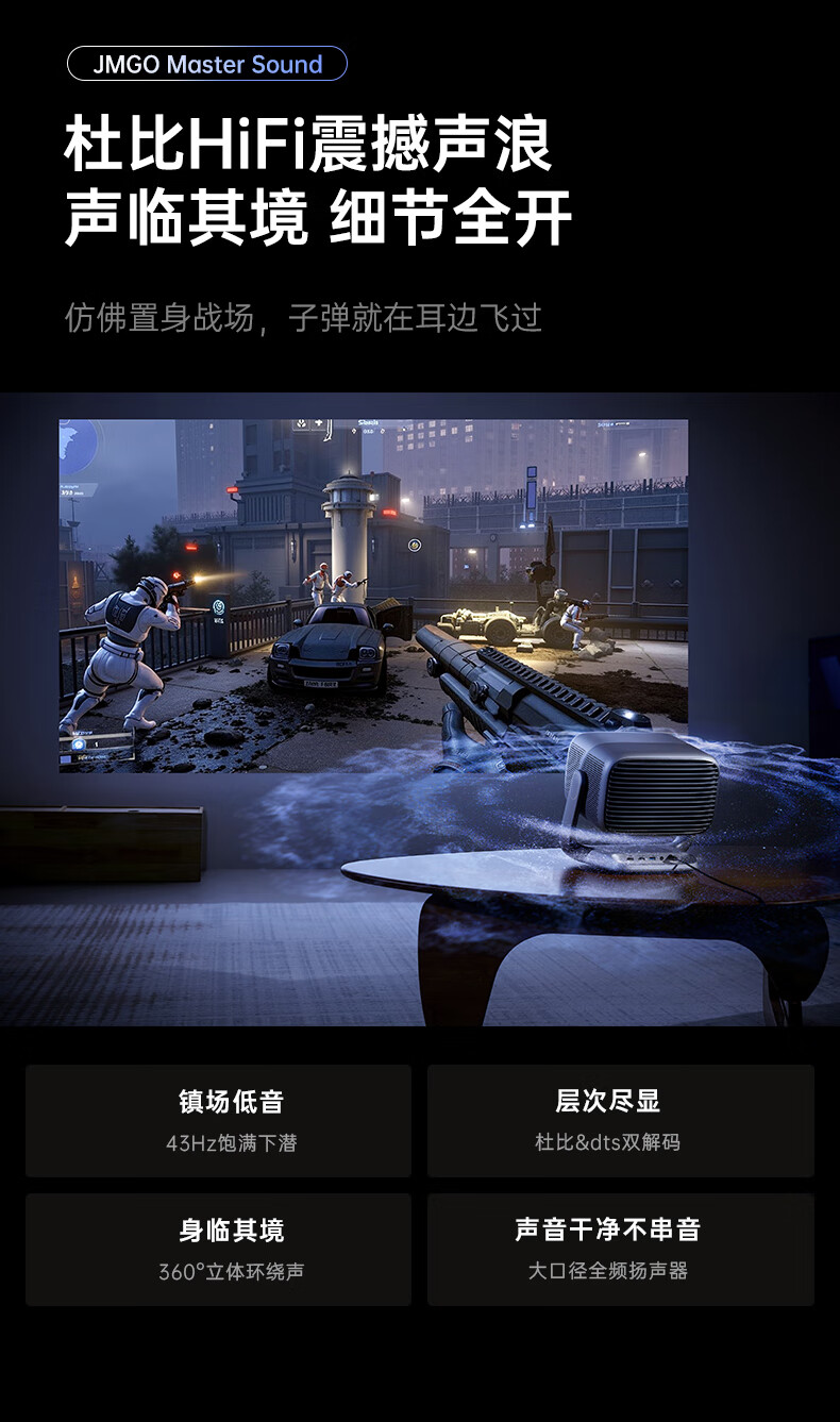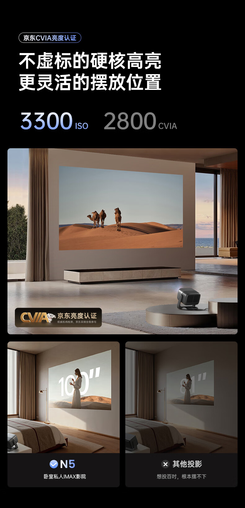 坚果投影(JMGO)N5 全新4K变焦投影仪 无损超高清云台投影机 智能家庭影院 国家补贴20%