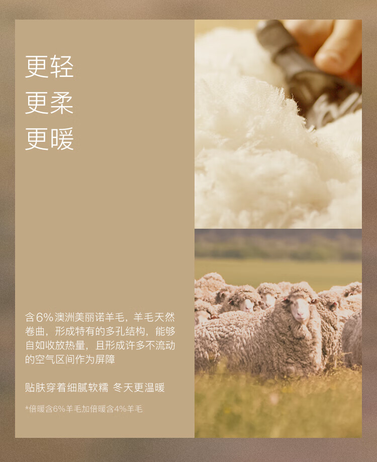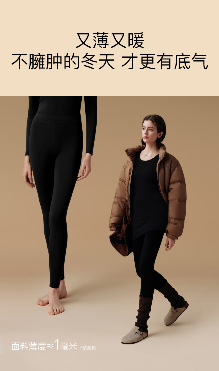 ubras25年新羽绒化含羊毛肌底裤女士保暖裤锁温打底秋裤加倍暖 漆黑色L