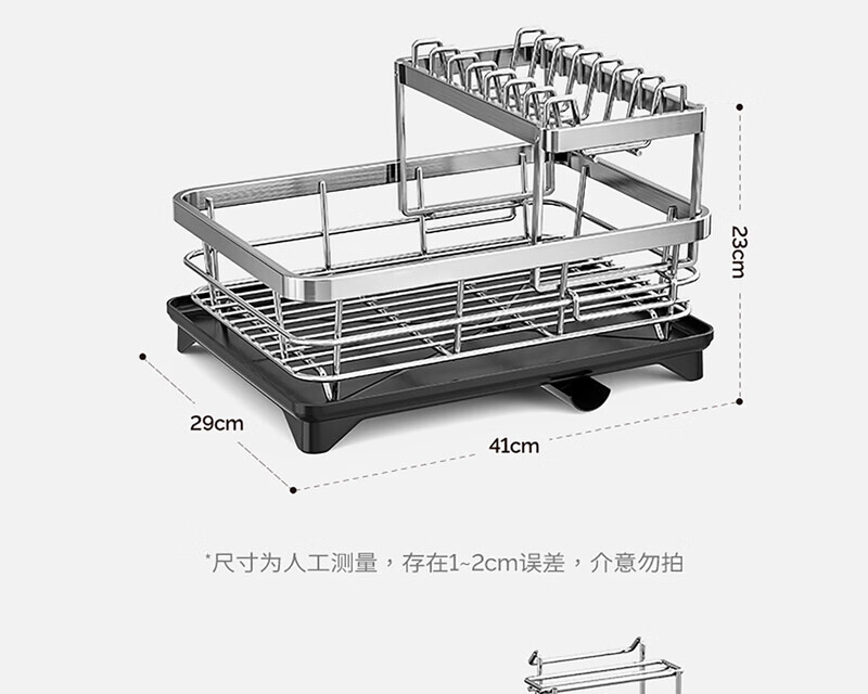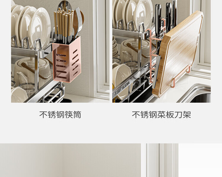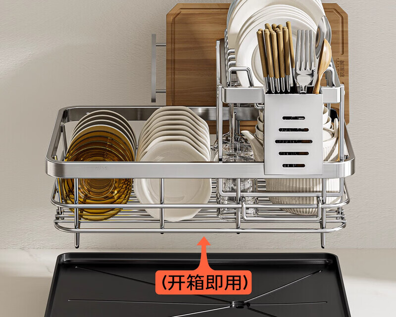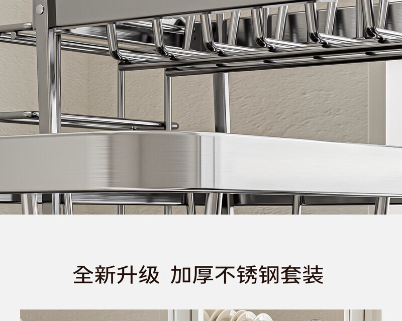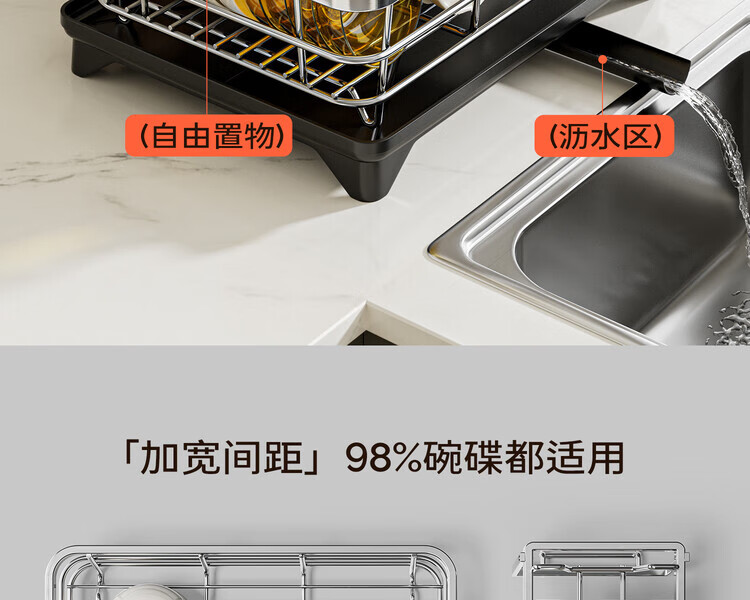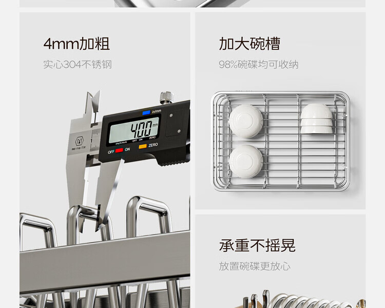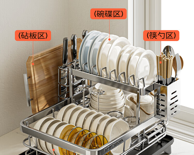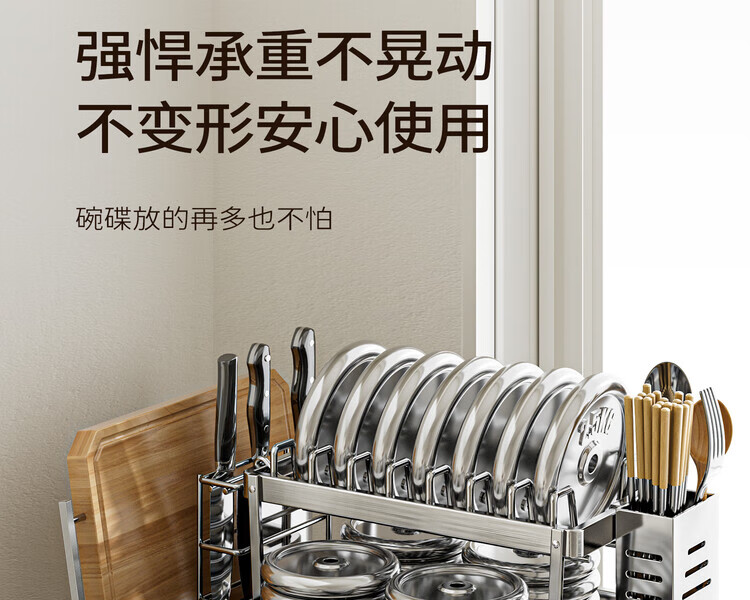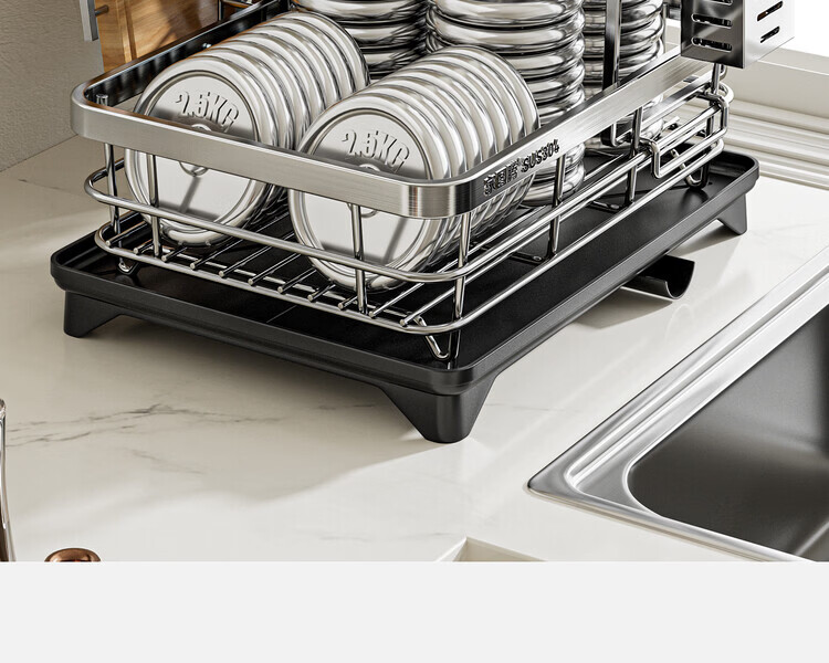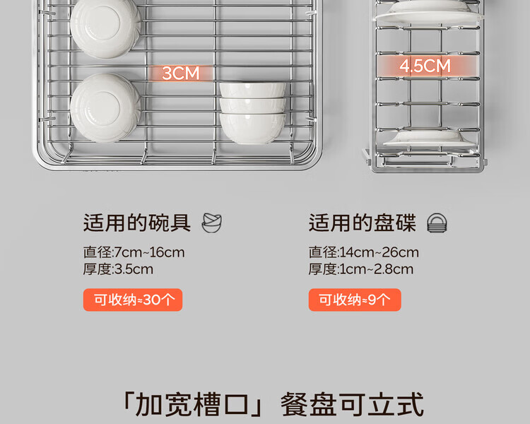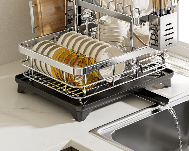 简漾碗碟收纳架304不锈钢沥水篮碗架碗盘碗筷放碗盘子双层厨房置物架 【加厚实心不锈钢】枪灰单层