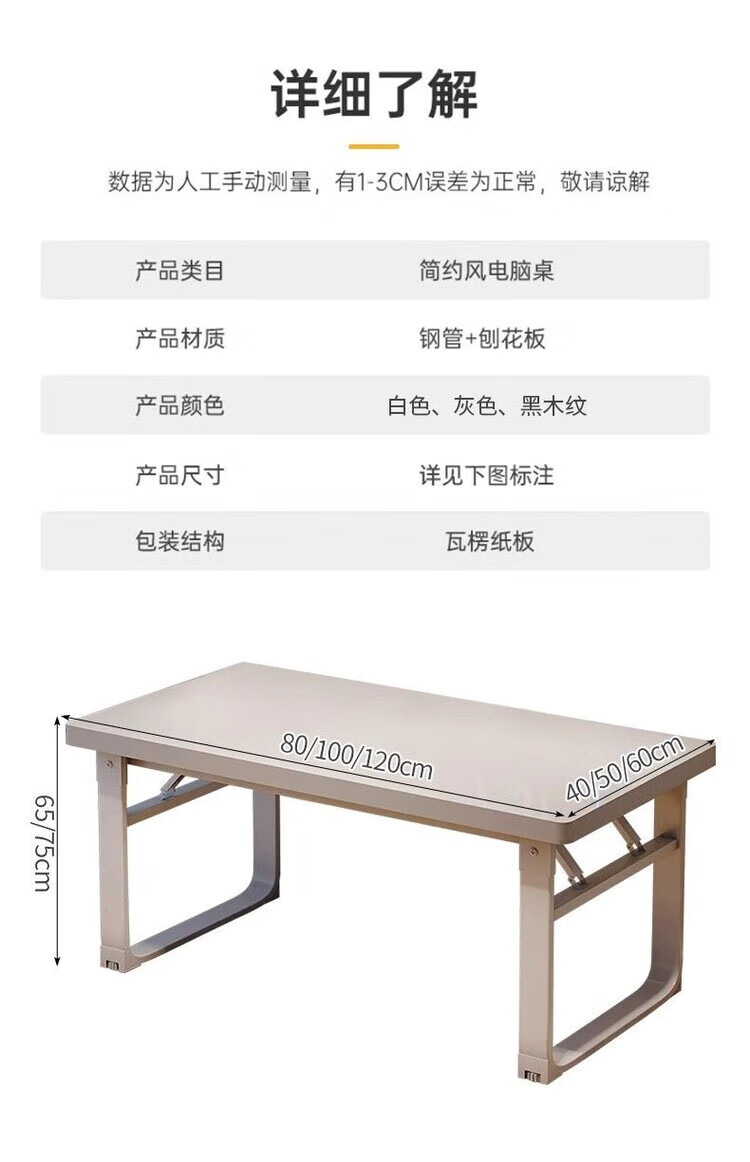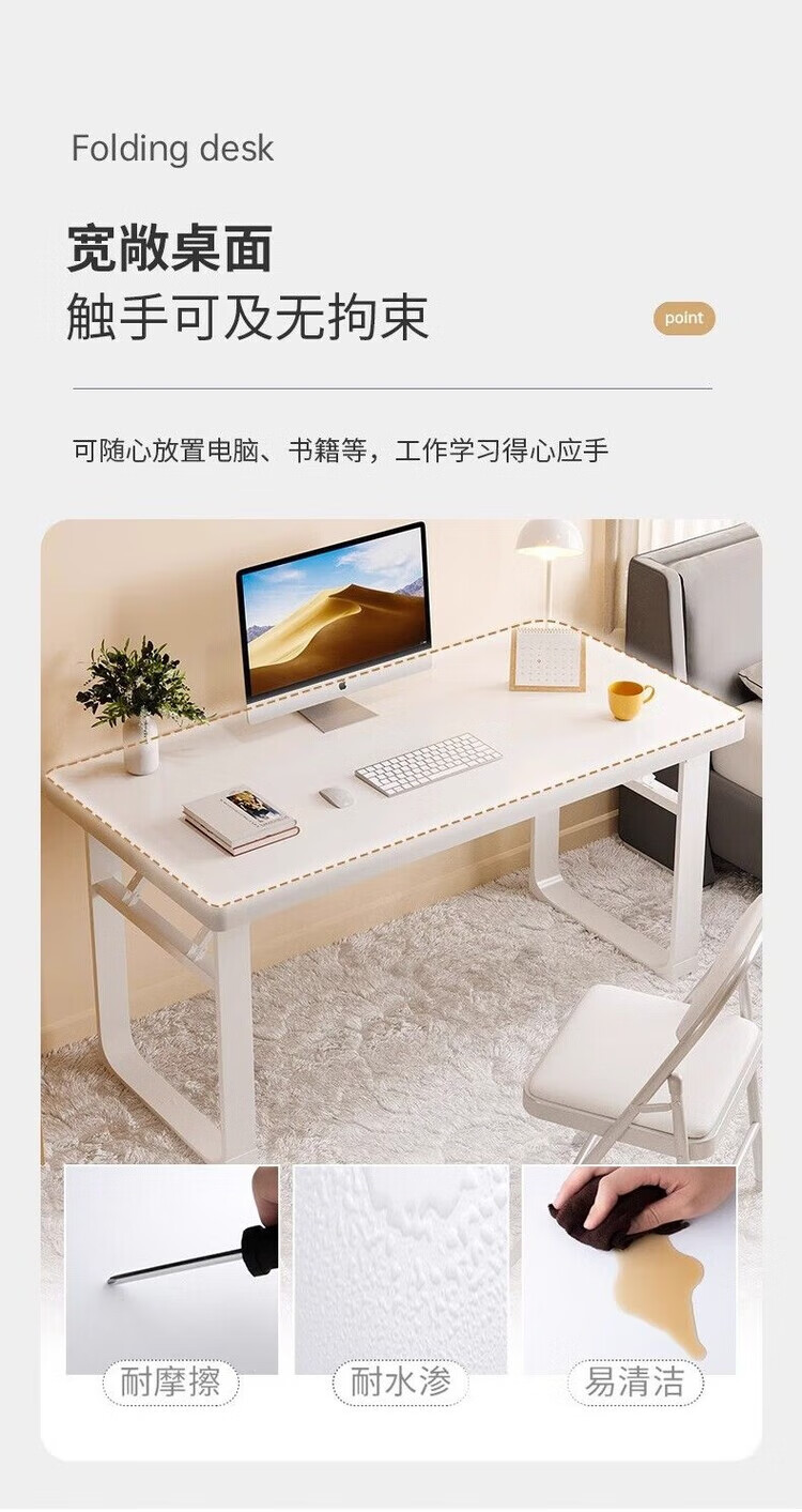倘然之家台式电脑桌简易书桌办公桌写字卧室家用学生简约学习桌长方形桌子 80X40cm【经典款】暖白-款