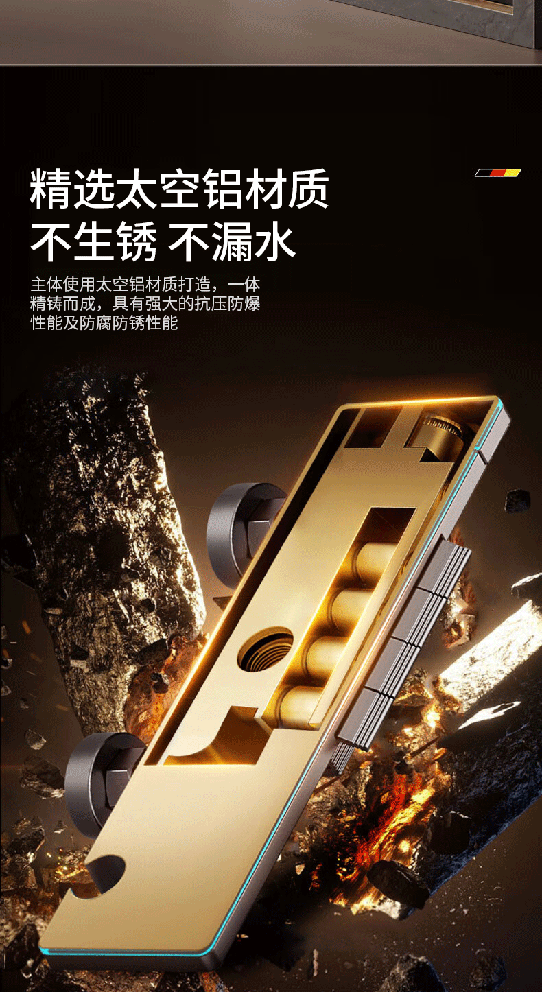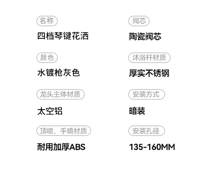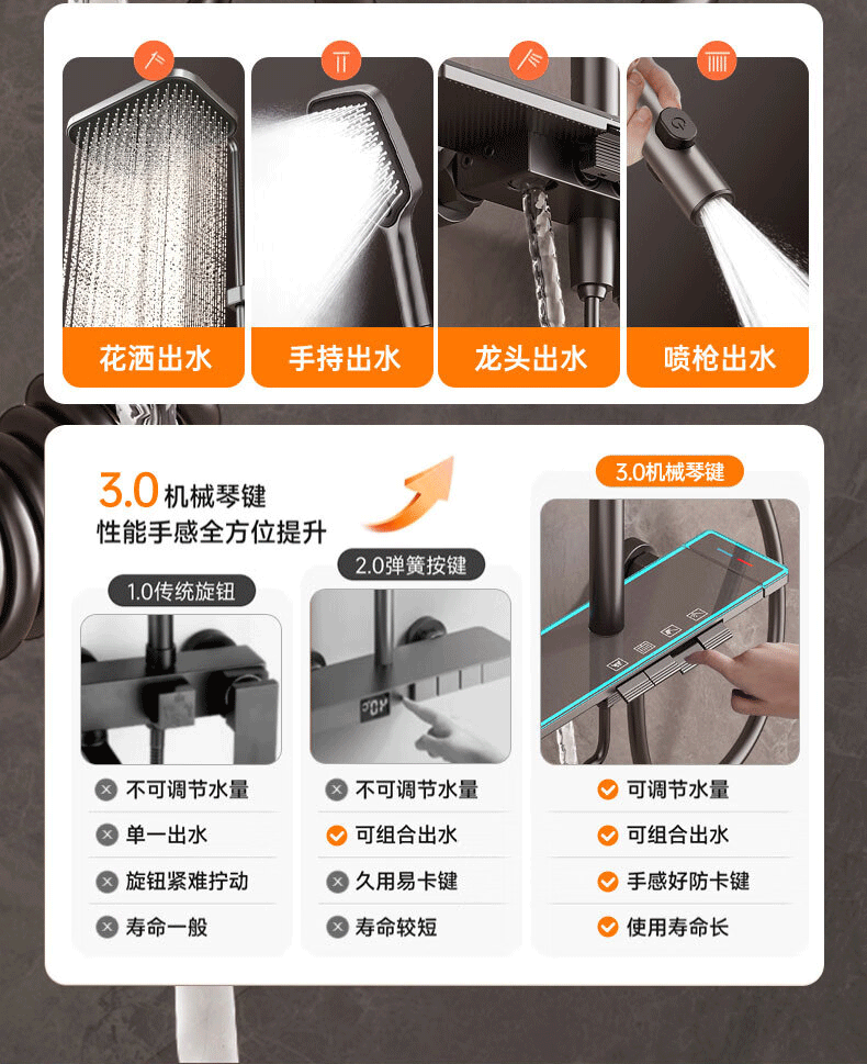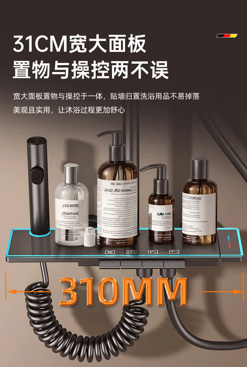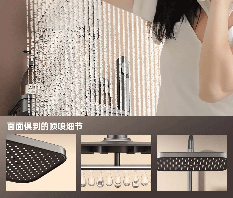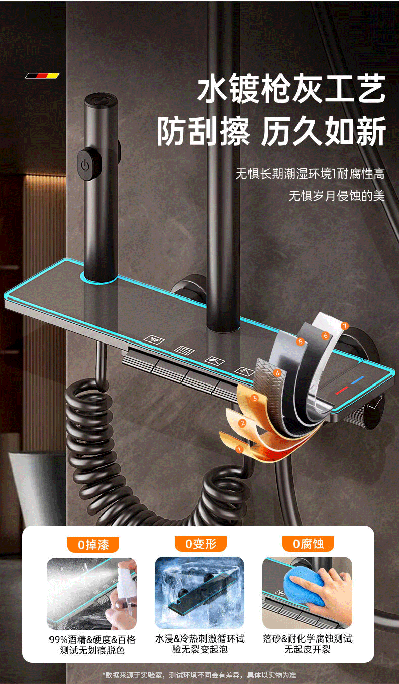 CUNKOY【德国】智能淋浴花洒套装恒温冷热增压淋浴全套一体整套2025新款 四档琴键花洒套装-动感氛围灯 太空铝主体丨钢琴按键丨创新氛围灯