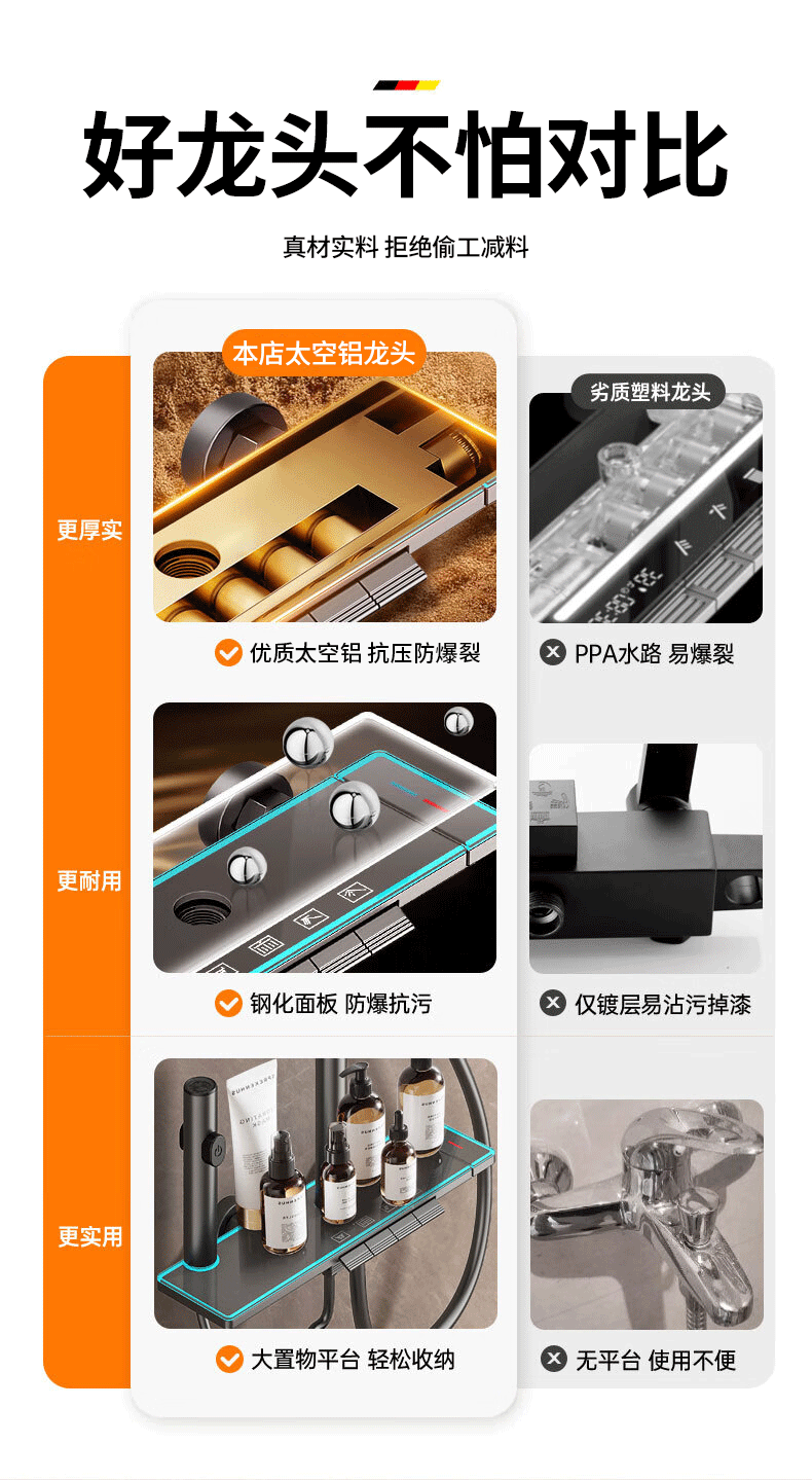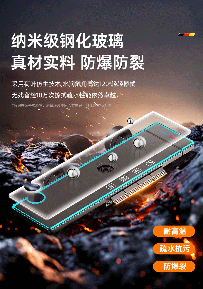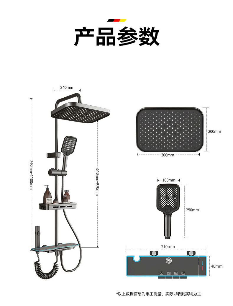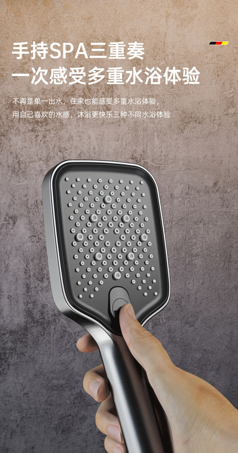 CUNKOY【德国】智能淋浴花洒套装恒温冷热增压淋浴全套一体整套2025新款 四档琴键花洒套装-动感氛围灯 太空铝主体丨钢琴按键丨创新氛围灯