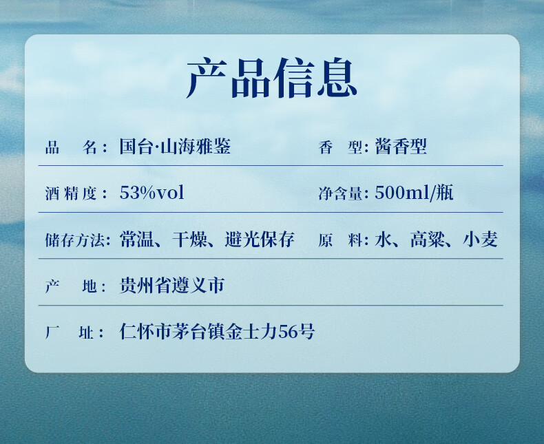 国台山海雅鉴 礼盒装53度酱香型白酒 新春送礼 53度 500mL 6瓶 整箱