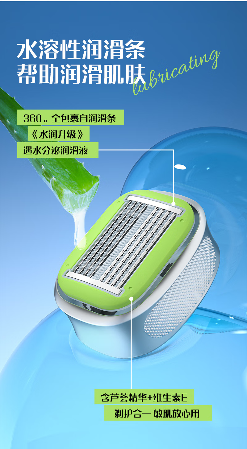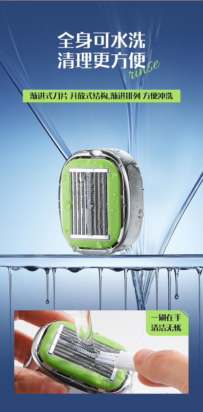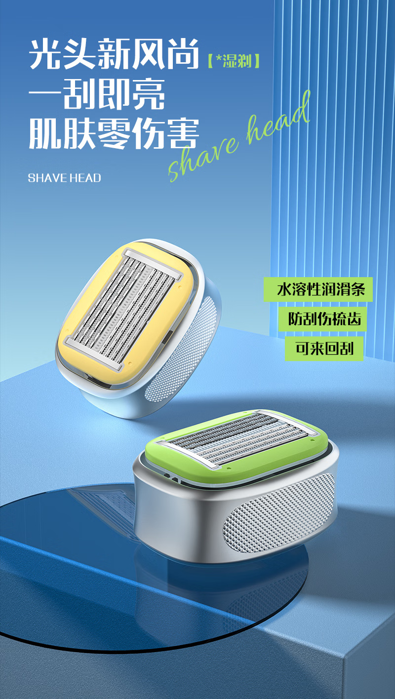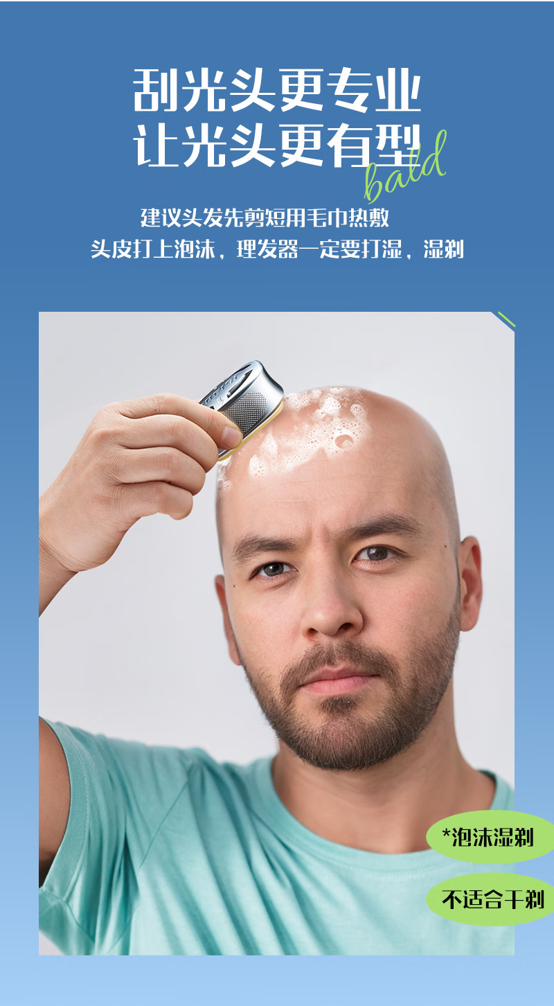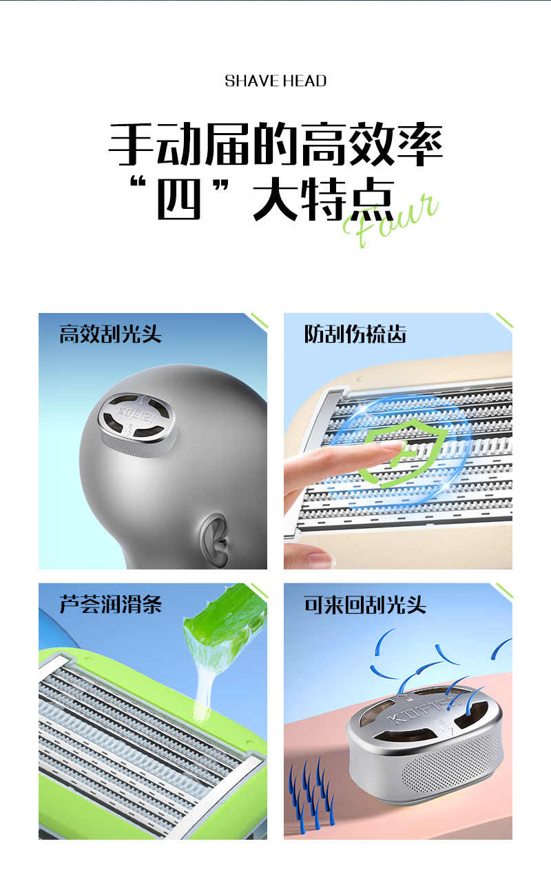 手动剃光头神器新款防刮伤8层不锈钢刀片刮脸剃发水洗原装家用 冰晶绿1套送泡沫
