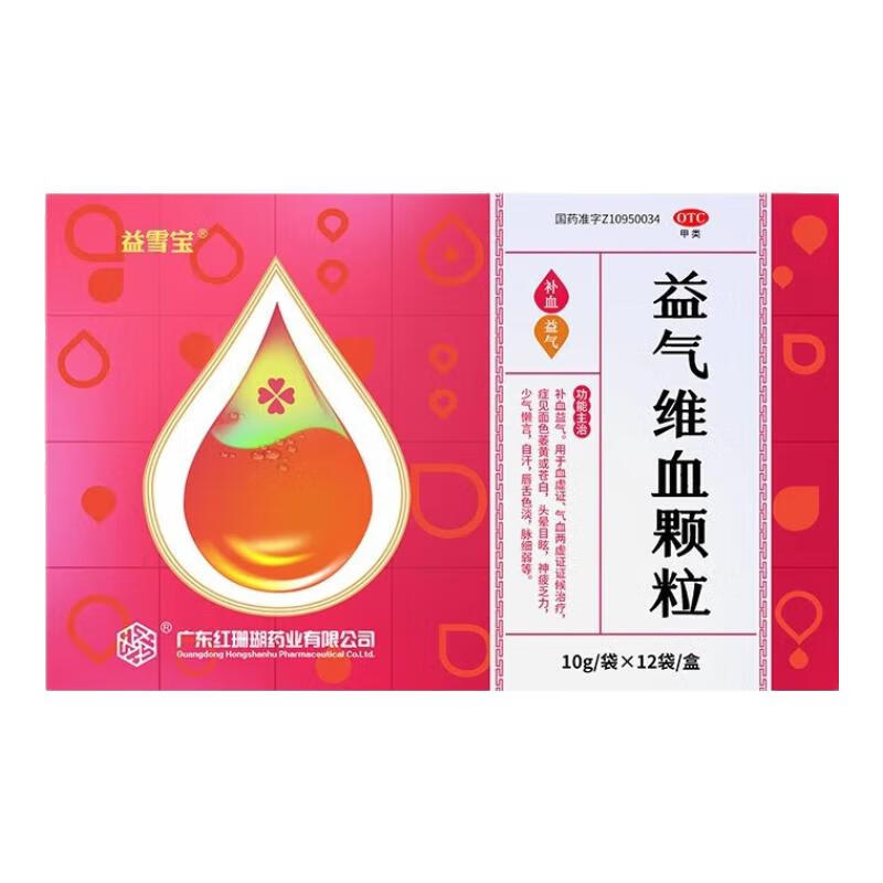 益雪宝益气维血颗粒 10g*12袋/盒 缺铁性贫血 面色萎黄或苍白 眩晕 神疲乏力 少气懒言 自汗 1盒【4天用量】