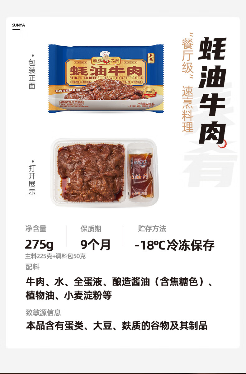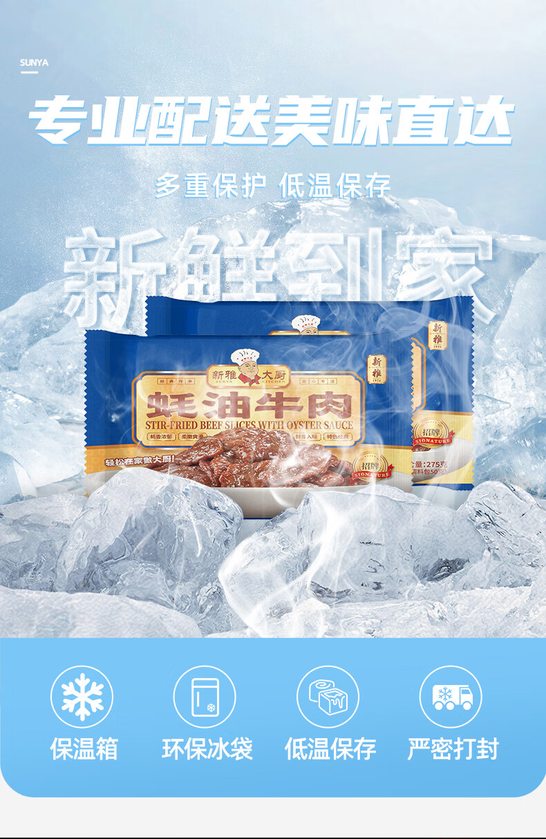 新雅多袋装速冻滑嫩蚝油牛肉片速食半成品菜粤菜预制菜老字号端午硬菜 蚝油牛肉275gX5袋)