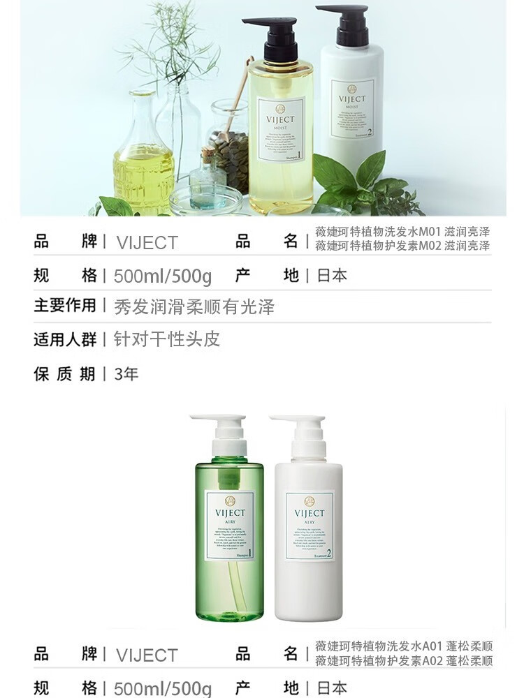 薇婕珂特日本进口-植物洗发水M01 滋润亮泽500ml 滋养头皮 干性发质 黄色