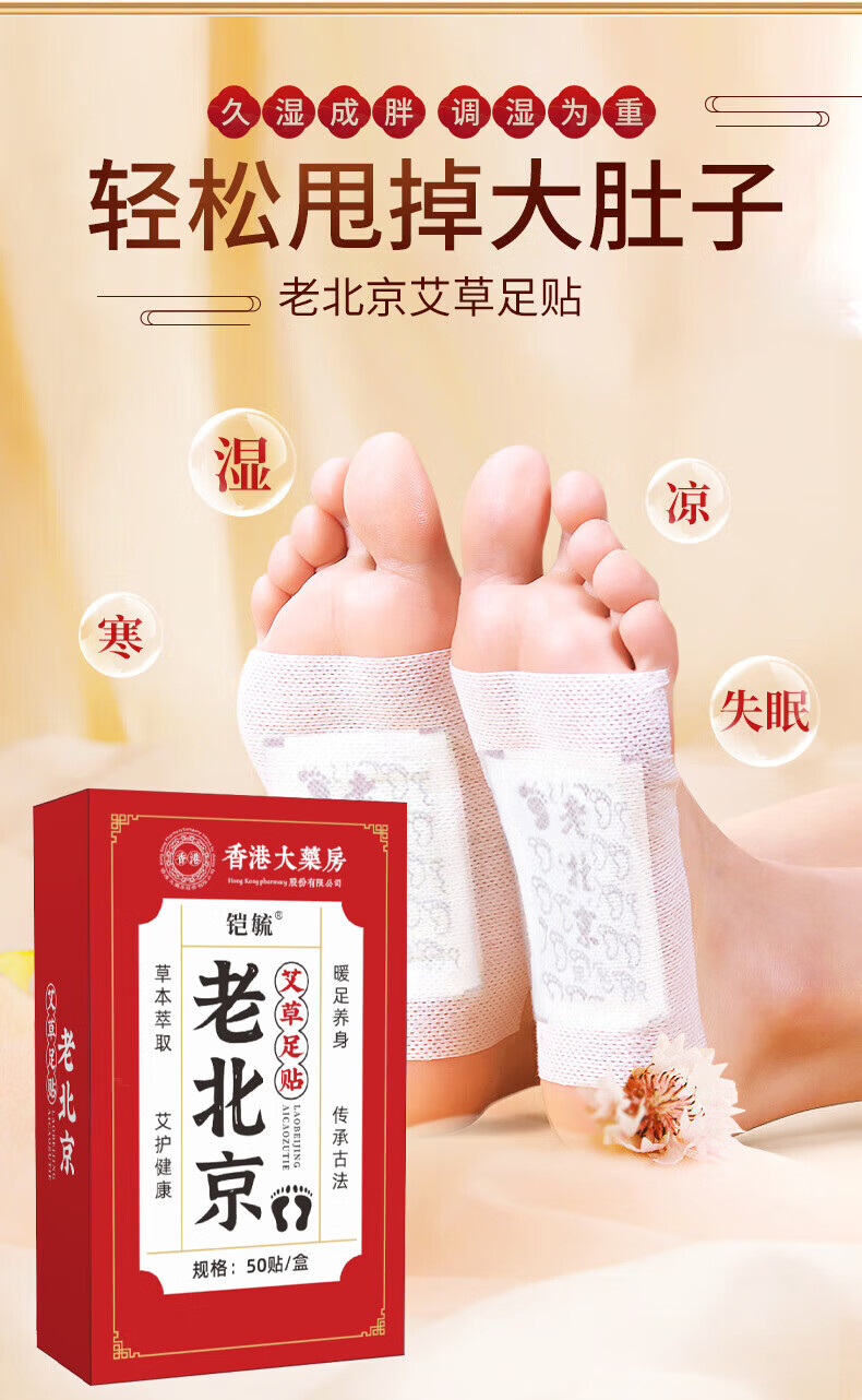香港大药房老北京凯敏艾草足贴助睡眠祛湿驱寒艾灸暖足贴脚底穴位足部护理 3盒装/买二送一【安睡一整夜】