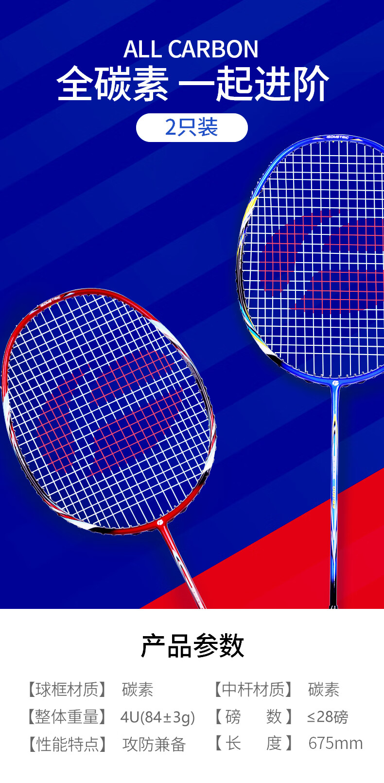佛雷斯(FLEX)全碳素羽毛球拍 对拍 超轻双拍轻巧耐打高弹攻防兼备双打男女通用 2支装【红色1支+蓝色1支】 4U已穿线24磅