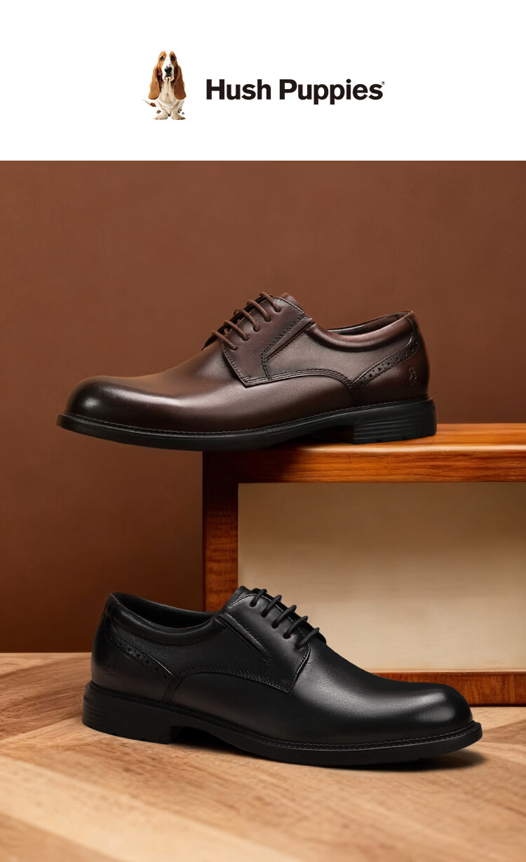 暇步士(Hush Puppies)【商场同款】男鞋商务皮鞋 德比鞋正装鞋通勤皮鞋男士婚鞋 卡布奇诺 44