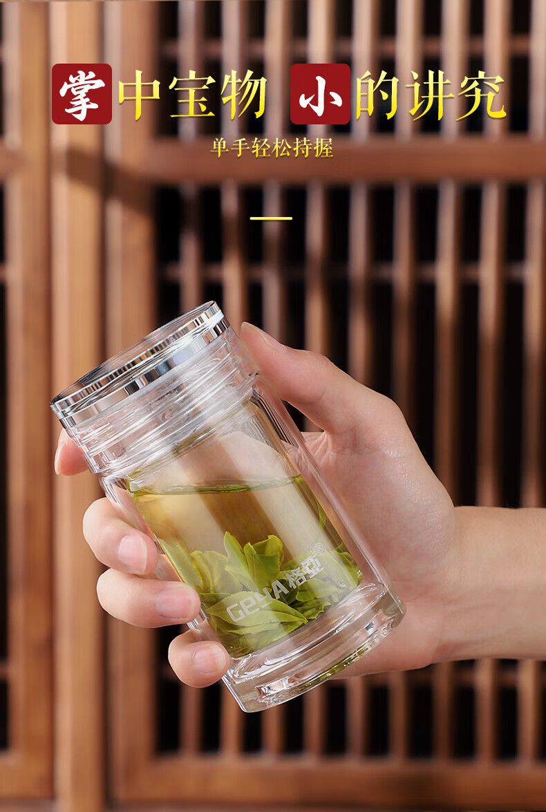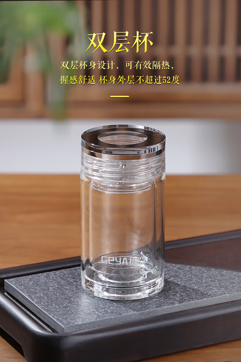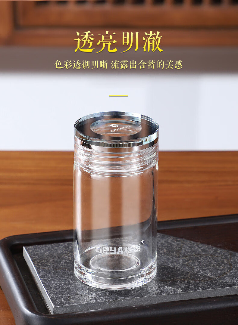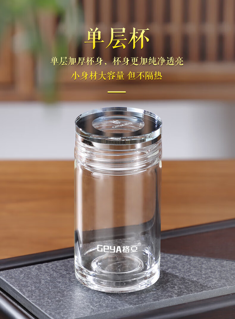格亚(GEYA)玲珑双层玻璃杯迷你茶杯男女士高颜值水杯矮胖泡茶杯便携小杯子 单层杯240ml 【礼盒装】