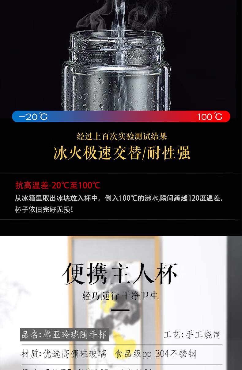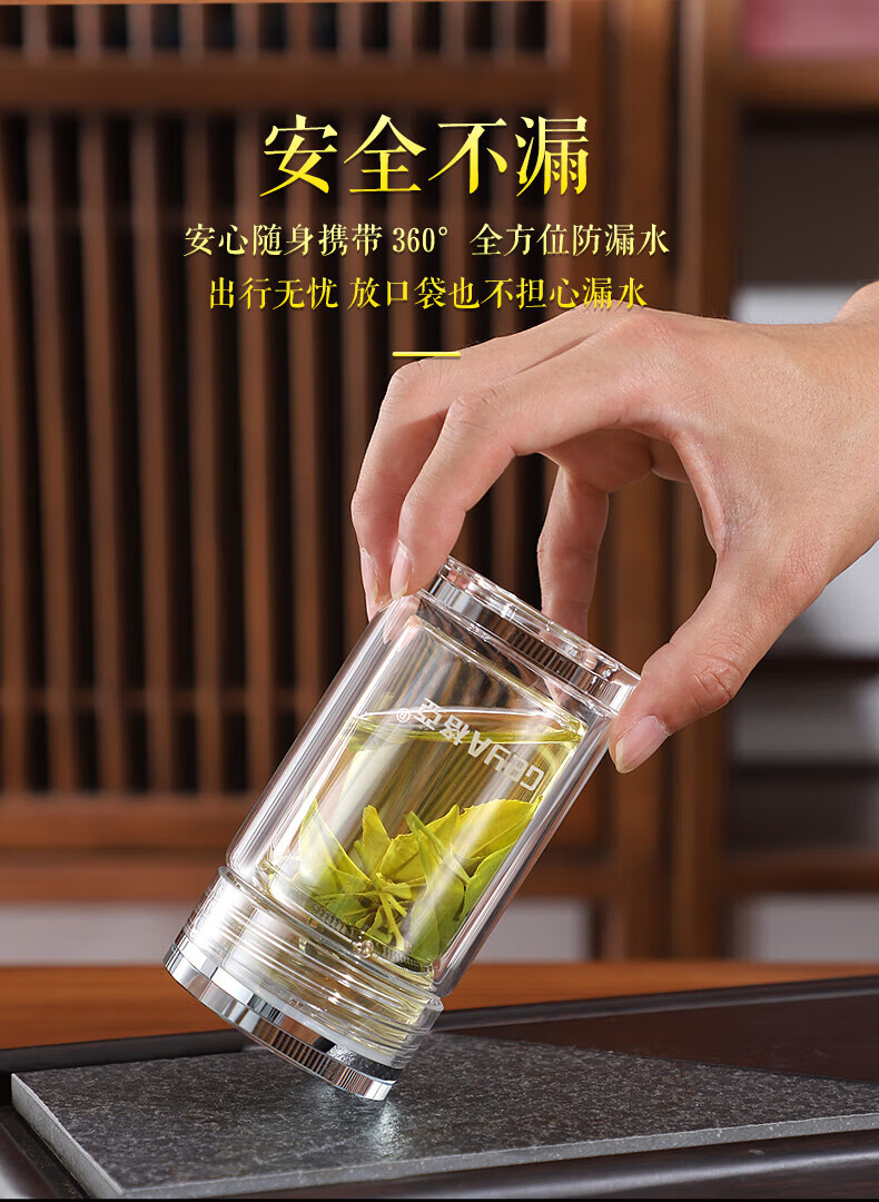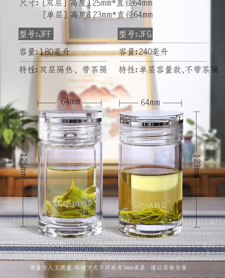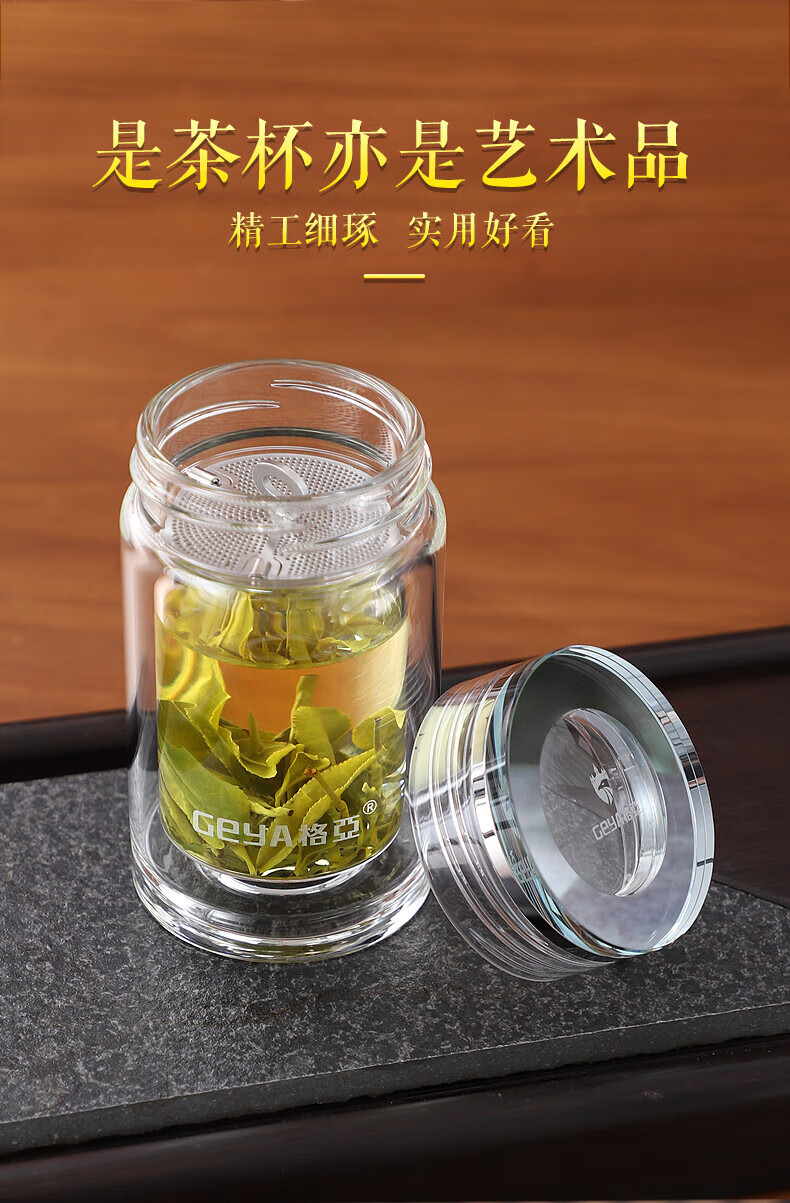 格亚(GEYA)玲珑双层玻璃杯迷你茶杯男女士高颜值水杯矮胖泡茶杯便携小杯子 单层杯240ml 【礼盒装】