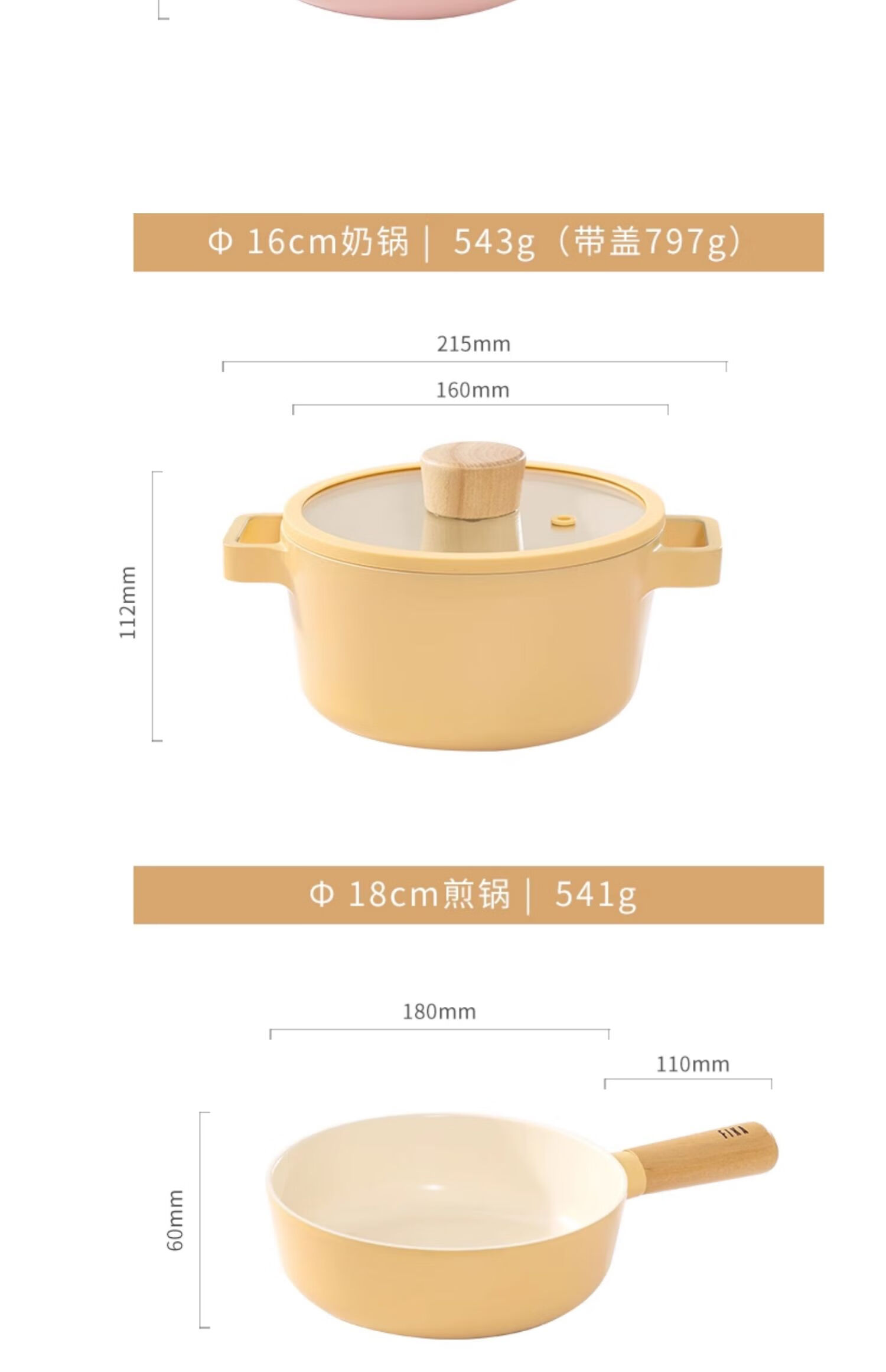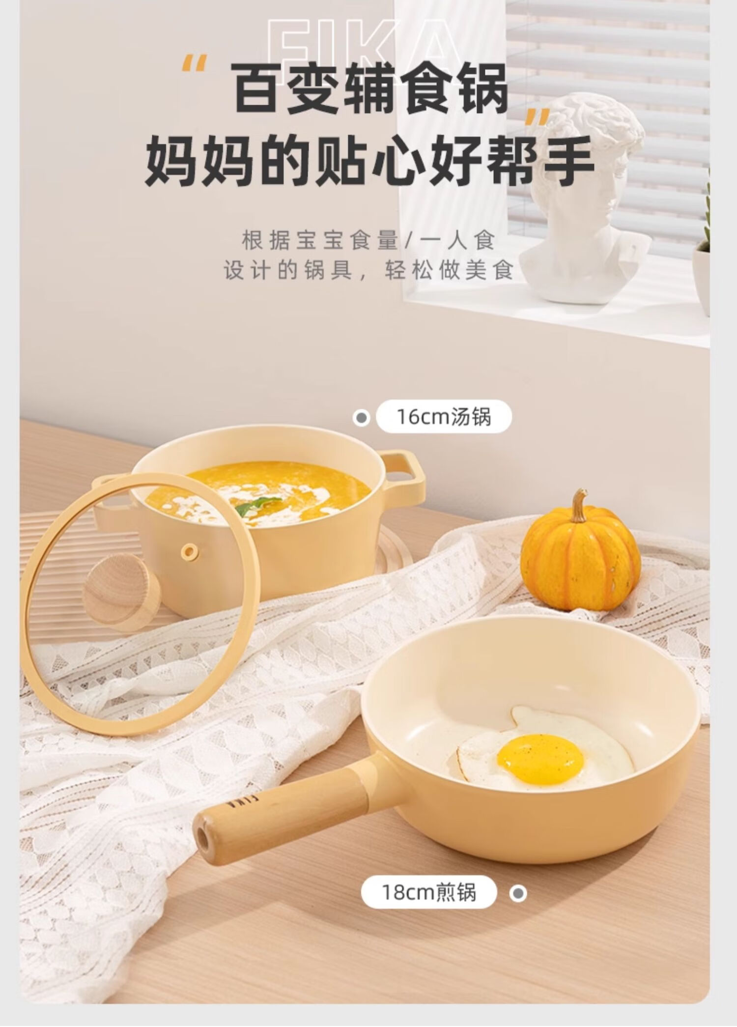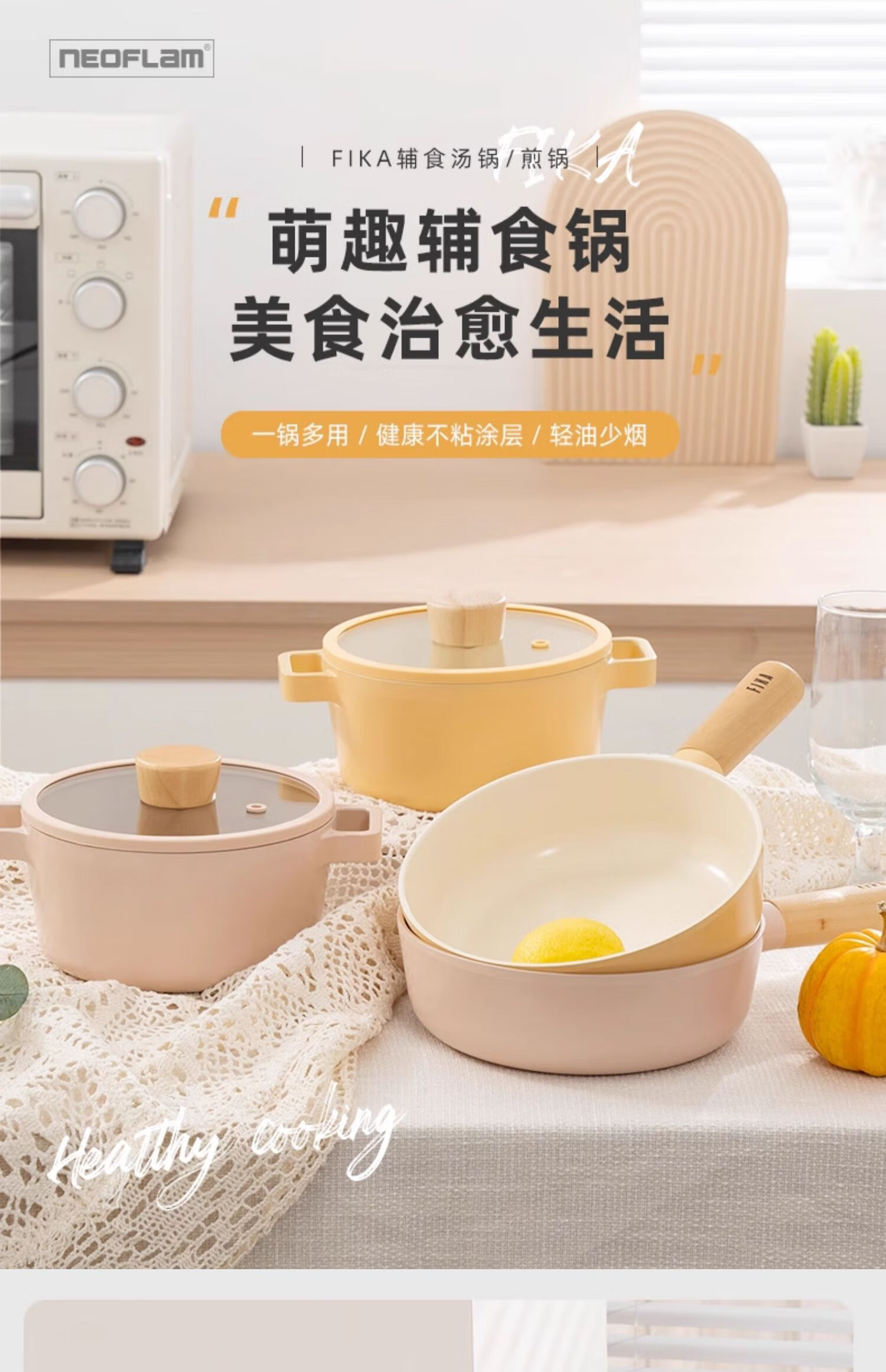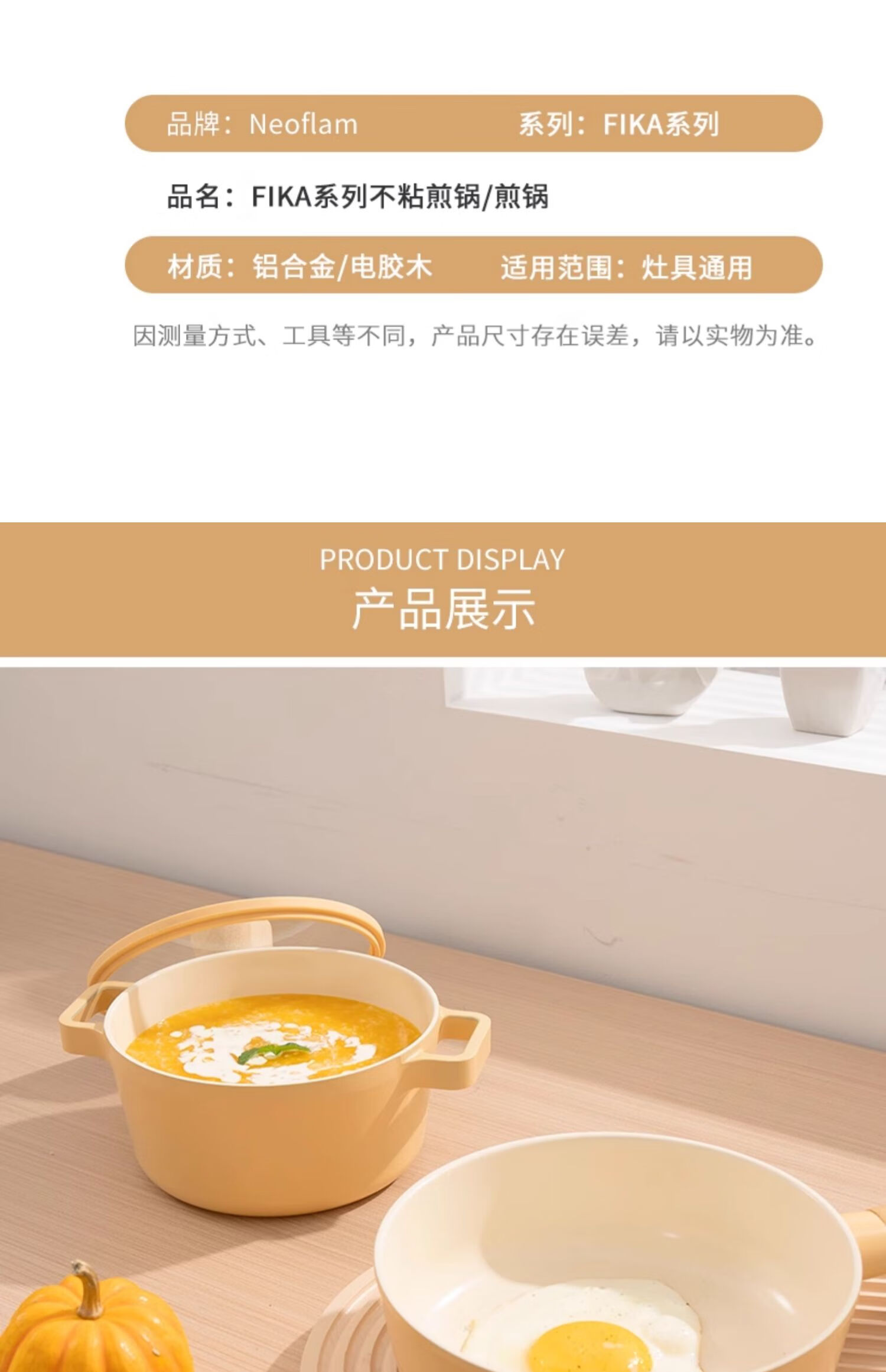 Neoflam汤锅韩国进口宝宝辅食锅婴儿煎煮一体锅陶瓷不粘锅炖锅 黄色煎锅 18cm