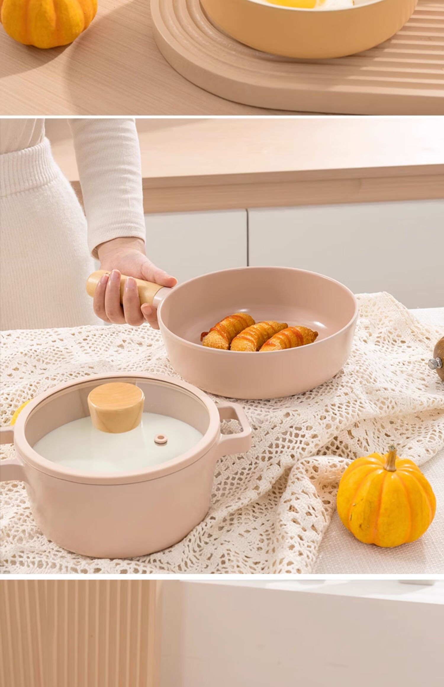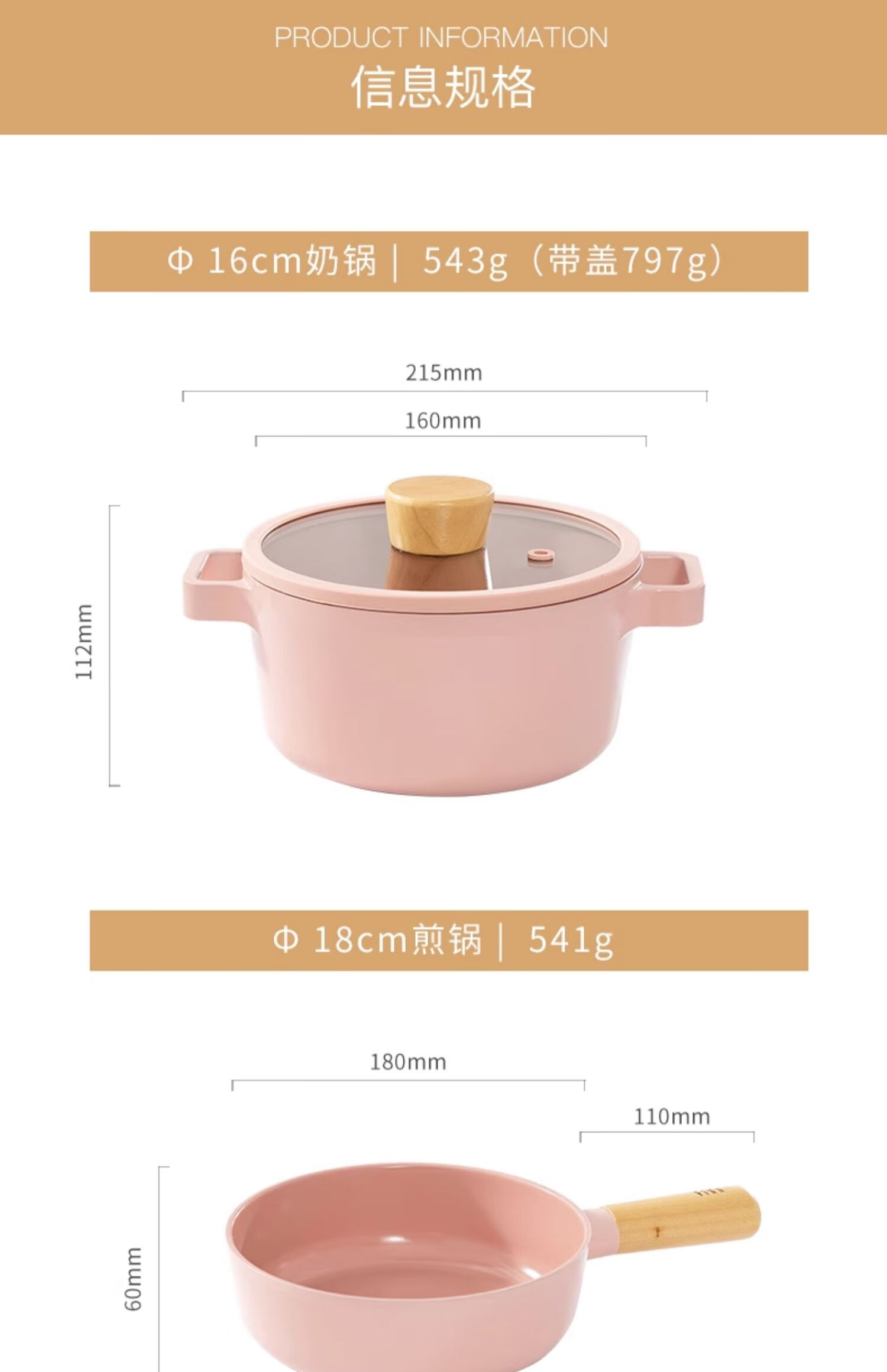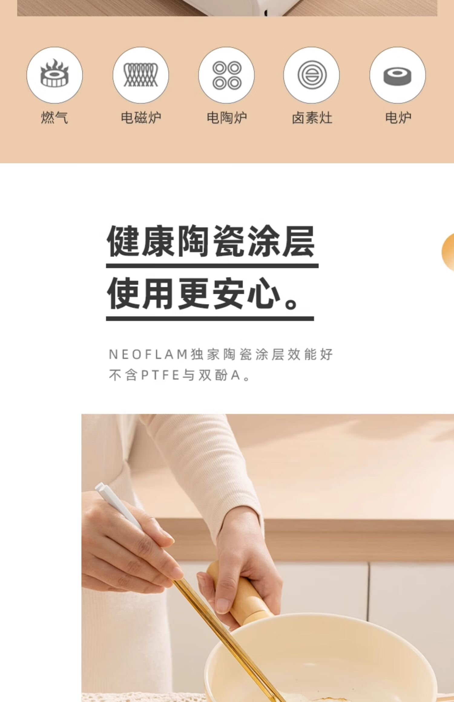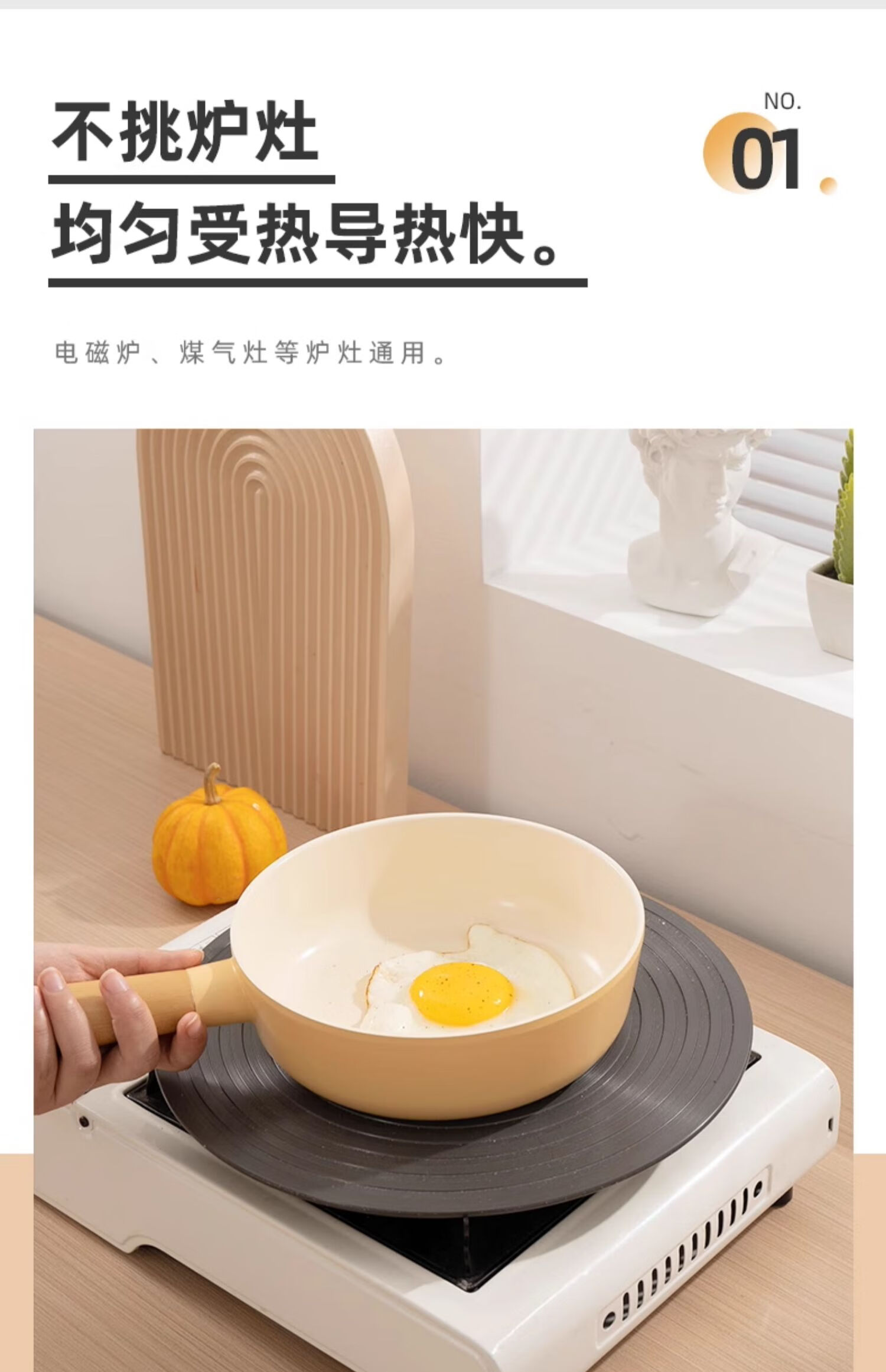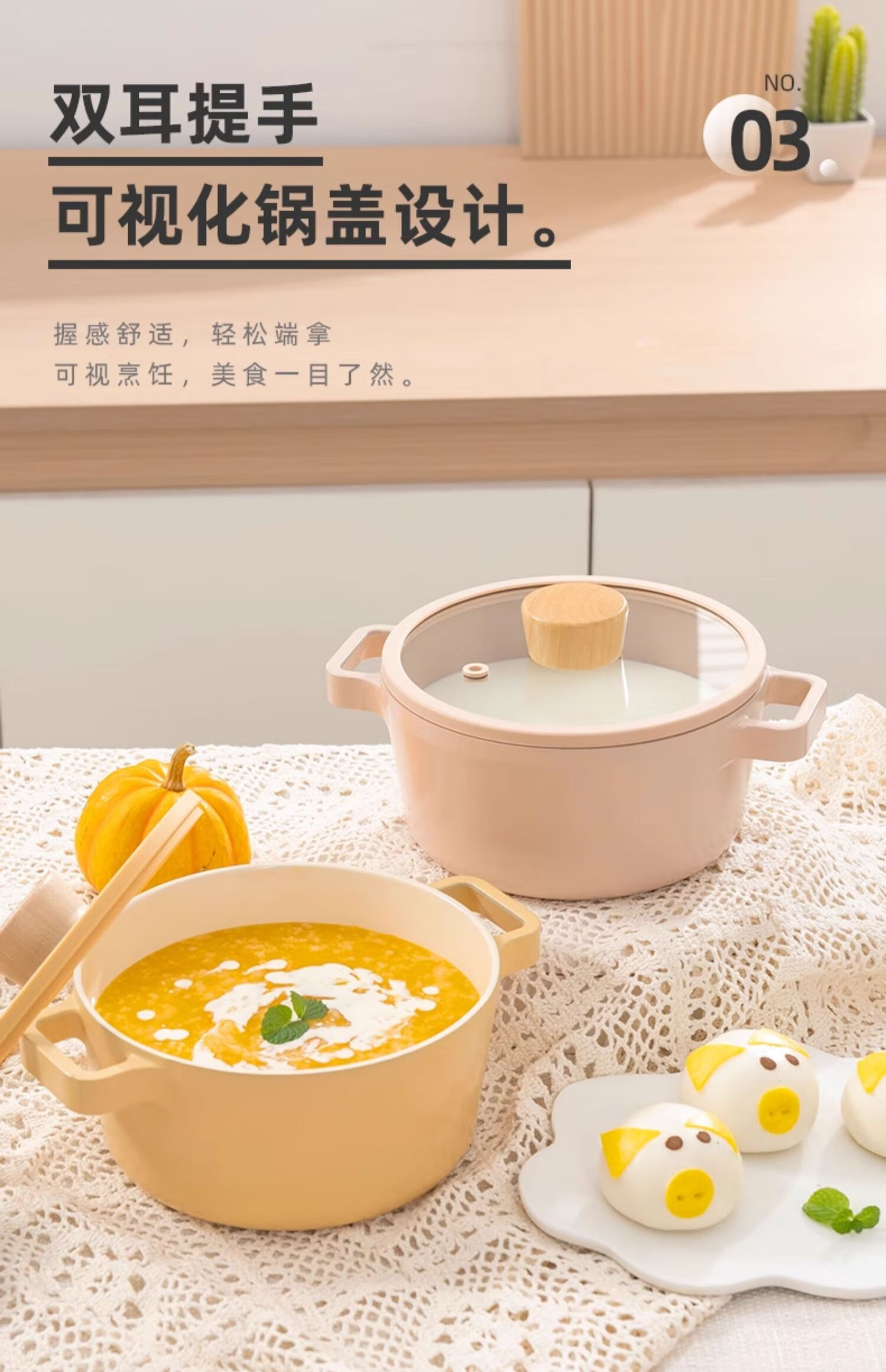 Neoflam汤锅韩国进口宝宝辅食锅婴儿煎煮一体锅陶瓷不粘锅炖锅 黄色煎锅 18cm