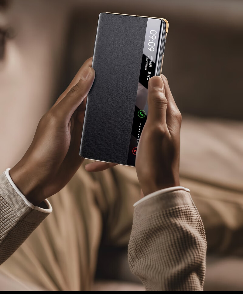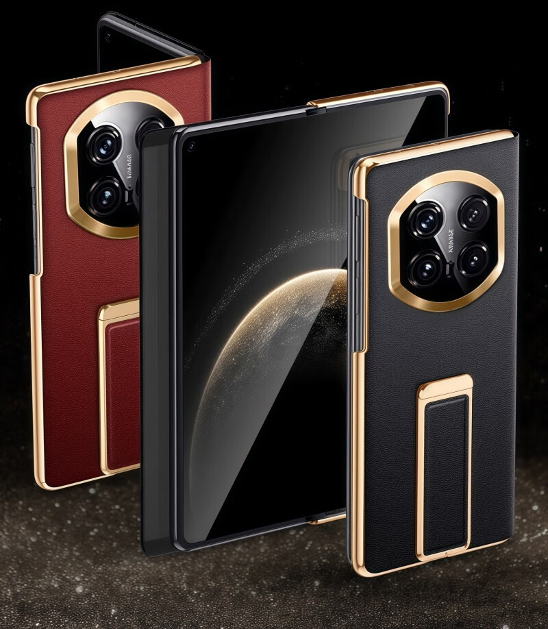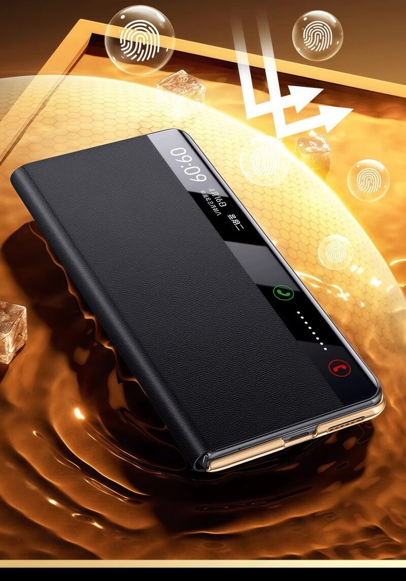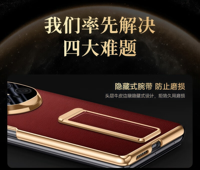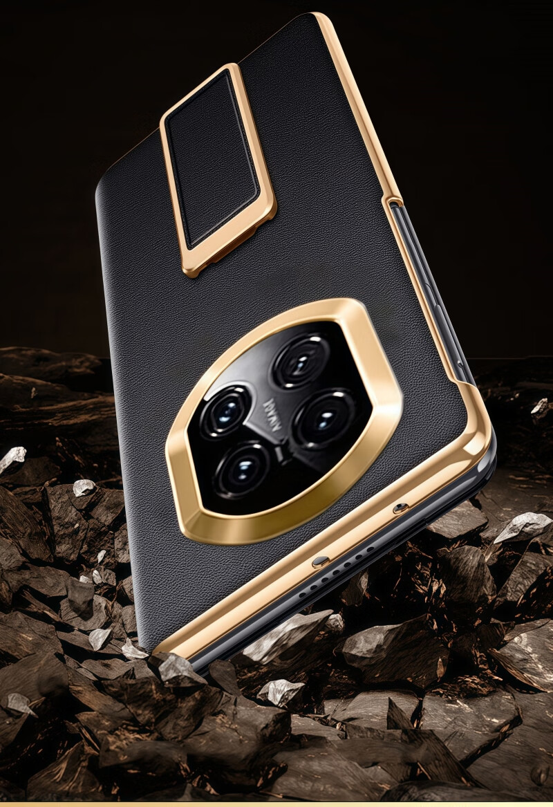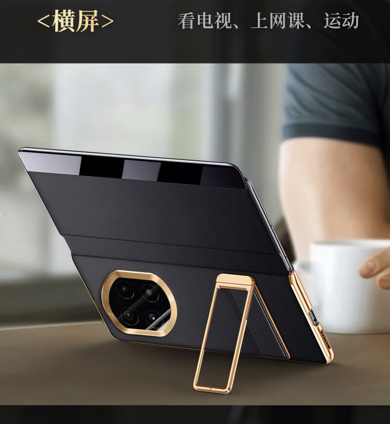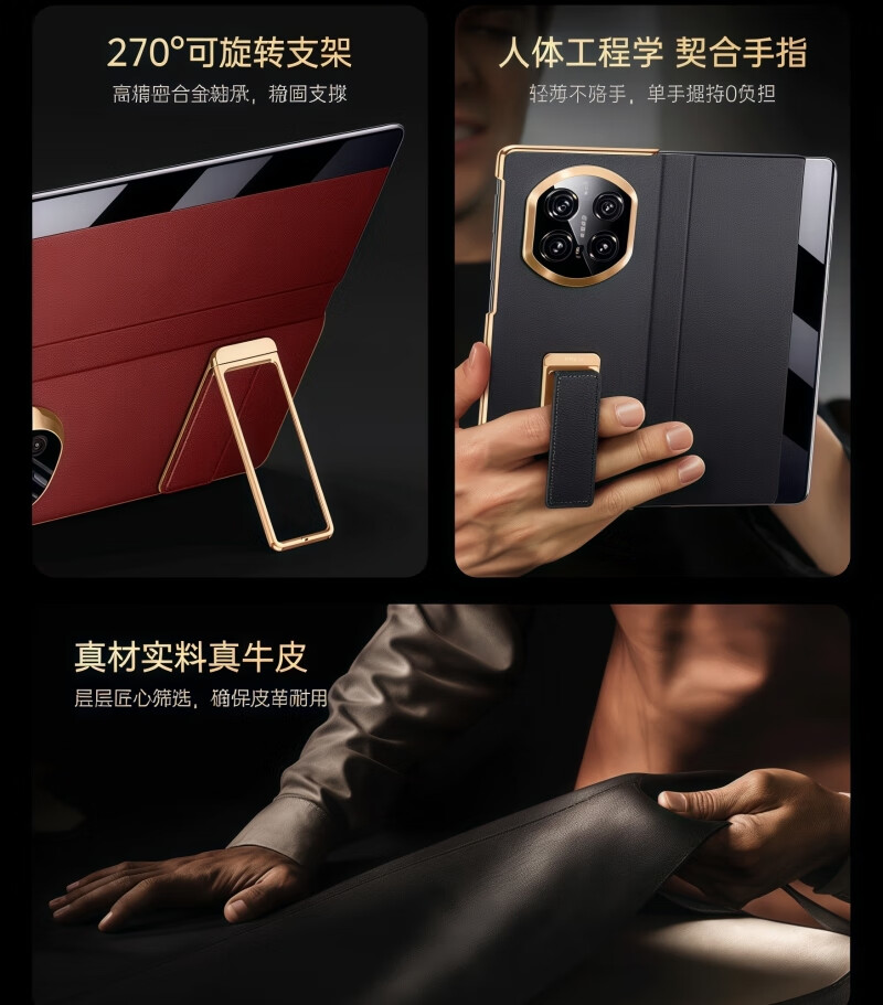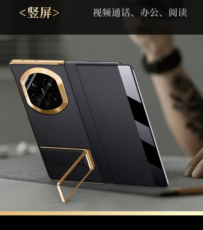 适用华为matex7手机壳折叠屏x7典藏版保护壳全包真皮翻盖腕带旋转支架 曜石黑】头层牛皮丨腕带旋转支架 华为matex7/x7典藏版通用