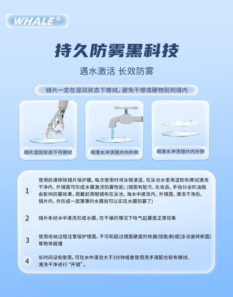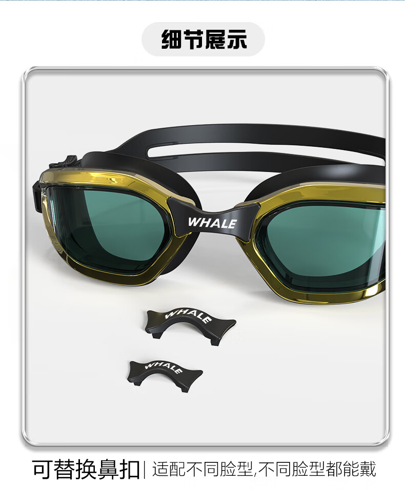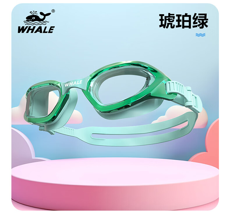鲸鱼S4专业儿童防雾泳镜防雾剂1888天起雾换新免高清护眼近视游泳眼镜 玫瑰红(透明镜片)+赠泳帽