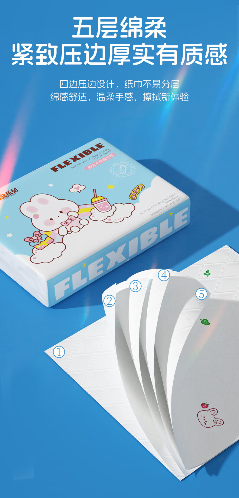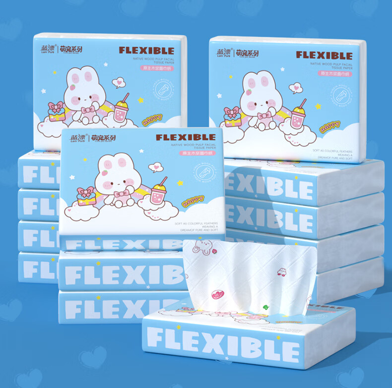 蓝漂原木抽纸纸巾面巾纸家用卫生纸印花纸抽整箱 5层 100张*56包 【便携印花抽纸】