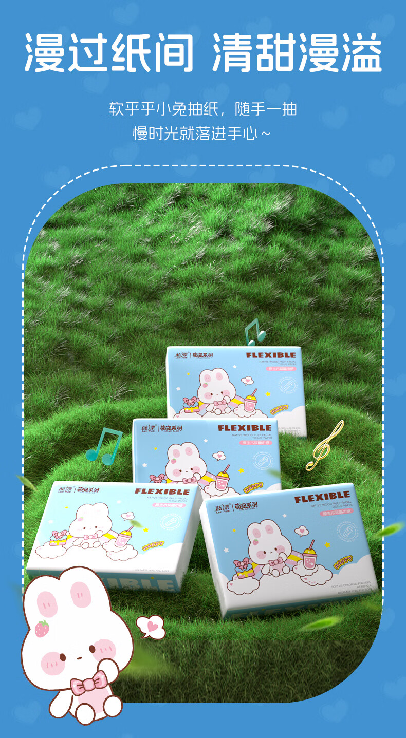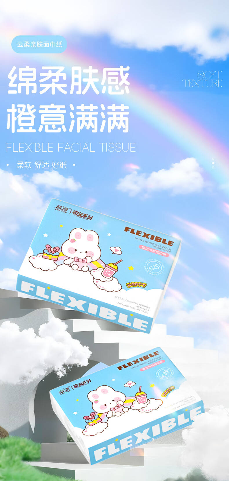 舒洁(Kleenex)抽纸2层200抽*3包装 柔软亲肤 原生木浆 【卡通系列棉花糖】 棉花糖抽纸 2层 200抽*6盒