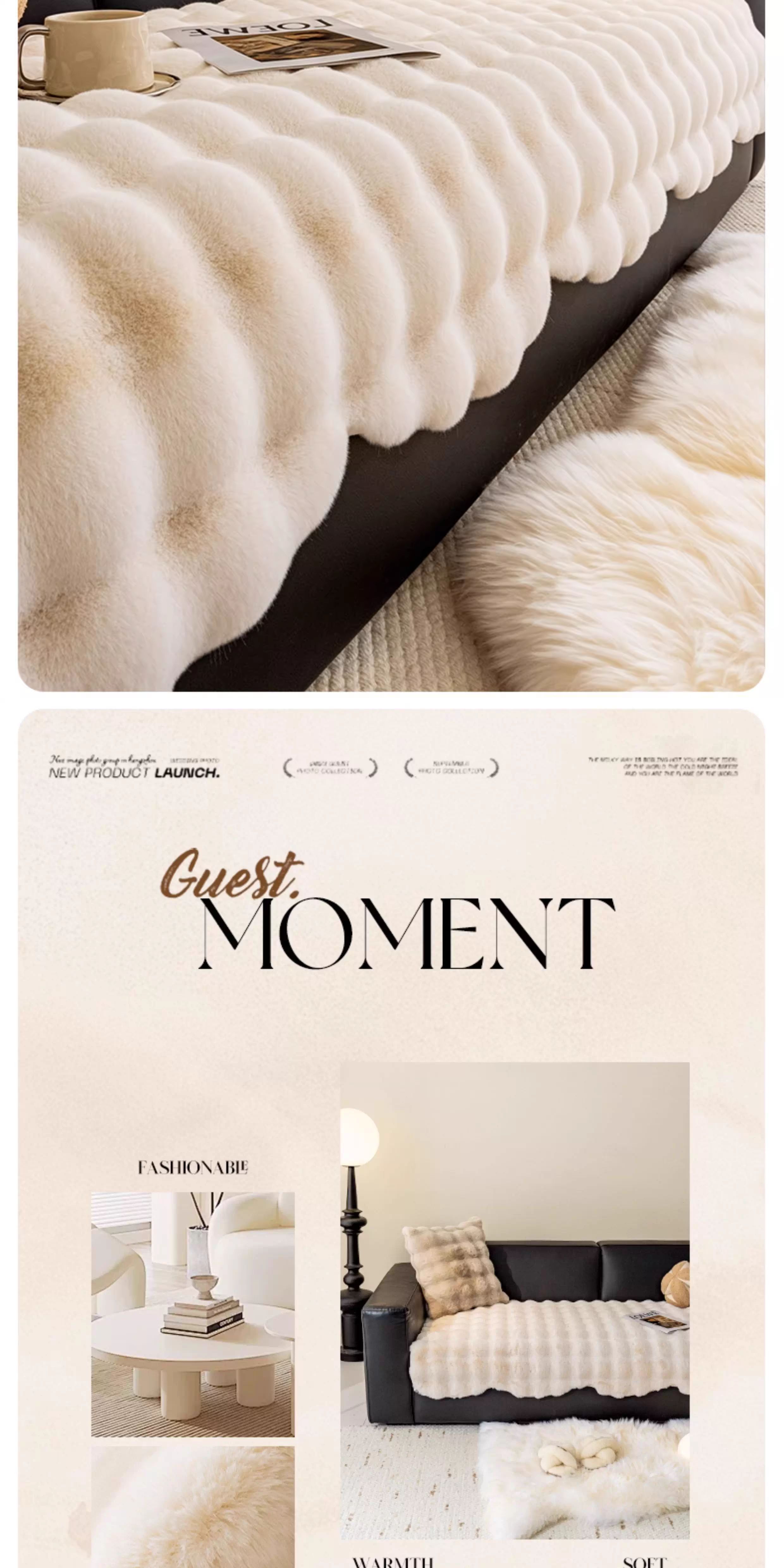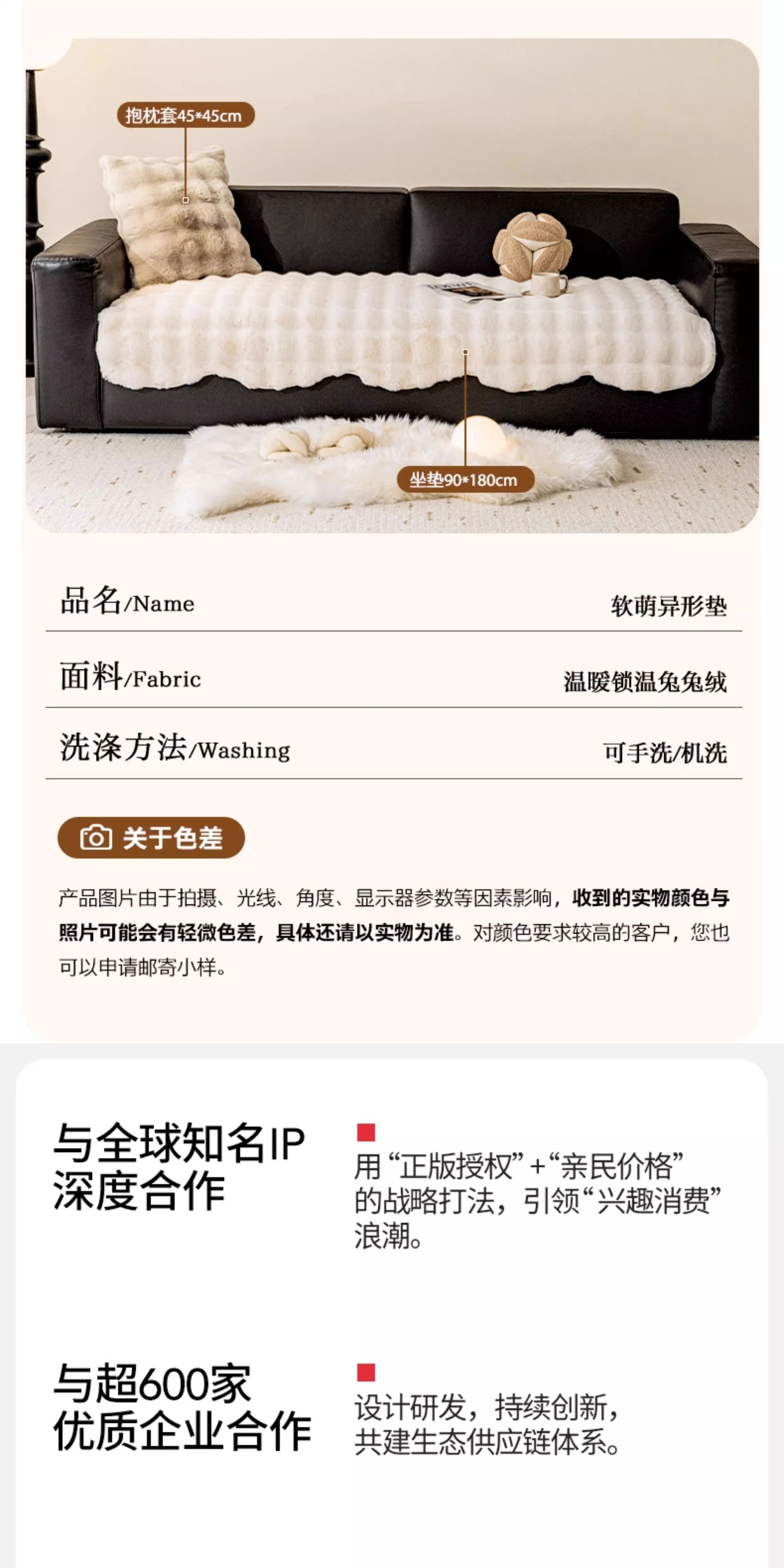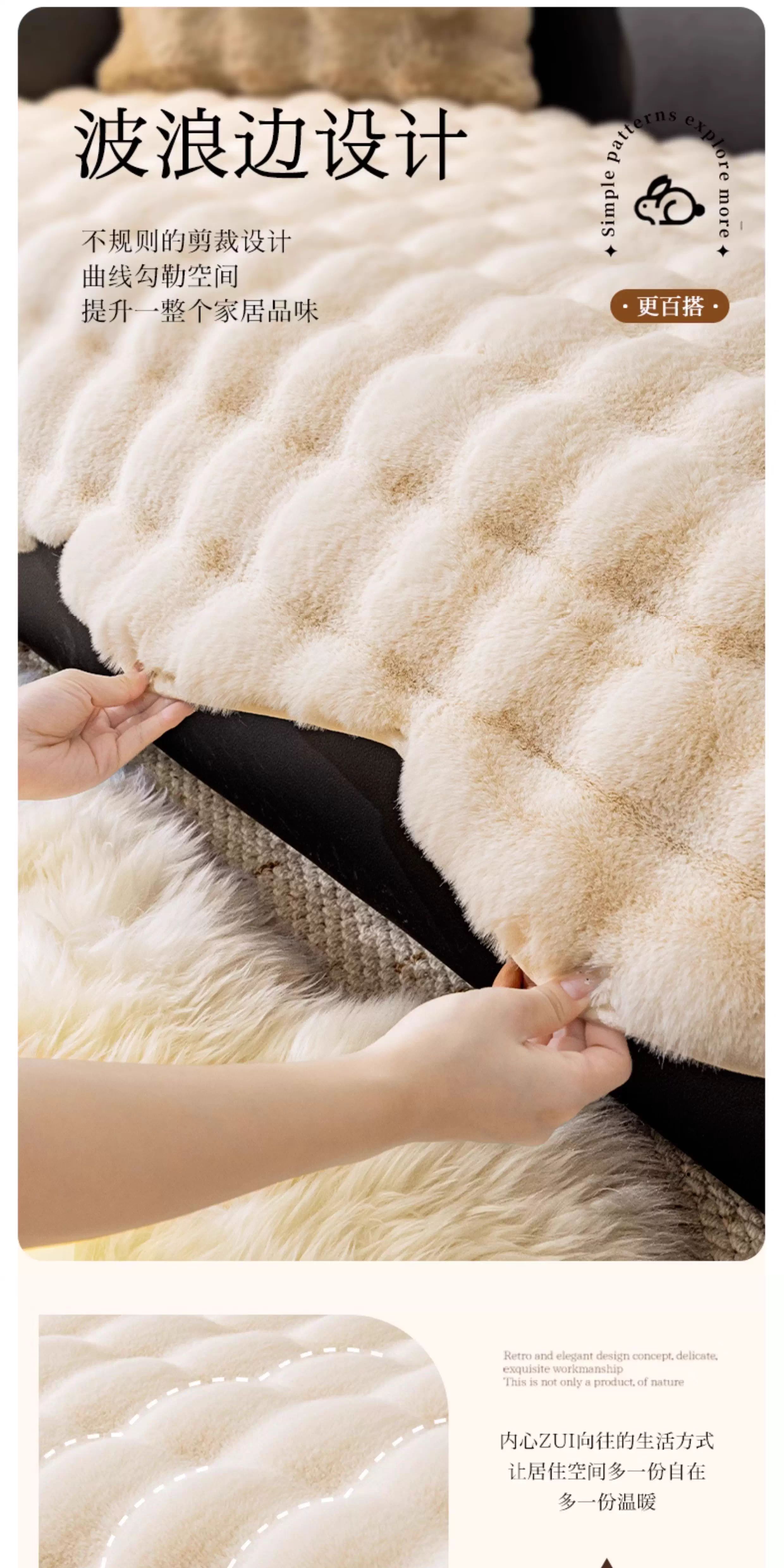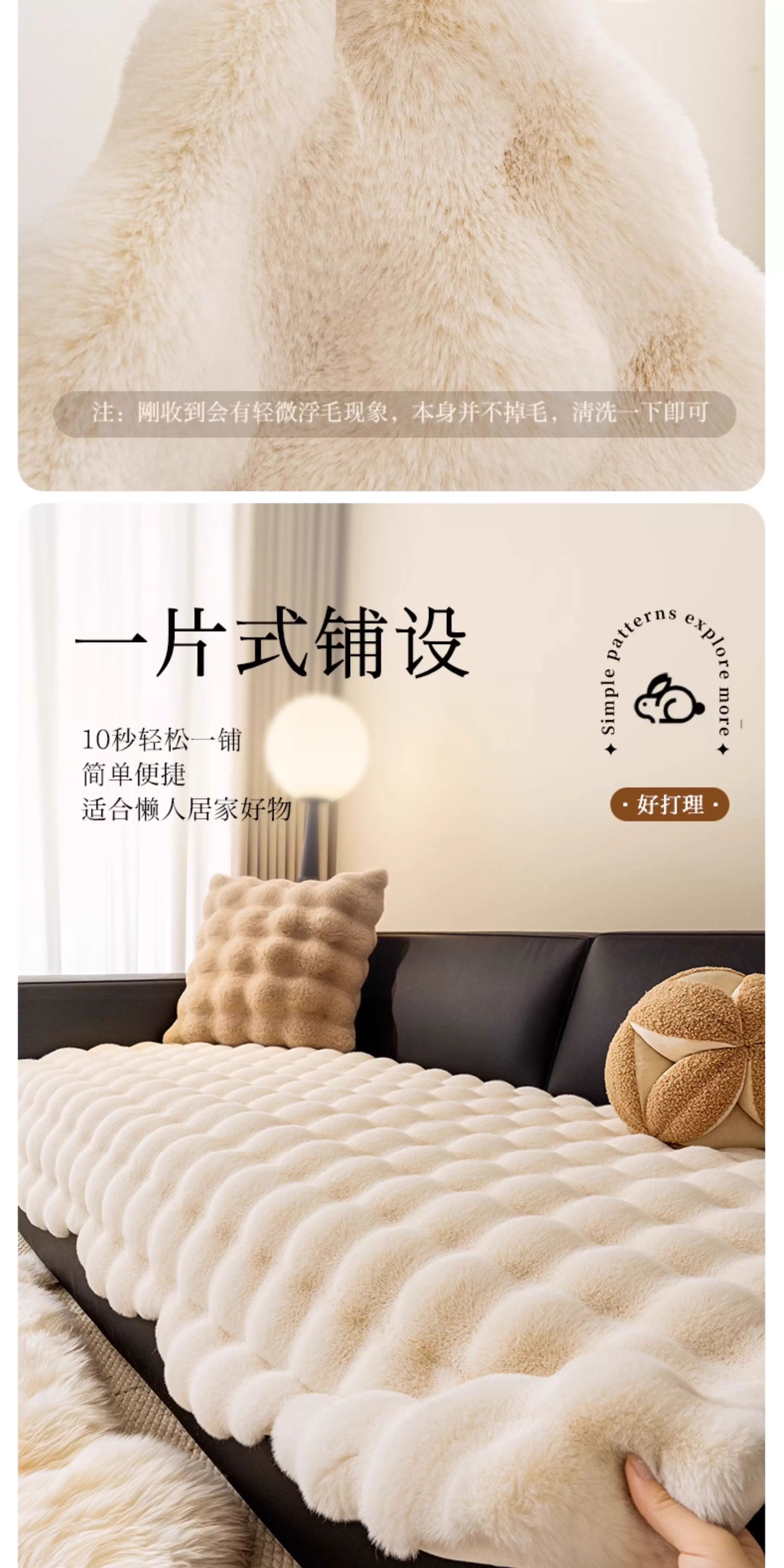 名创优品(MINISO)沙发垫仿兔毛绒垫子 防滑真皮沙发盖布沙发巾防滑沙发毯 异形兔兔绒-奶油白 70cm*180cm 【大双人位】