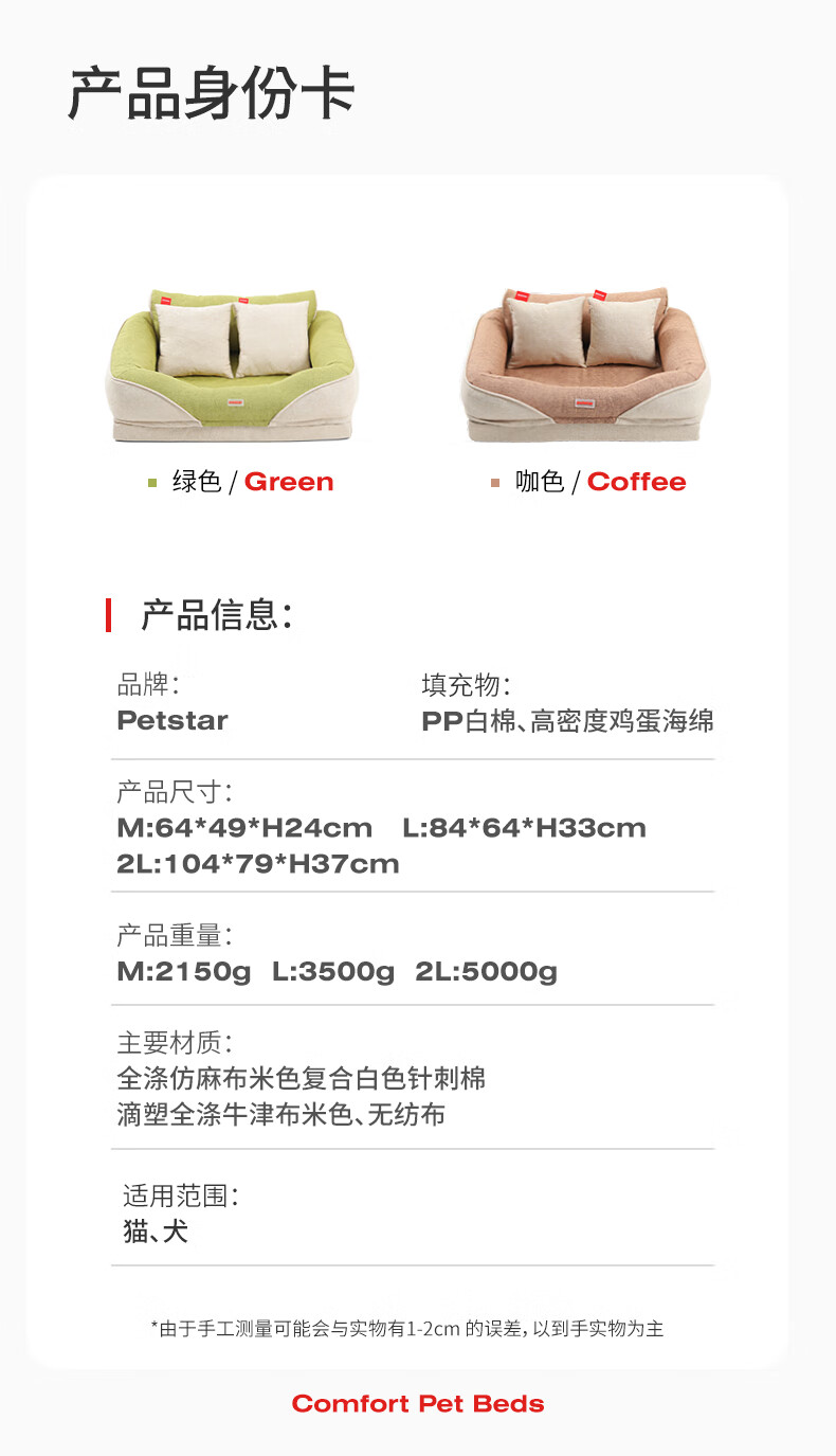 PETSTAR宠物沙发 四季通用可拆洗大型宠物床 M码【适用20斤内宠物】