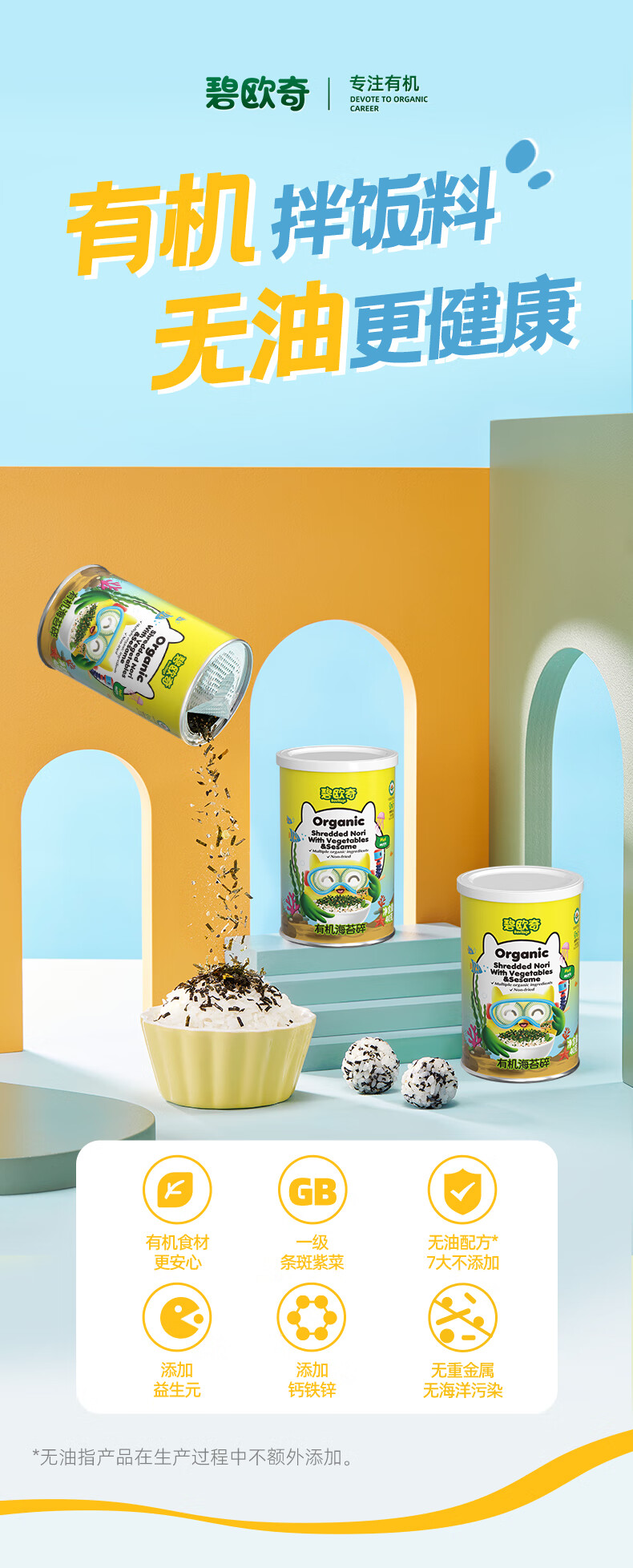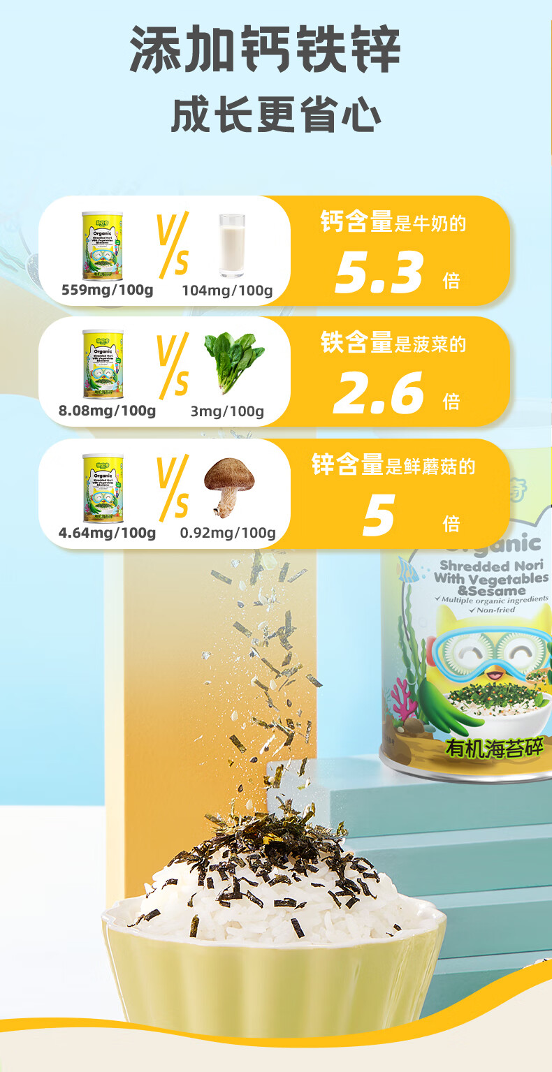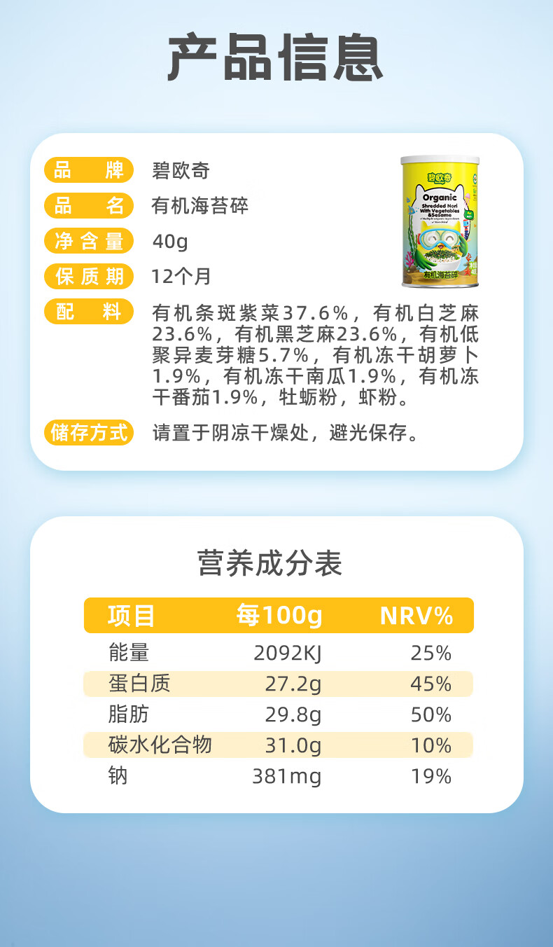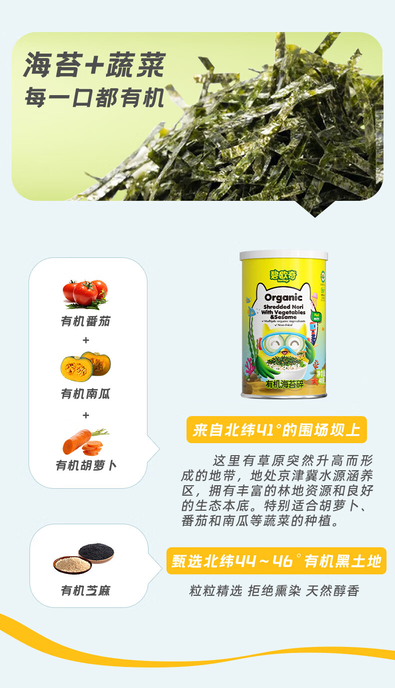 碧欧奇(Bio village)儿童有机海苔碎辅食拌饭料一级紫菜无油配方3岁+ 有机海苔碎40g*2