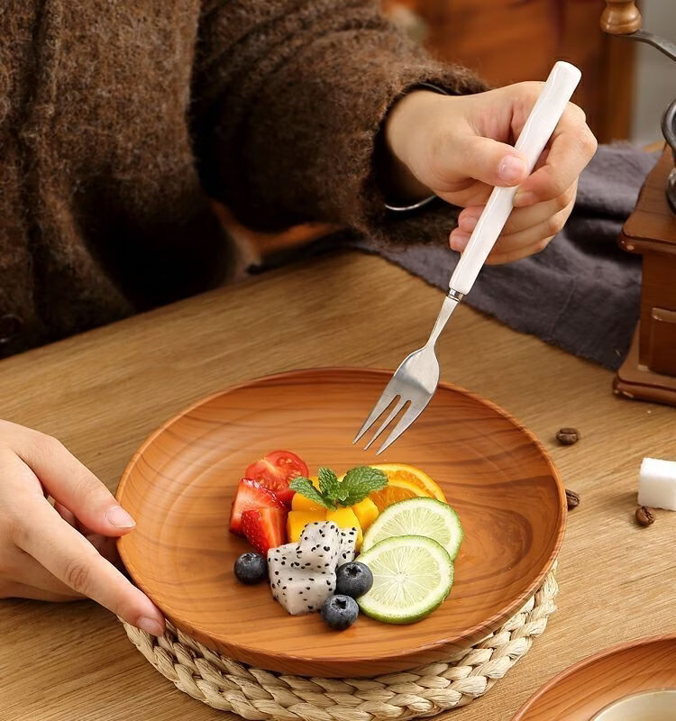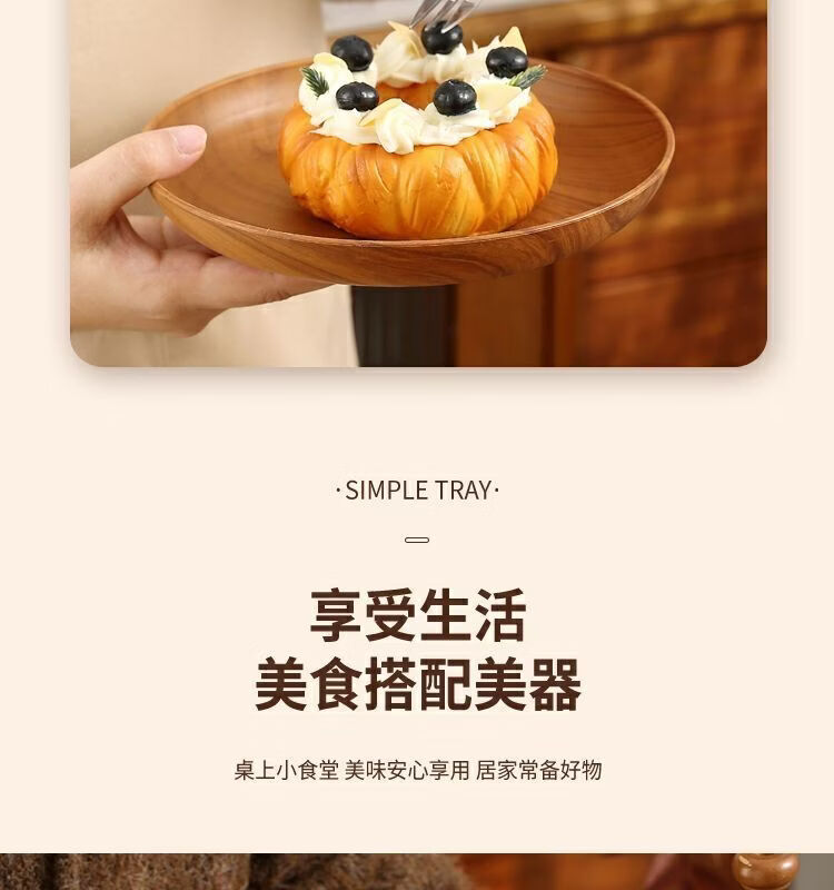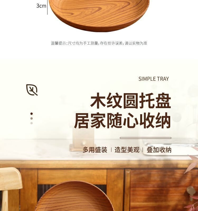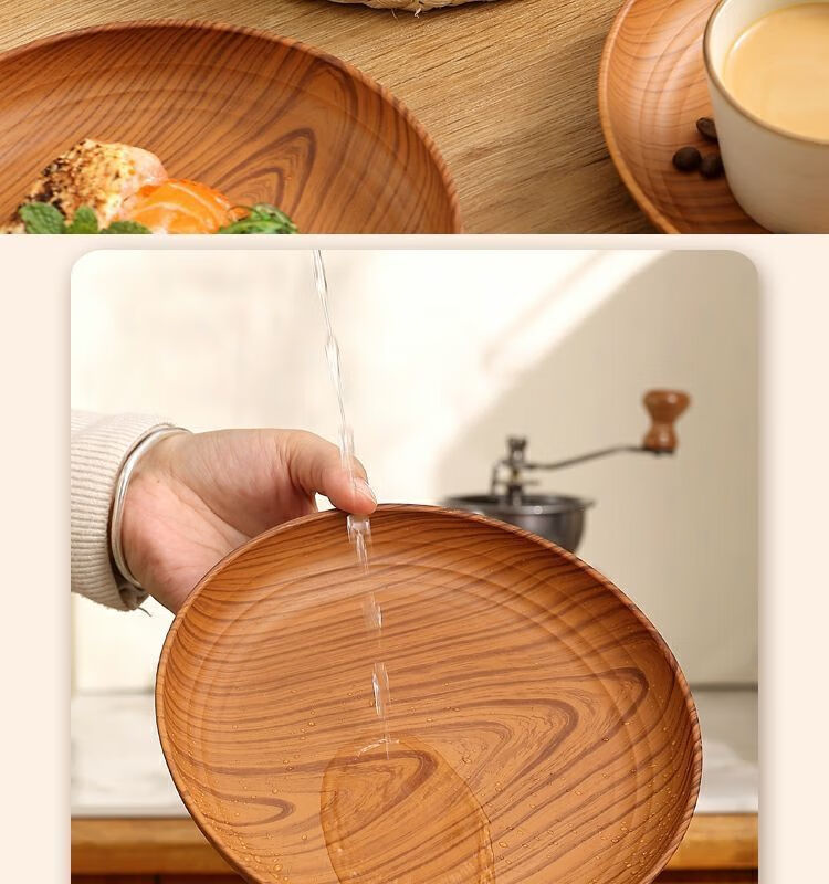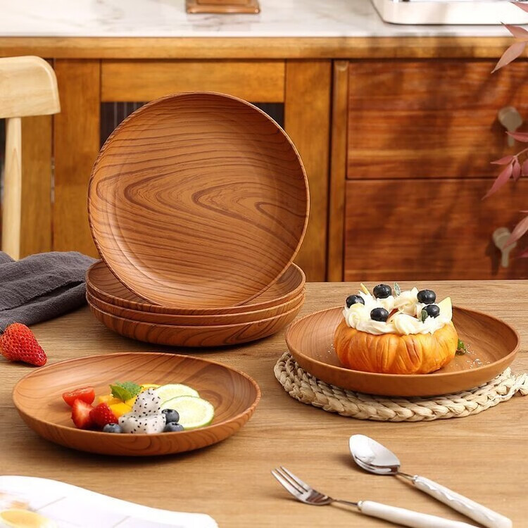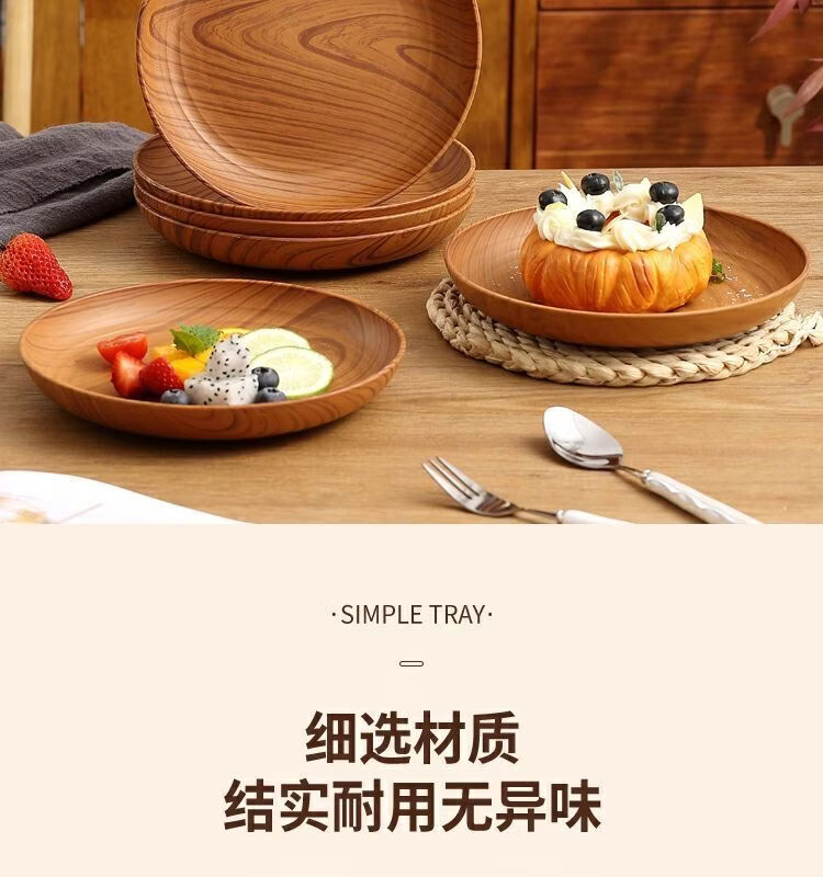 简漾仿木纹塑料托盘ins下午茶ins高颜值家用甜品店面包店探店美食餐盘 胡桃木纹【2个装】加厚加高 聚丙烯(pp)材质【仿木纹圆盘】