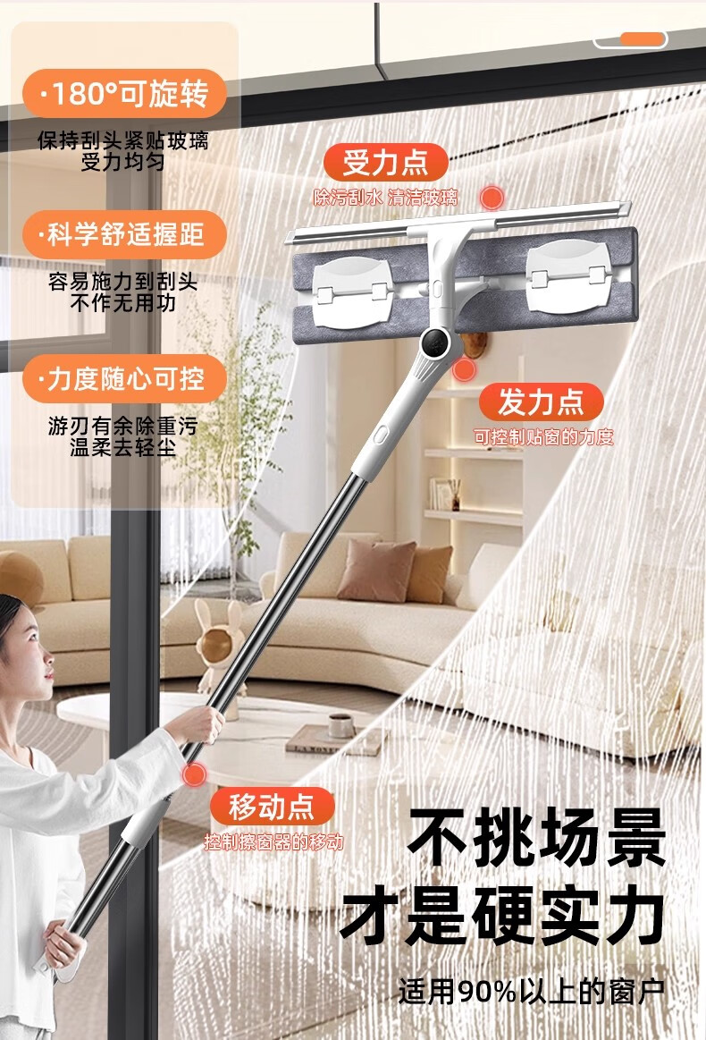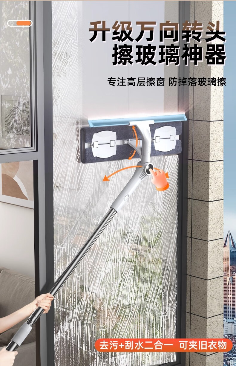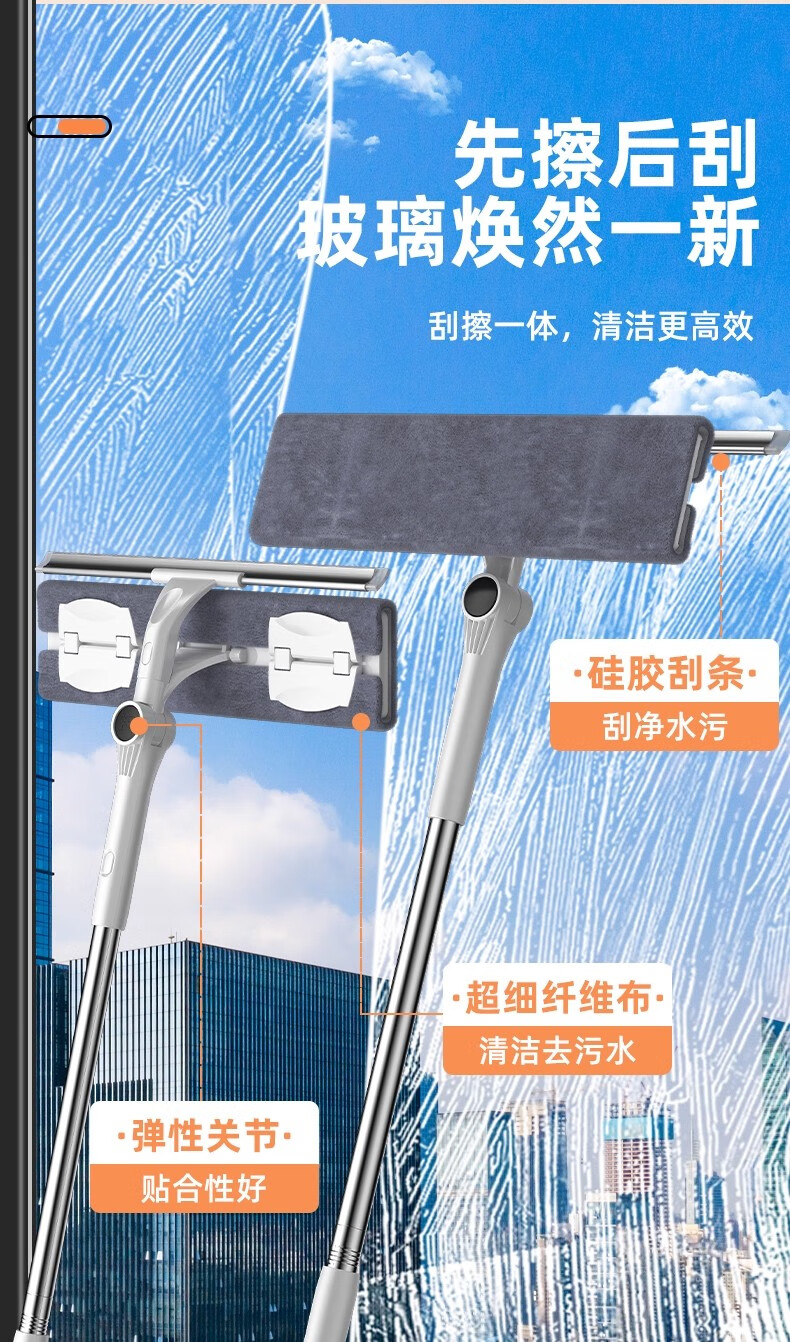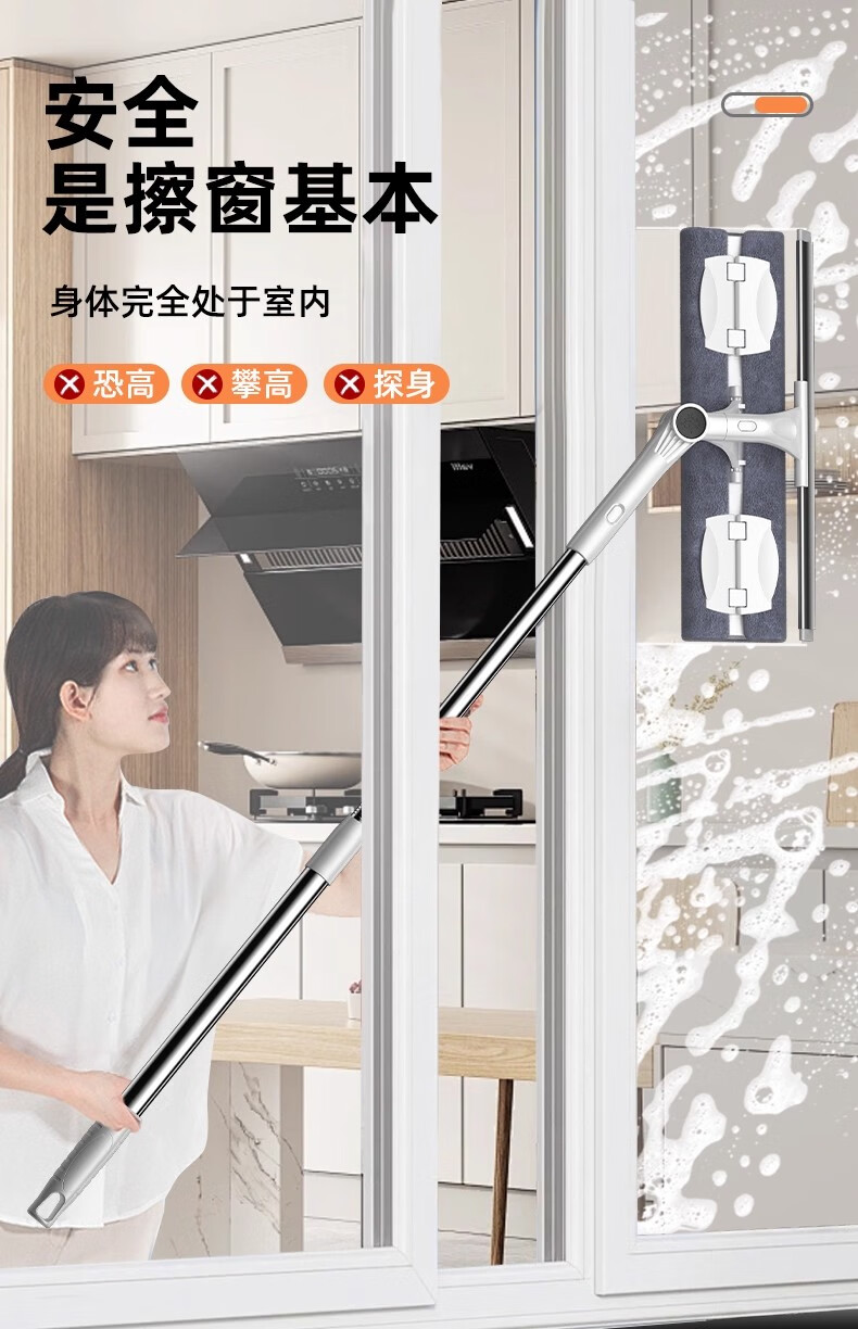 沐阁擦玻璃神器高层窗外专用工具新款家用擦窗家政保洁洗窗户刮清洁刷 万向窗外玻璃清洁器-28cm拖头+正版原装配布*1