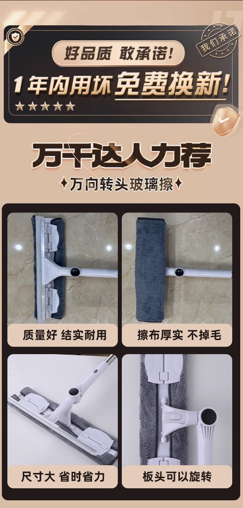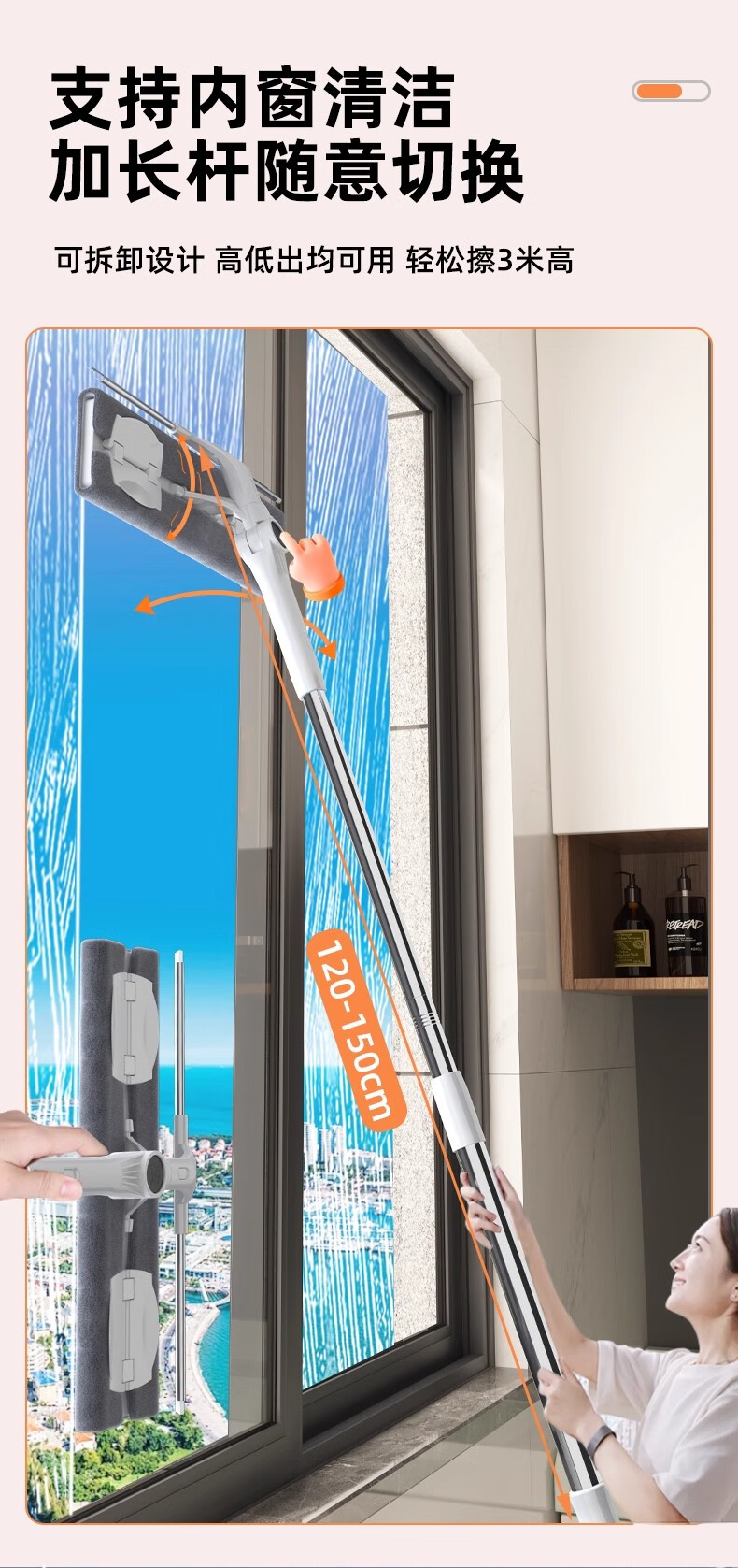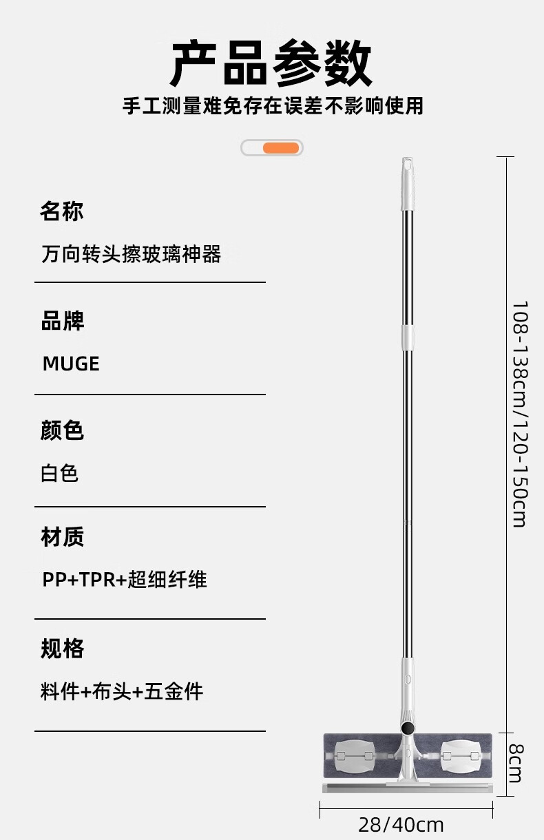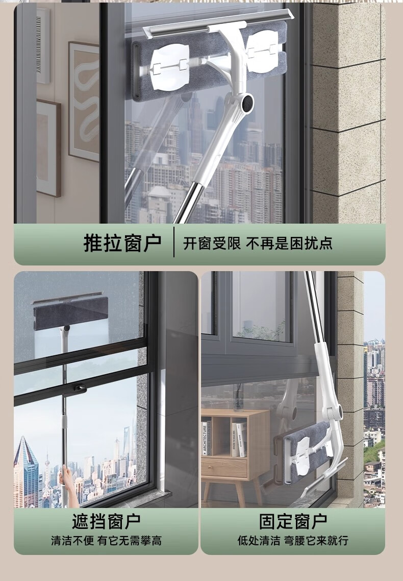 沐阁擦玻璃神器高层窗外专用工具新款家用擦窗家政保洁洗窗户刮清洁刷 万向窗外玻璃清洁器-28cm拖头+正版原装配布*1