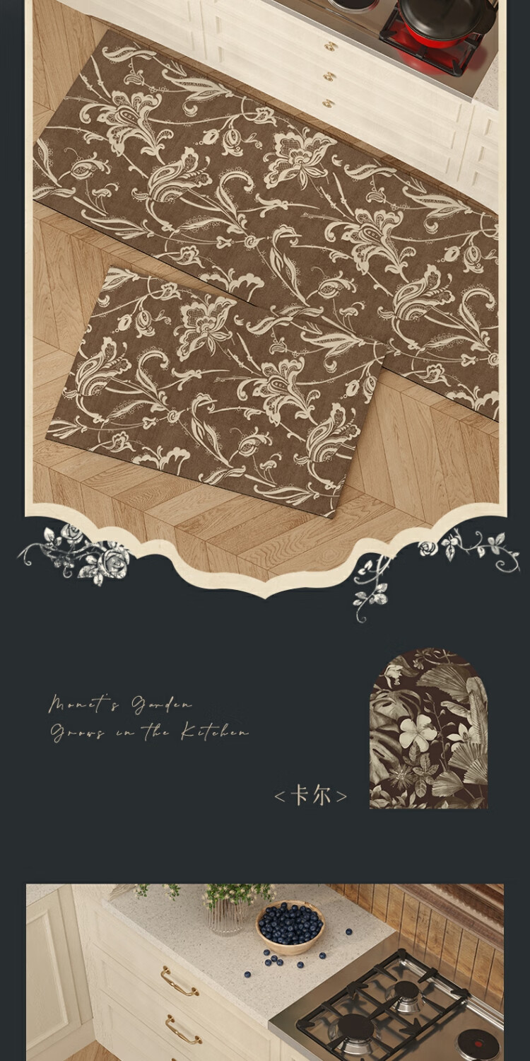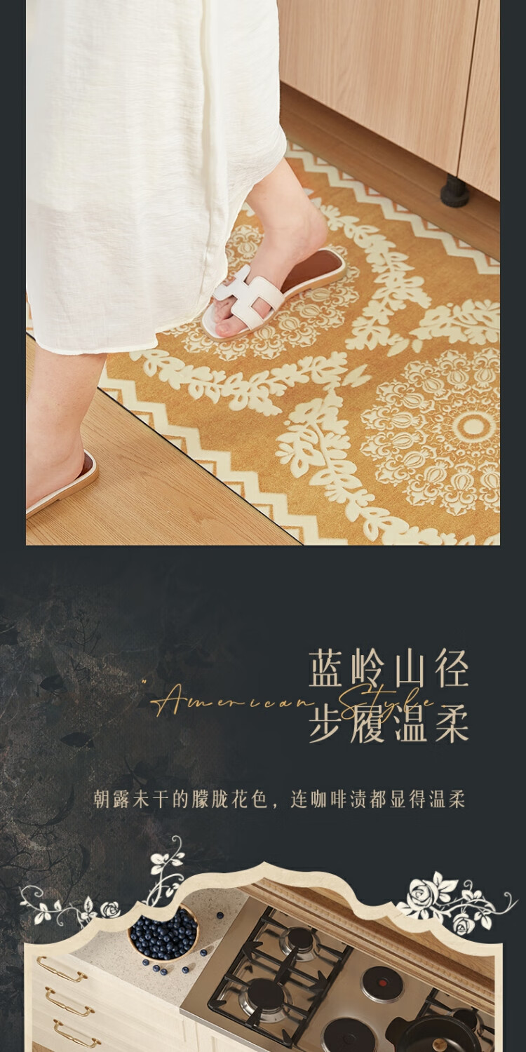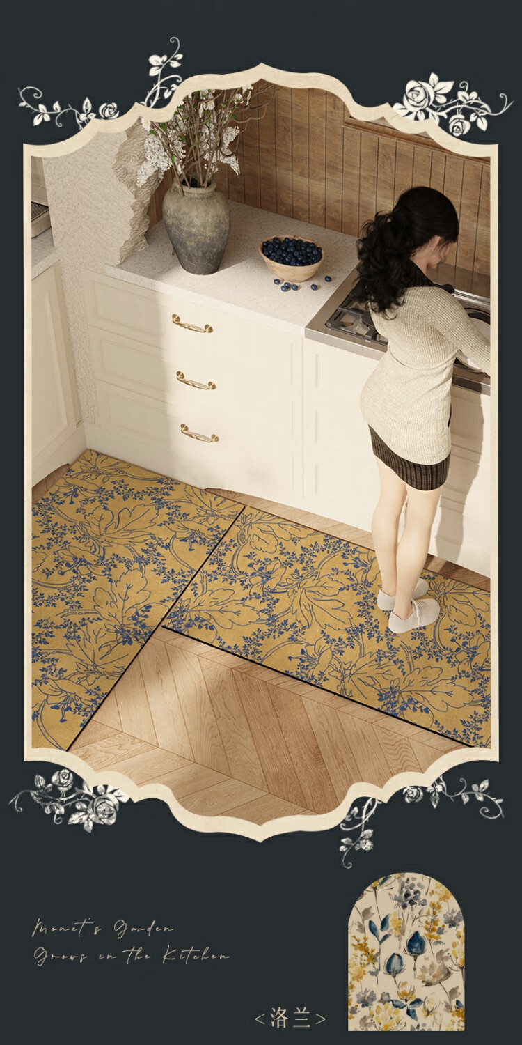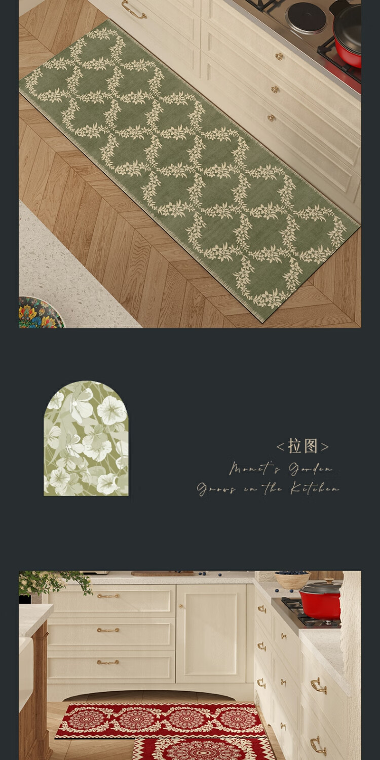 京华厨房地垫2025新美式田园绿色小清新防滑防油耐脏吸水免洗可擦脚垫 拉图 45cm*75cm