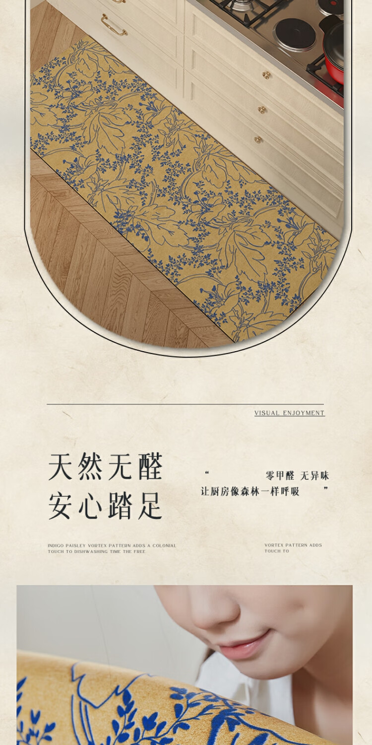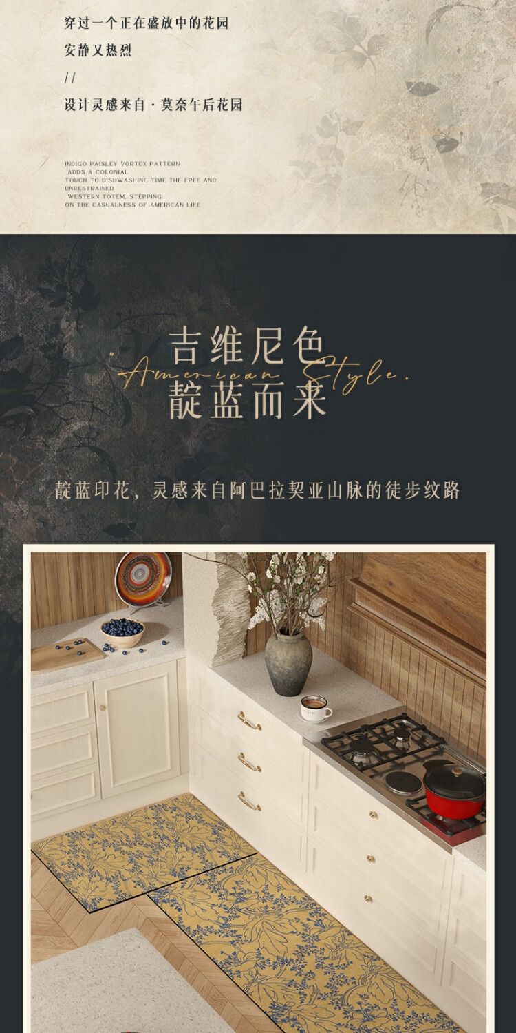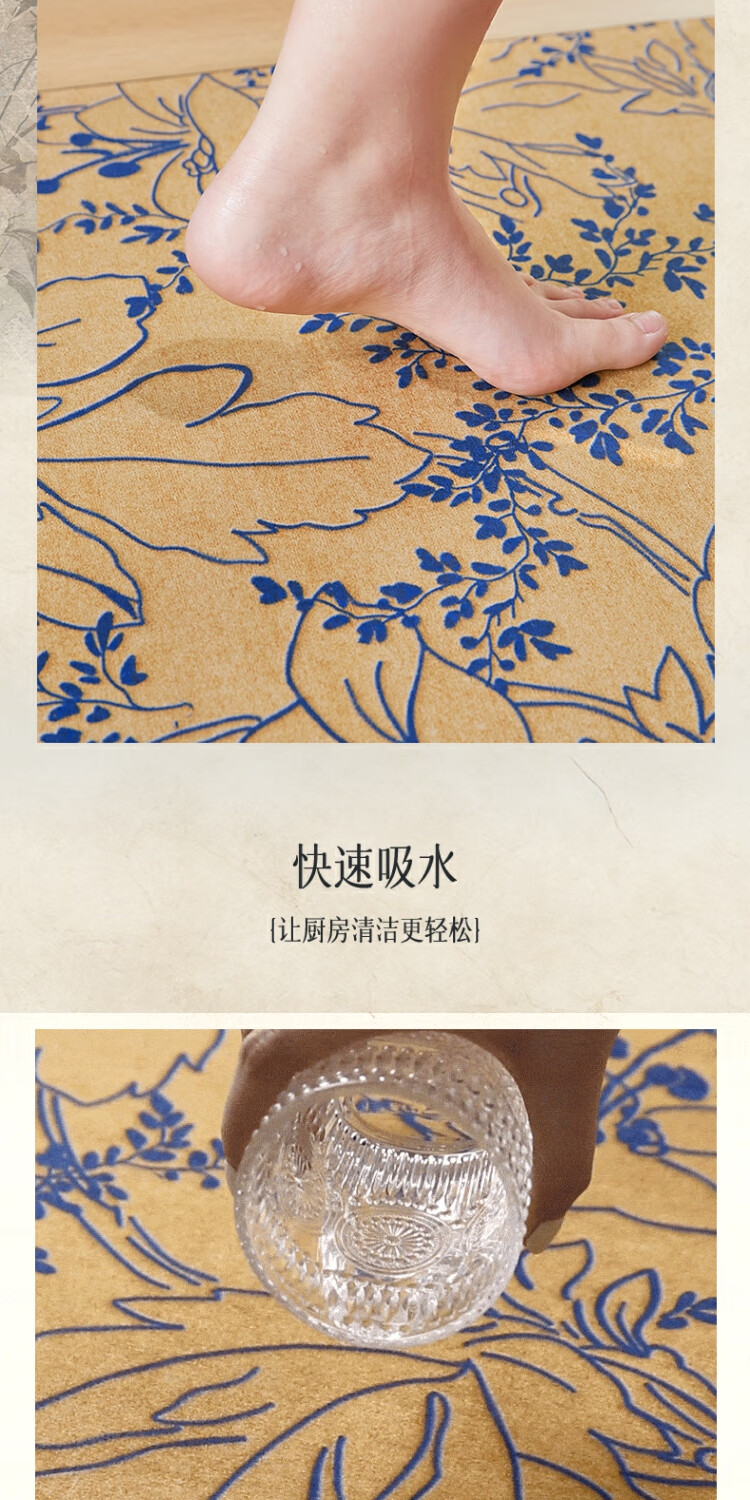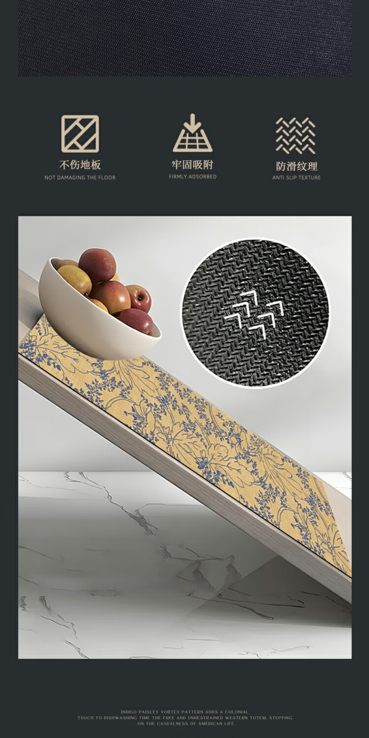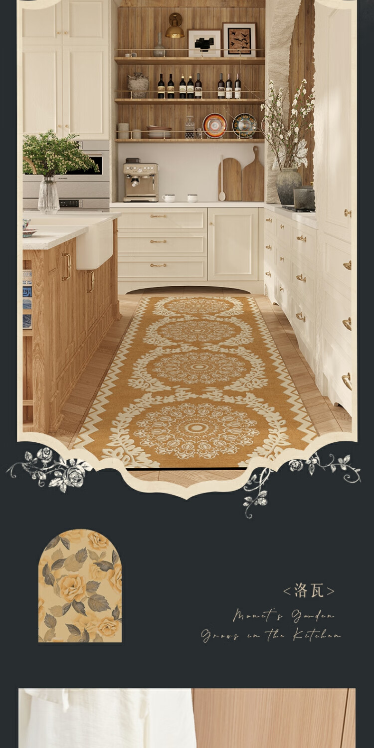 京华厨房地垫2025新美式田园绿色小清新防滑防油耐脏吸水免洗可擦脚垫 拉图 45cm*75cm