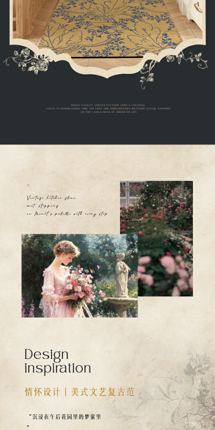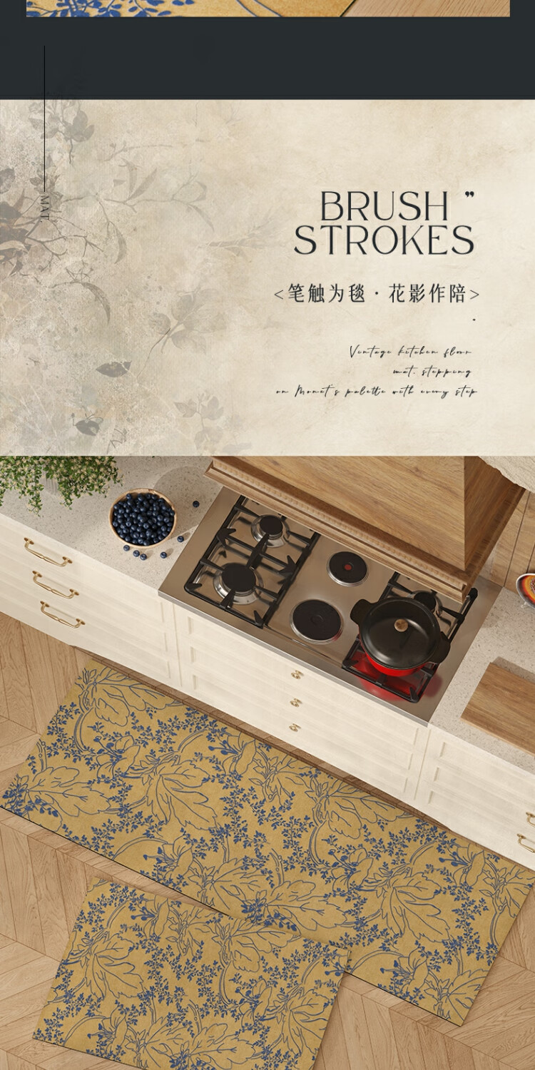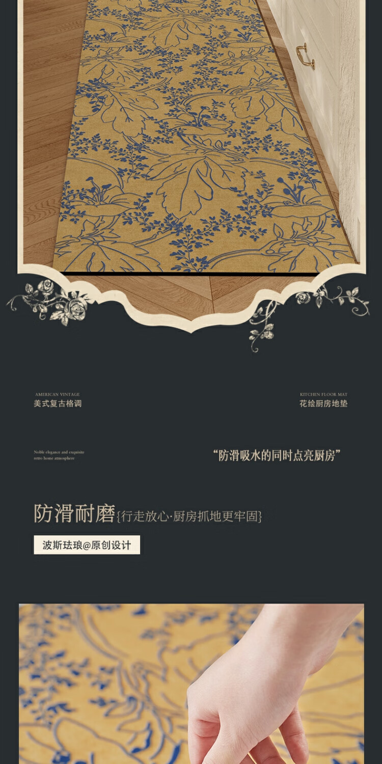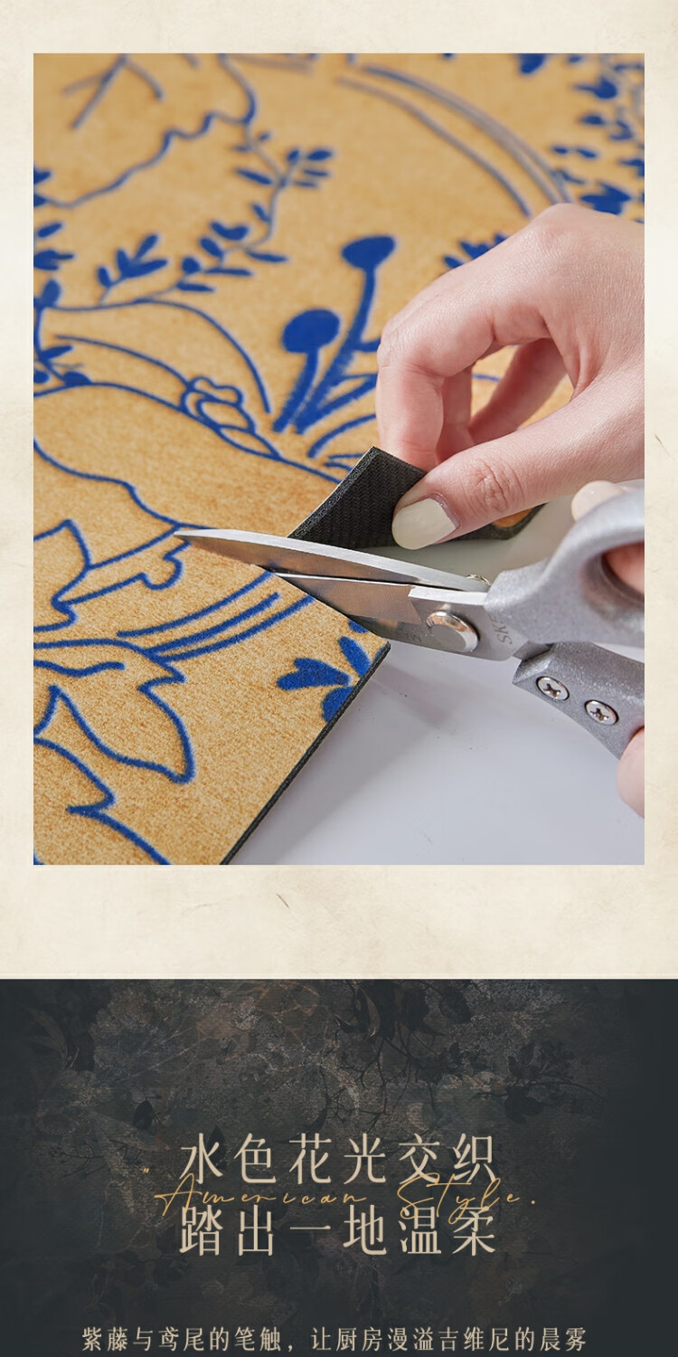 京华厨房地垫2025新美式田园绿色小清新防滑防油耐脏吸水免洗可擦脚垫 拉图 45cm*75cm