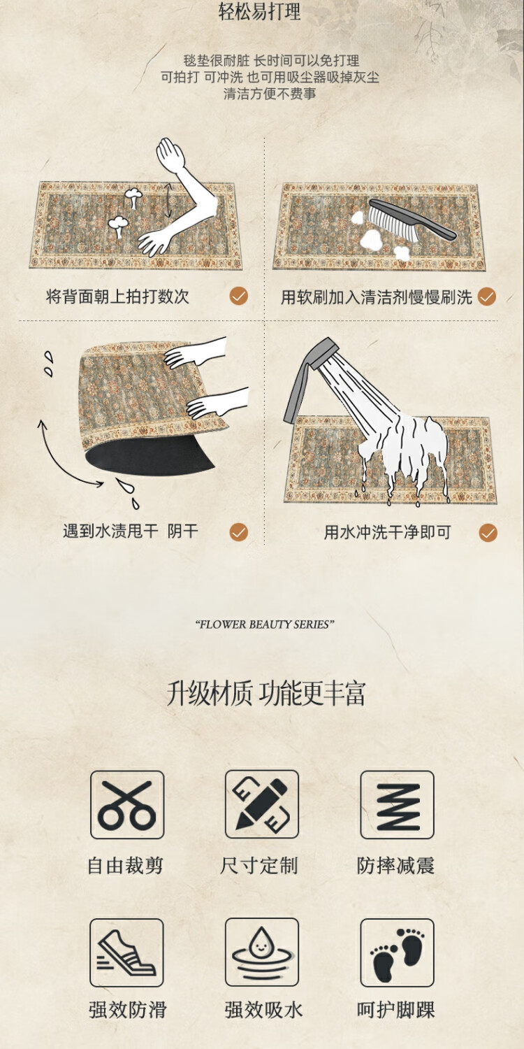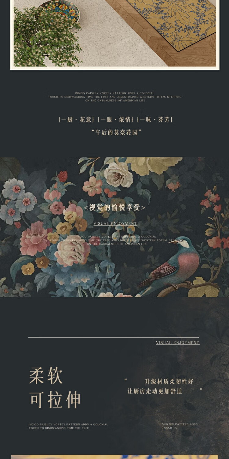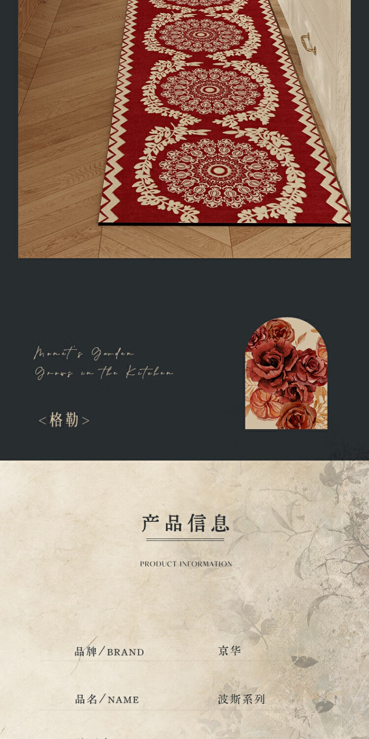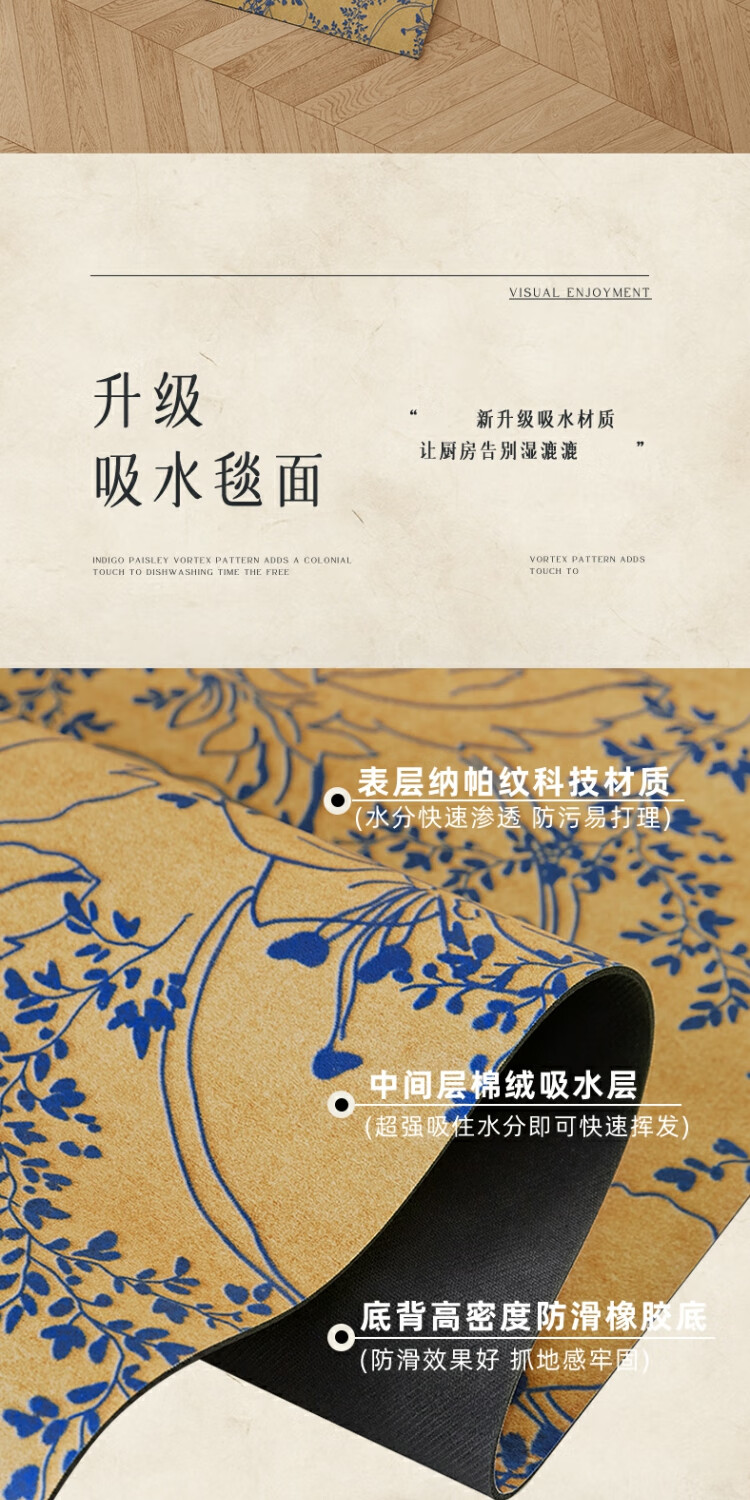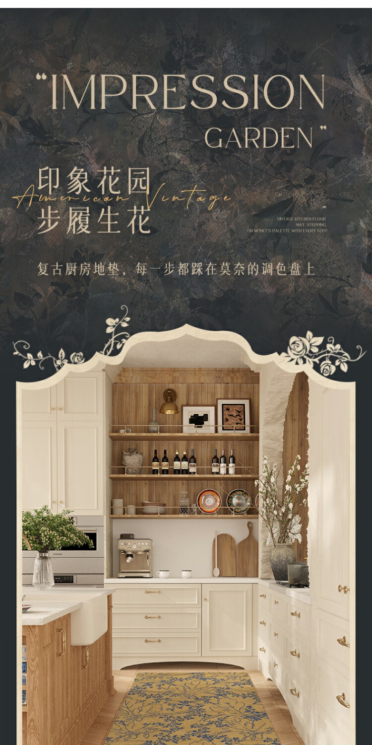 京华厨房地垫2025新美式田园绿色小清新防滑防油耐脏吸水免洗可擦脚垫 拉图 45cm*75cm