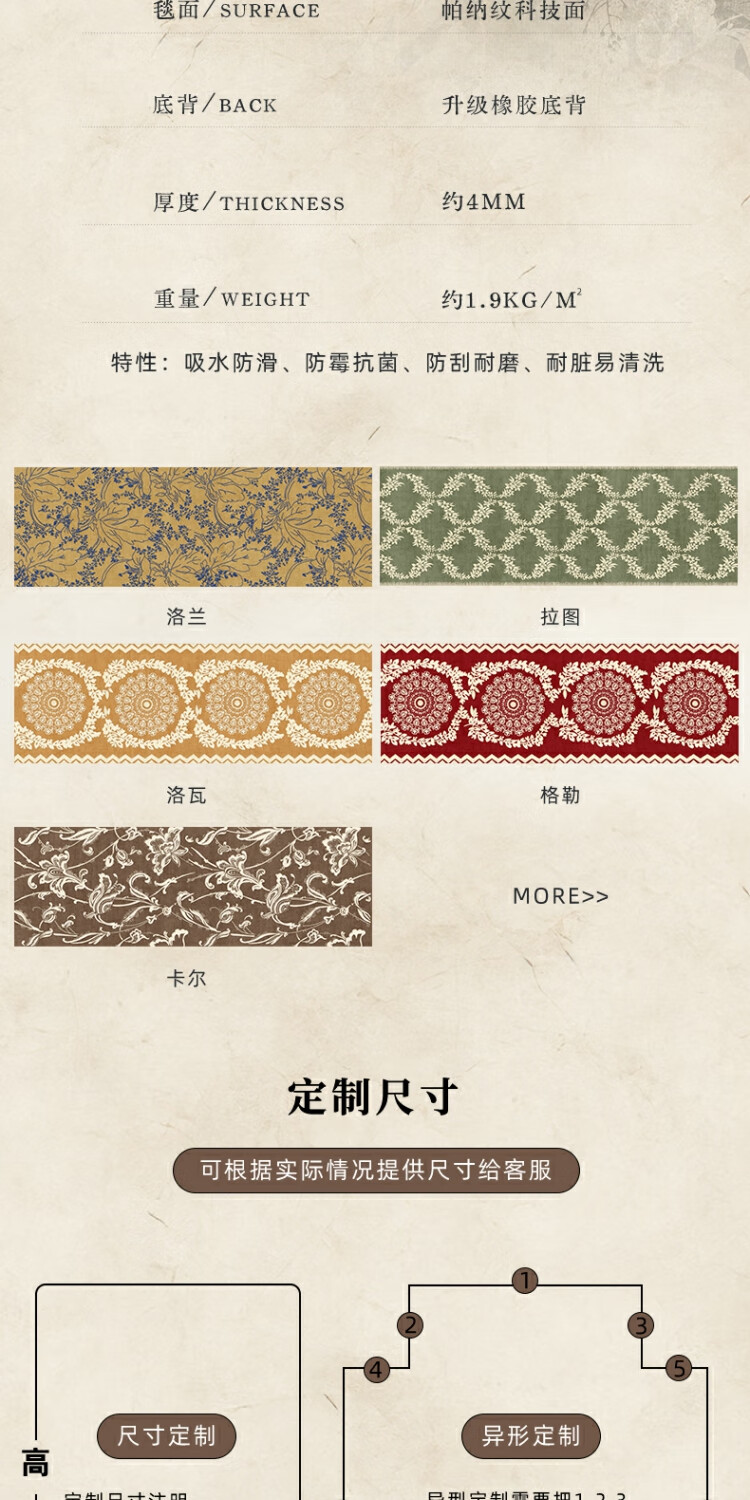 朗格【0异味硅胶】中古风桌布防水防油防烫免洗桌垫轻奢高级感餐桌垫 罗薇 【升级防滑紧贴桌面】 60*60cm