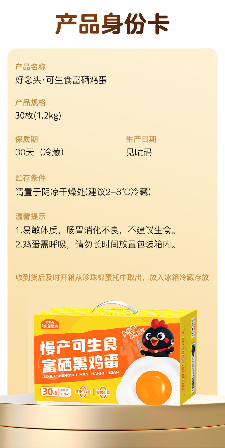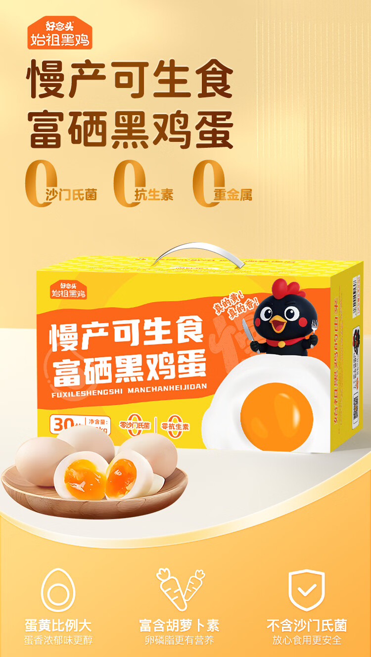 好念头始祖黑鸡可生食富硒鸡蛋 无菌健康营养早餐无抗土鸡蛋新鲜送礼盒 可生食30枚富硒鸡蛋