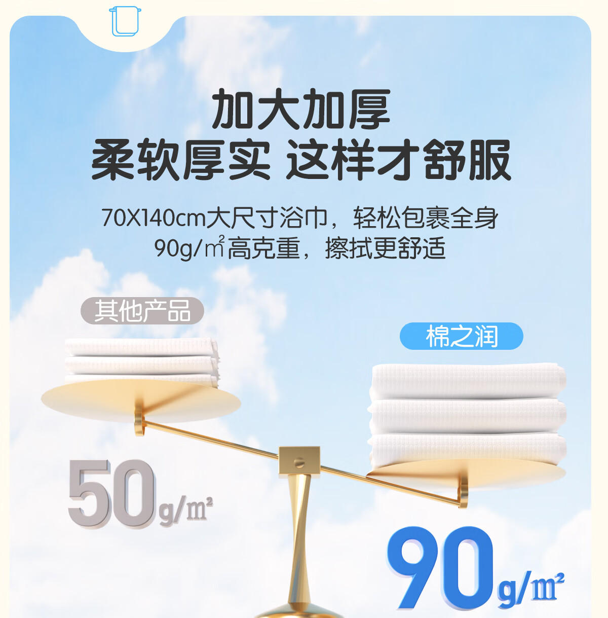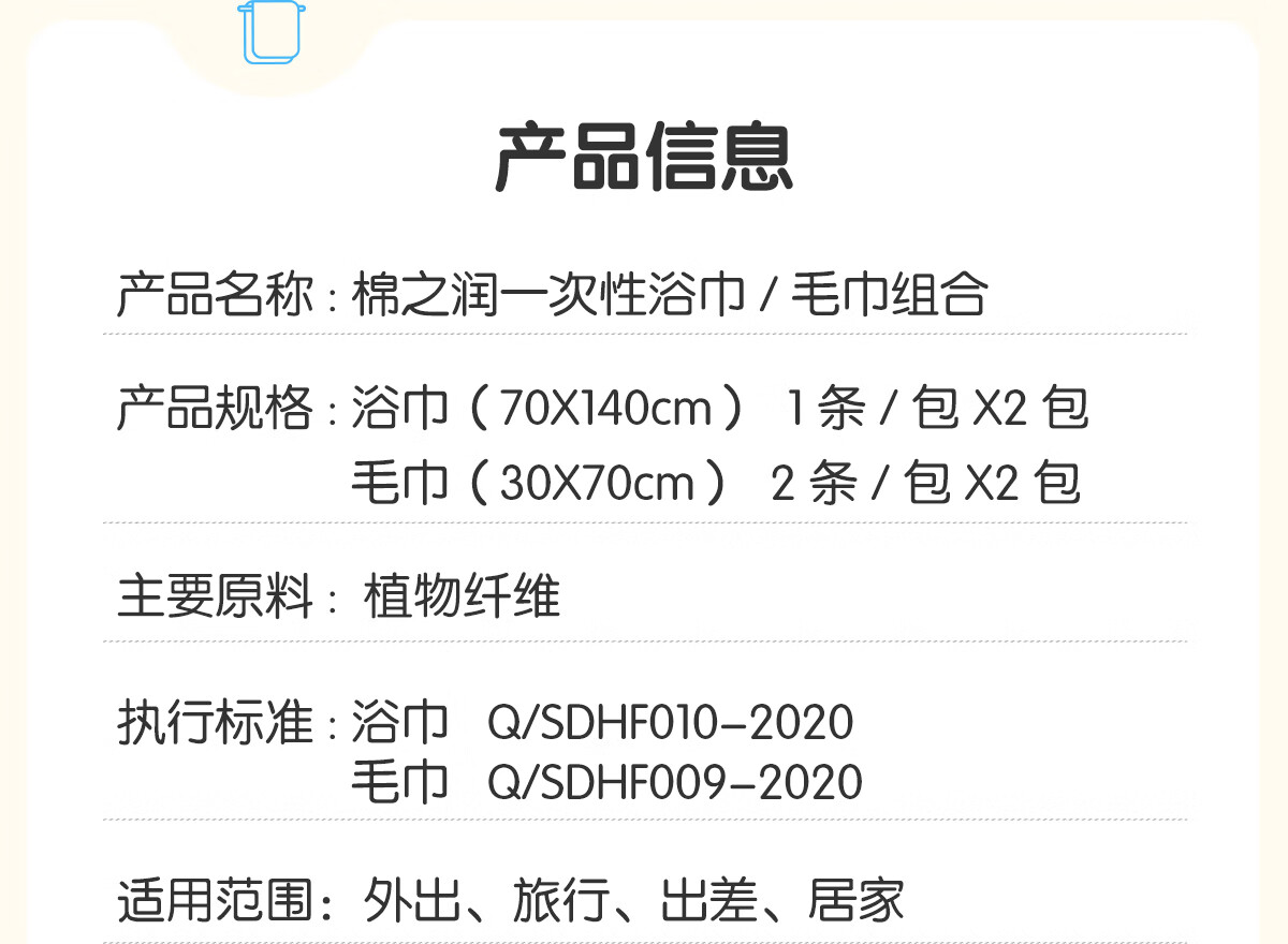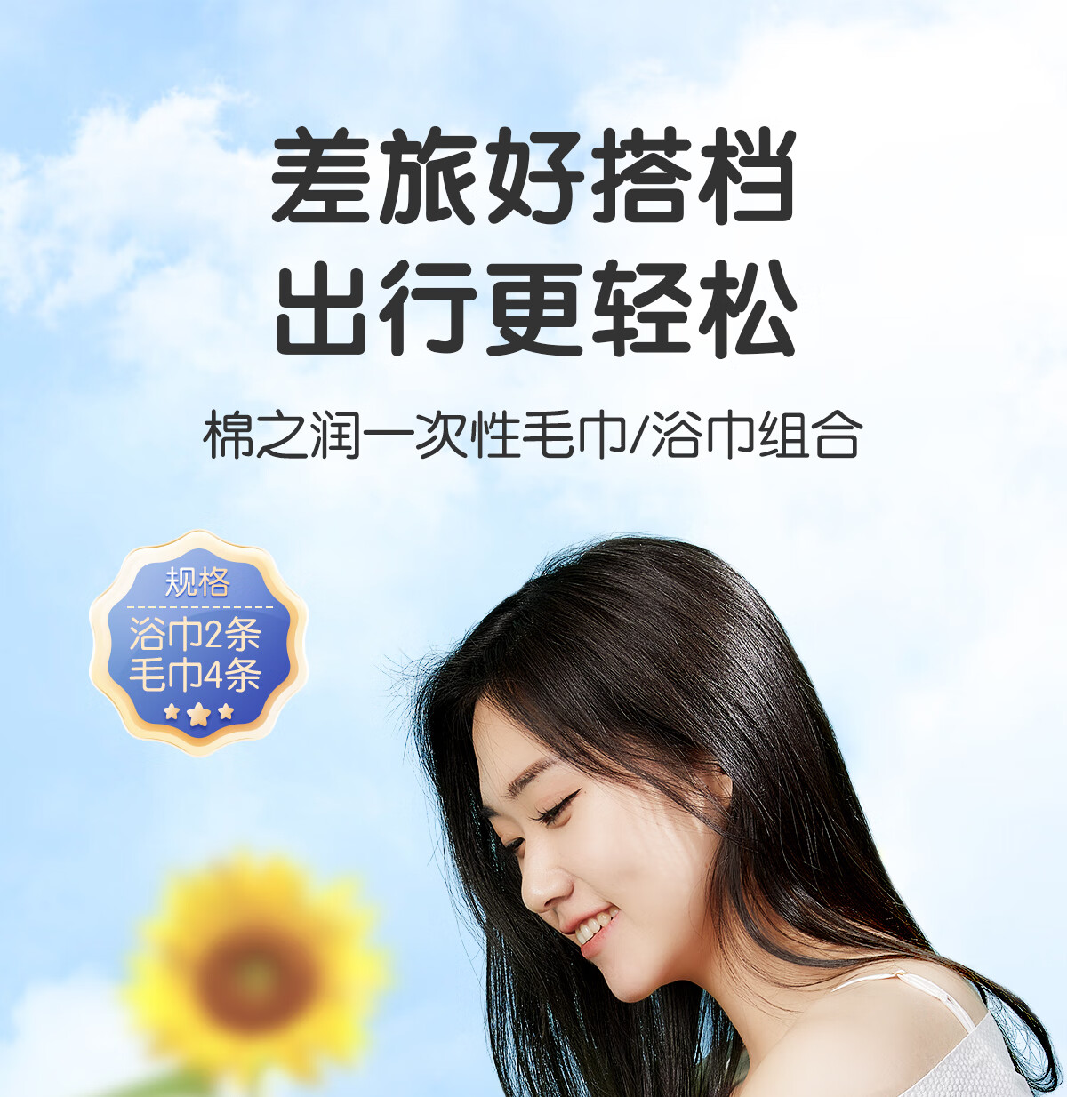 棉之润一次性浴巾毛巾 2条大浴巾4条大毛巾旅行装 加厚便携酒店差旅用品