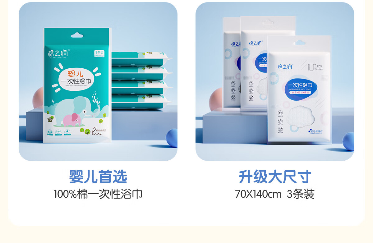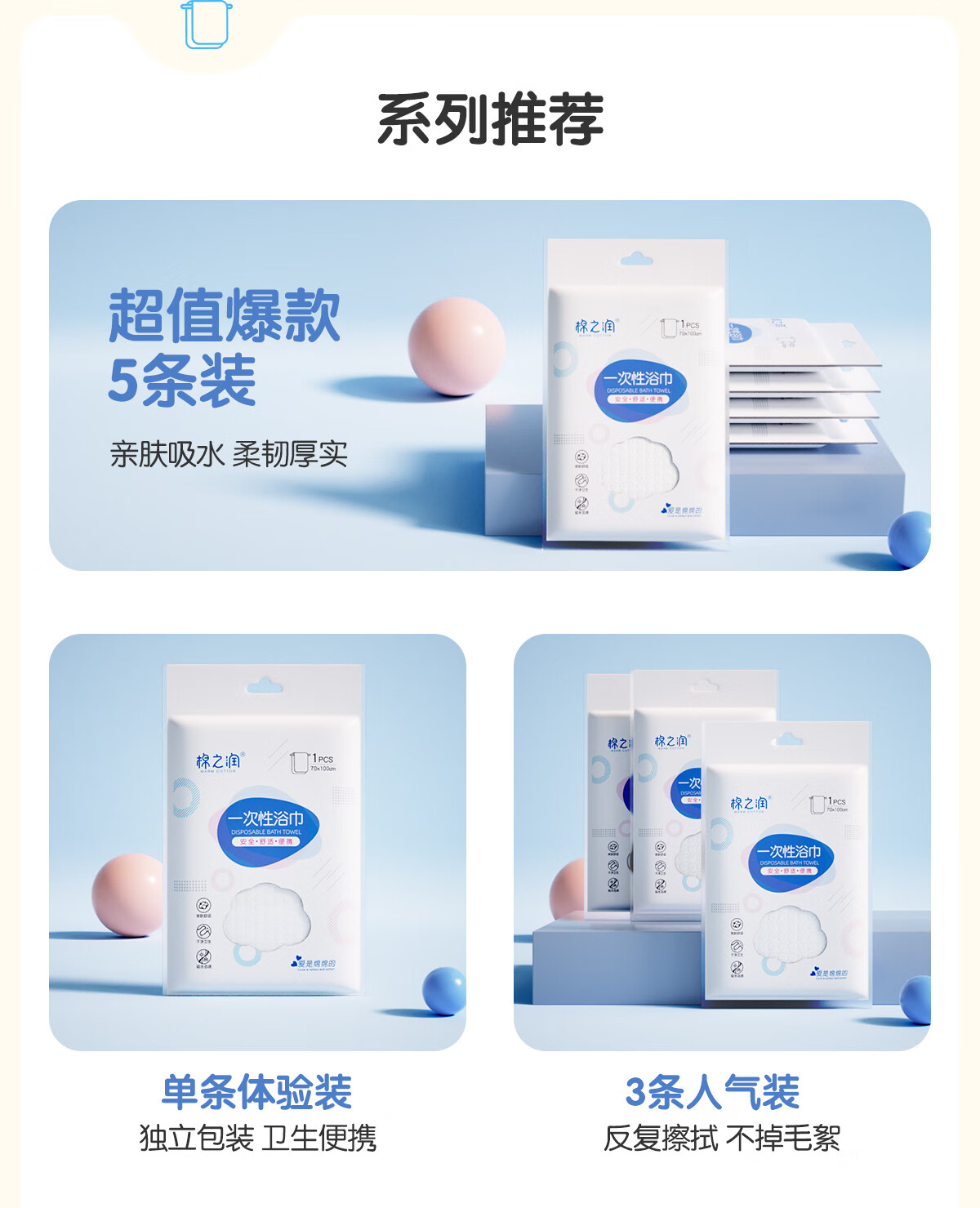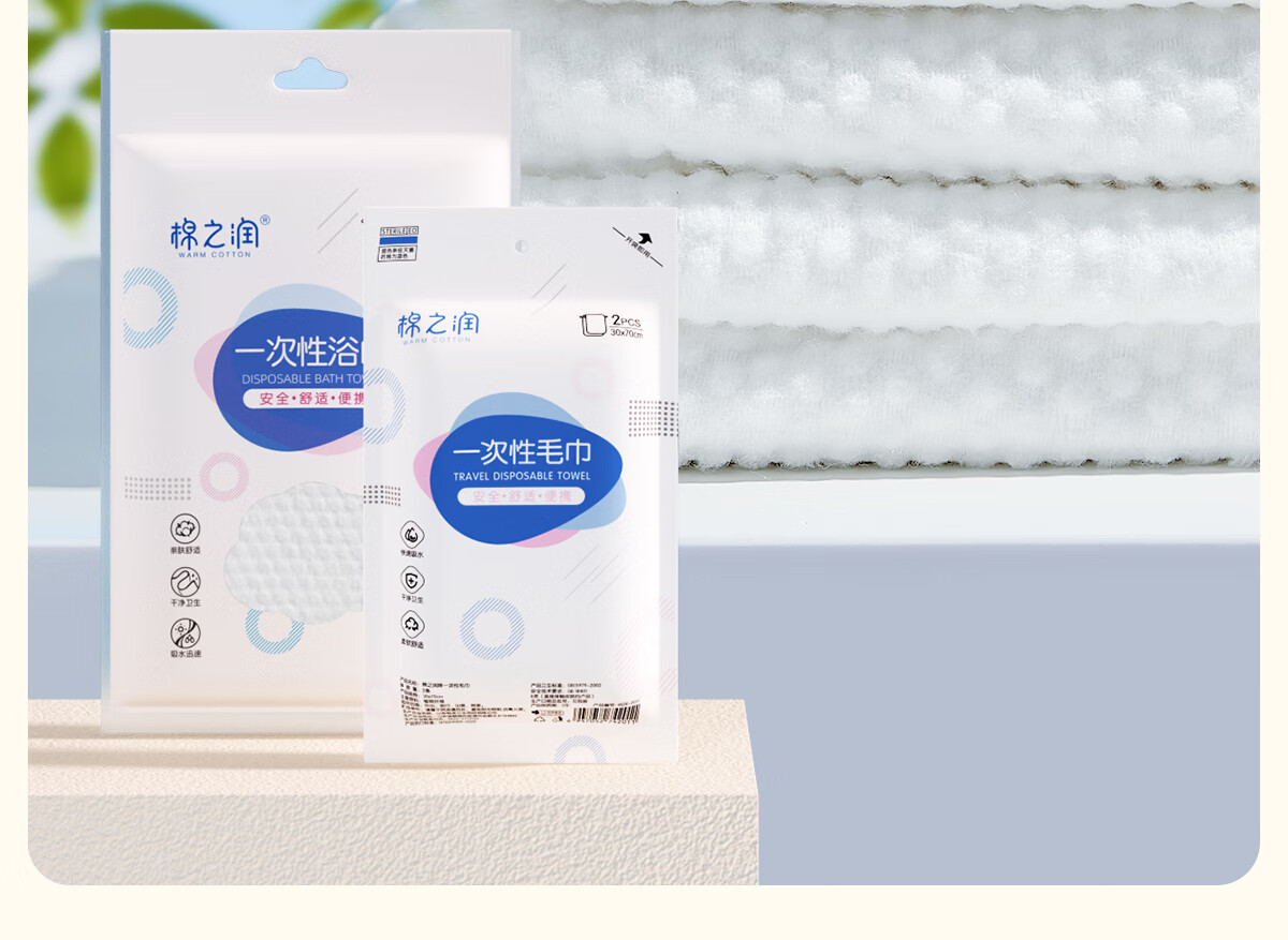 棉之润一次性浴巾毛巾 2条大浴巾4条大毛巾旅行装 加厚便携酒店差旅用品