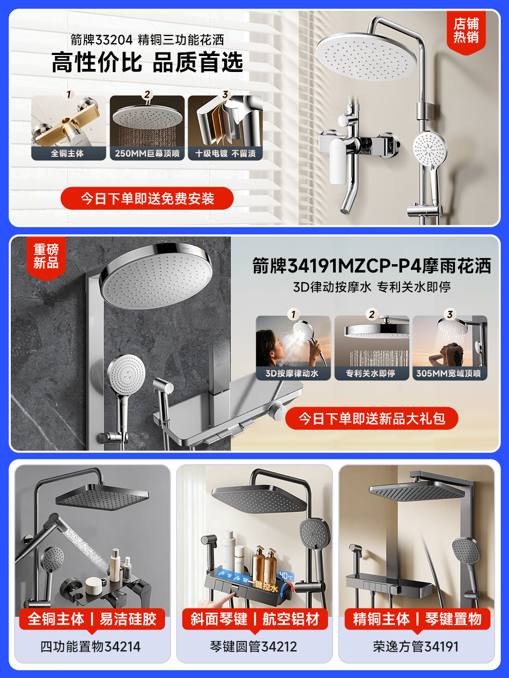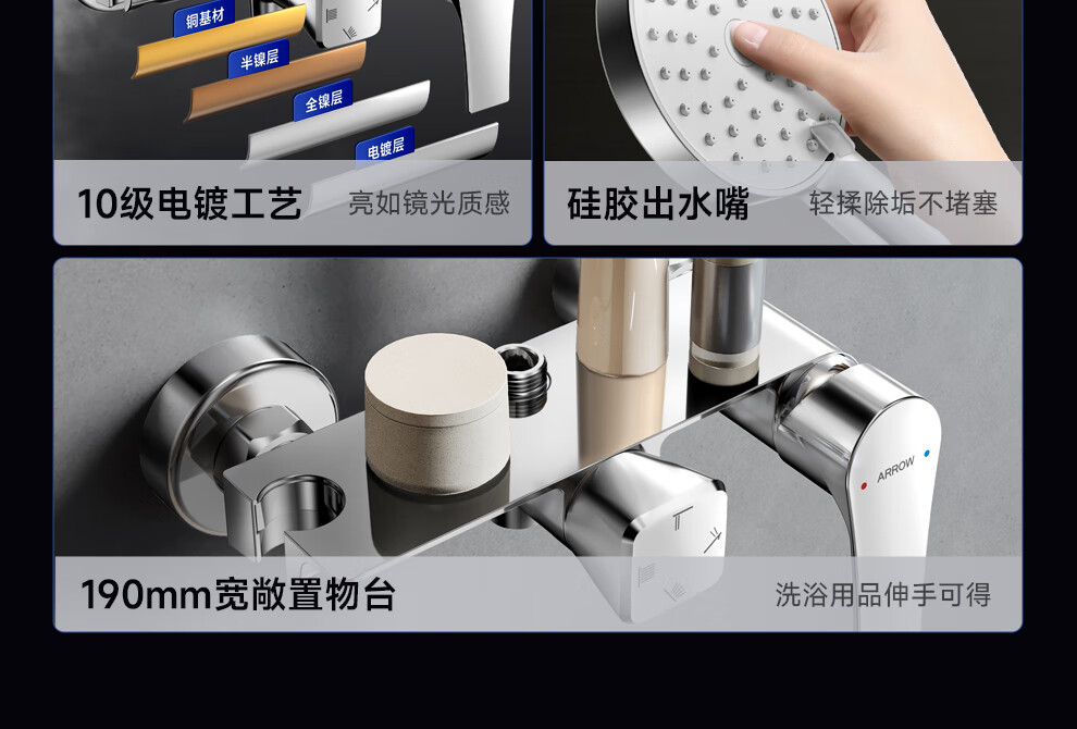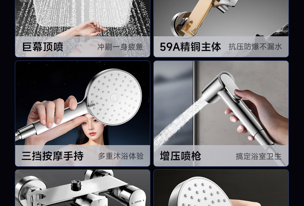 箭牌淋浴花洒套装 精铜主体大顶喷花洒全套手持增压【政府补贴15%】