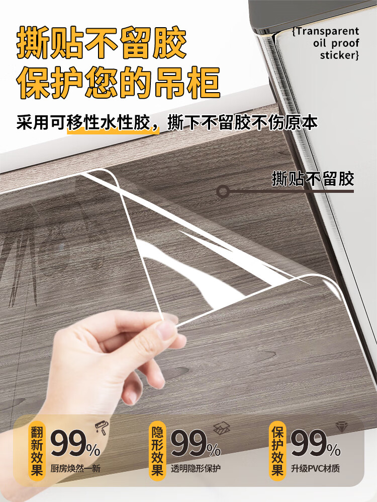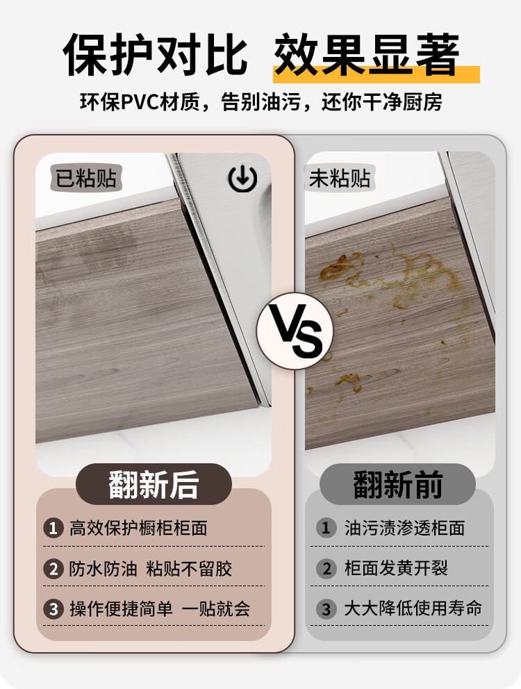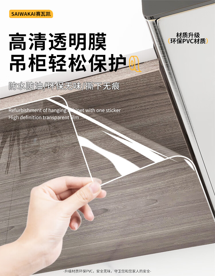 赛瓦凯吊柜防油贴纸自粘厨房静电防水保护膜橱柜子餐边柜防潮防蒸汽柜膜 【3倍特厚不留胶款】防油/防烫/防蒸汽 45CM×5米长