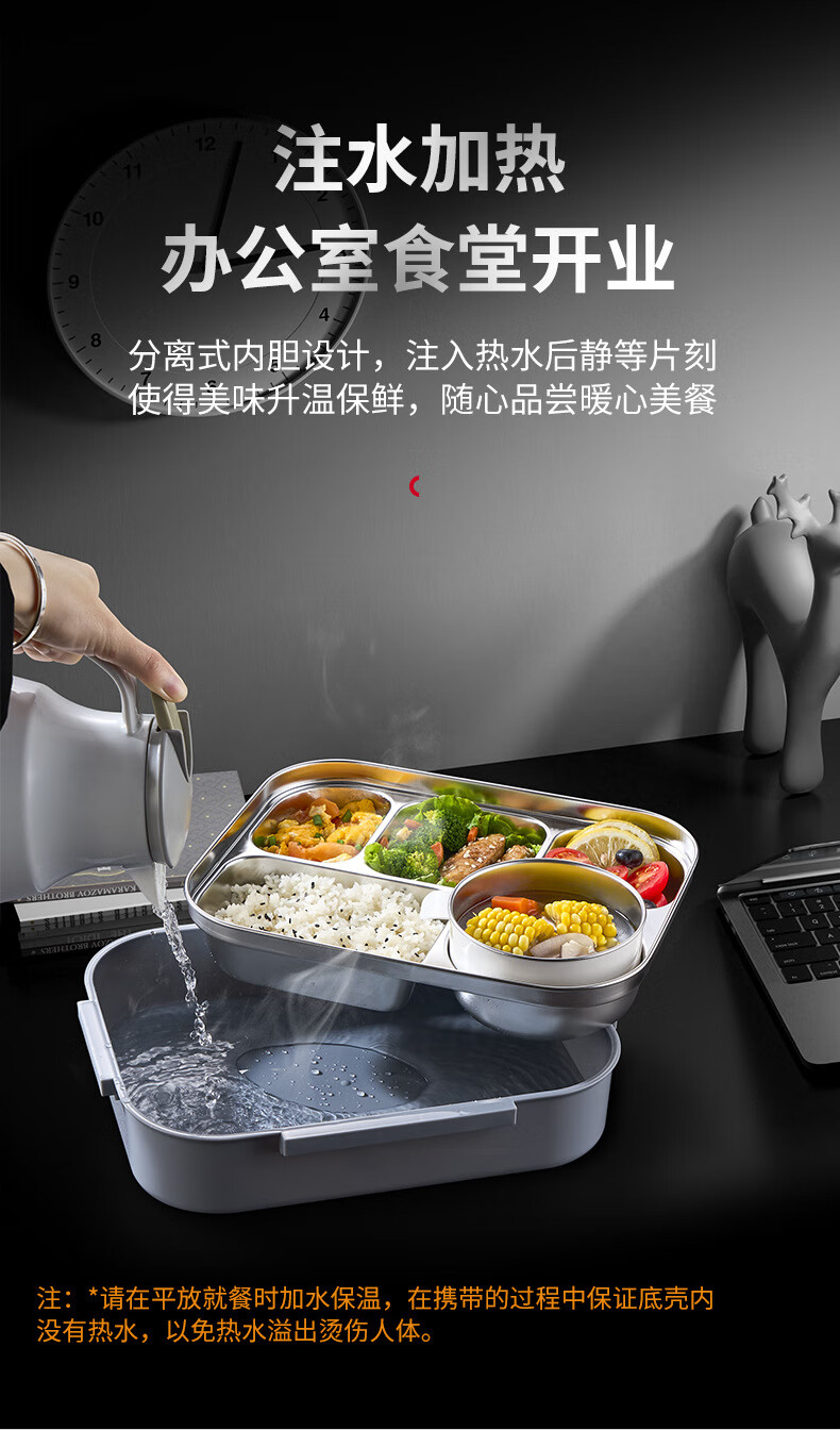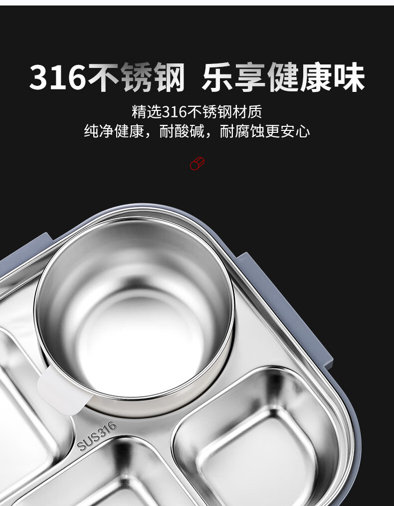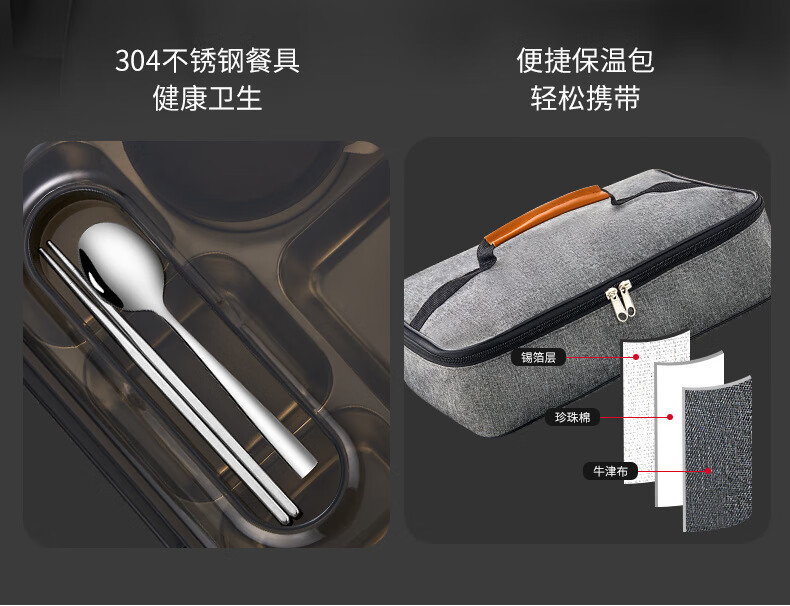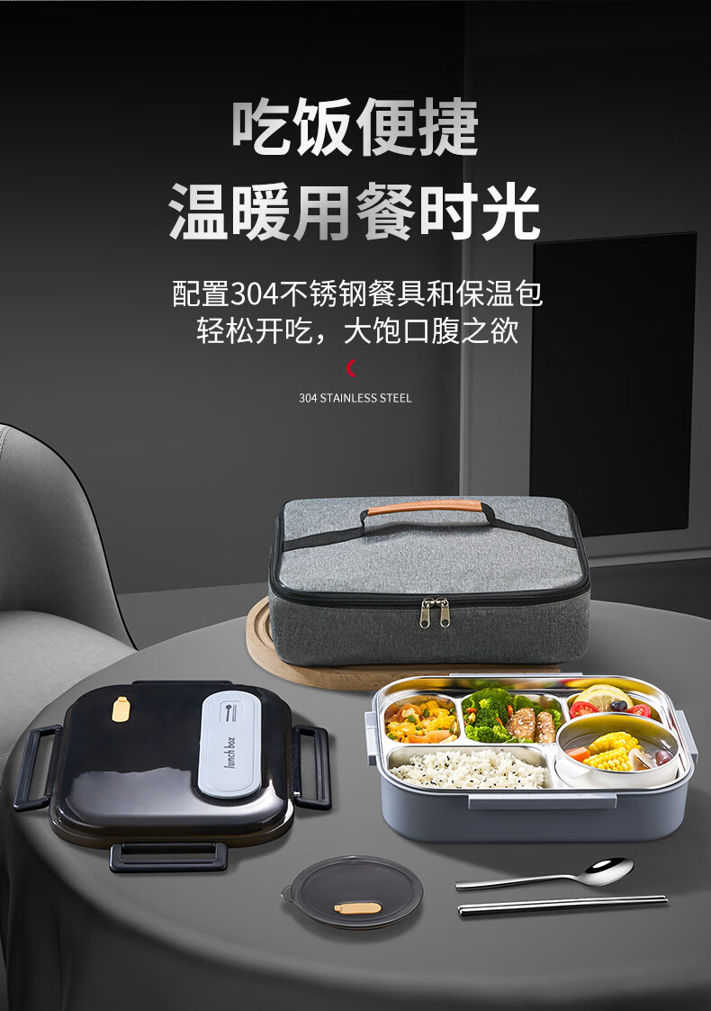 WFFPM德国品牌食品级316不锈钢饭盒上班可微波炉分隔密封餐盒学生上学 灰色大号5格(餐具+保温袋) 5分隔 2800ml