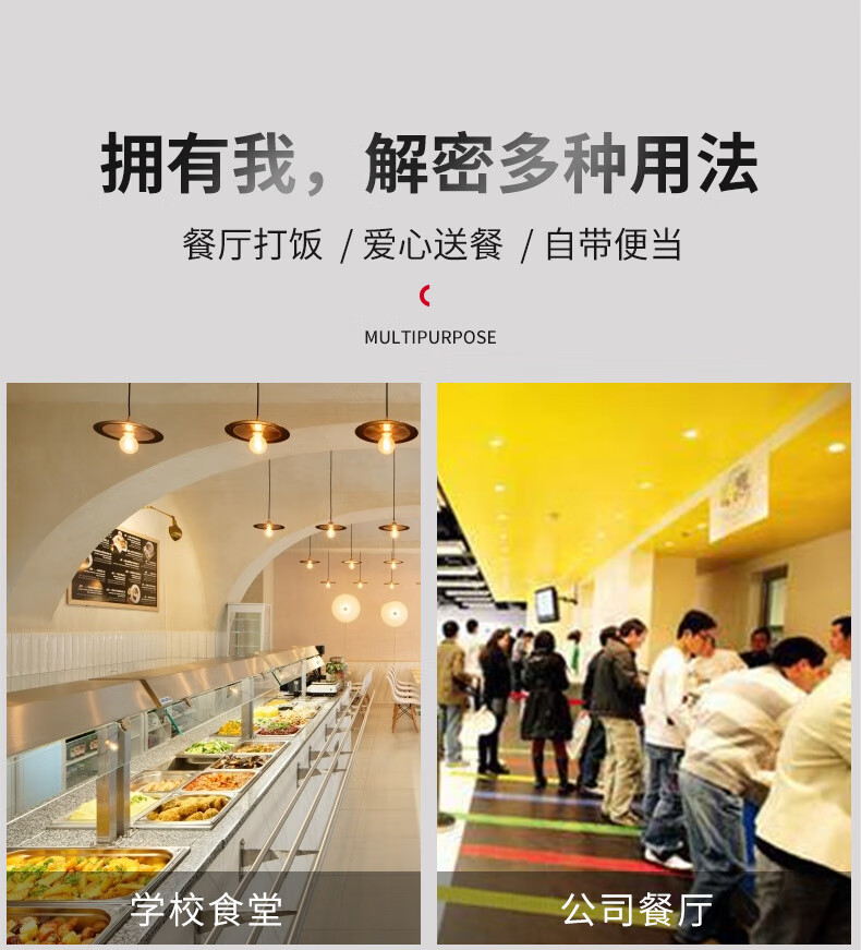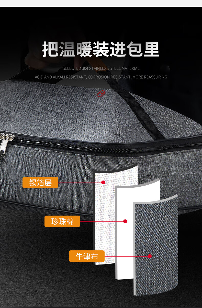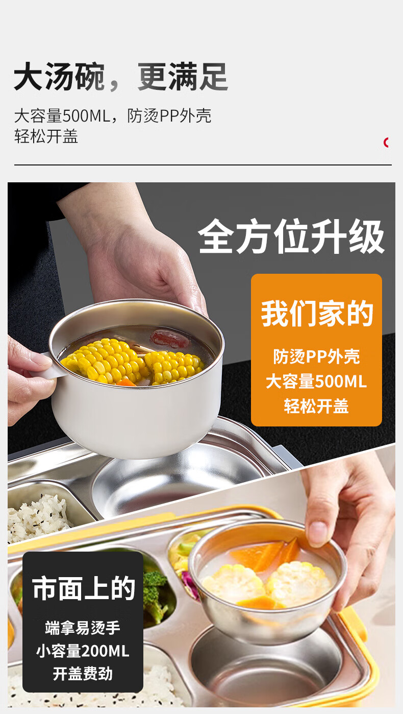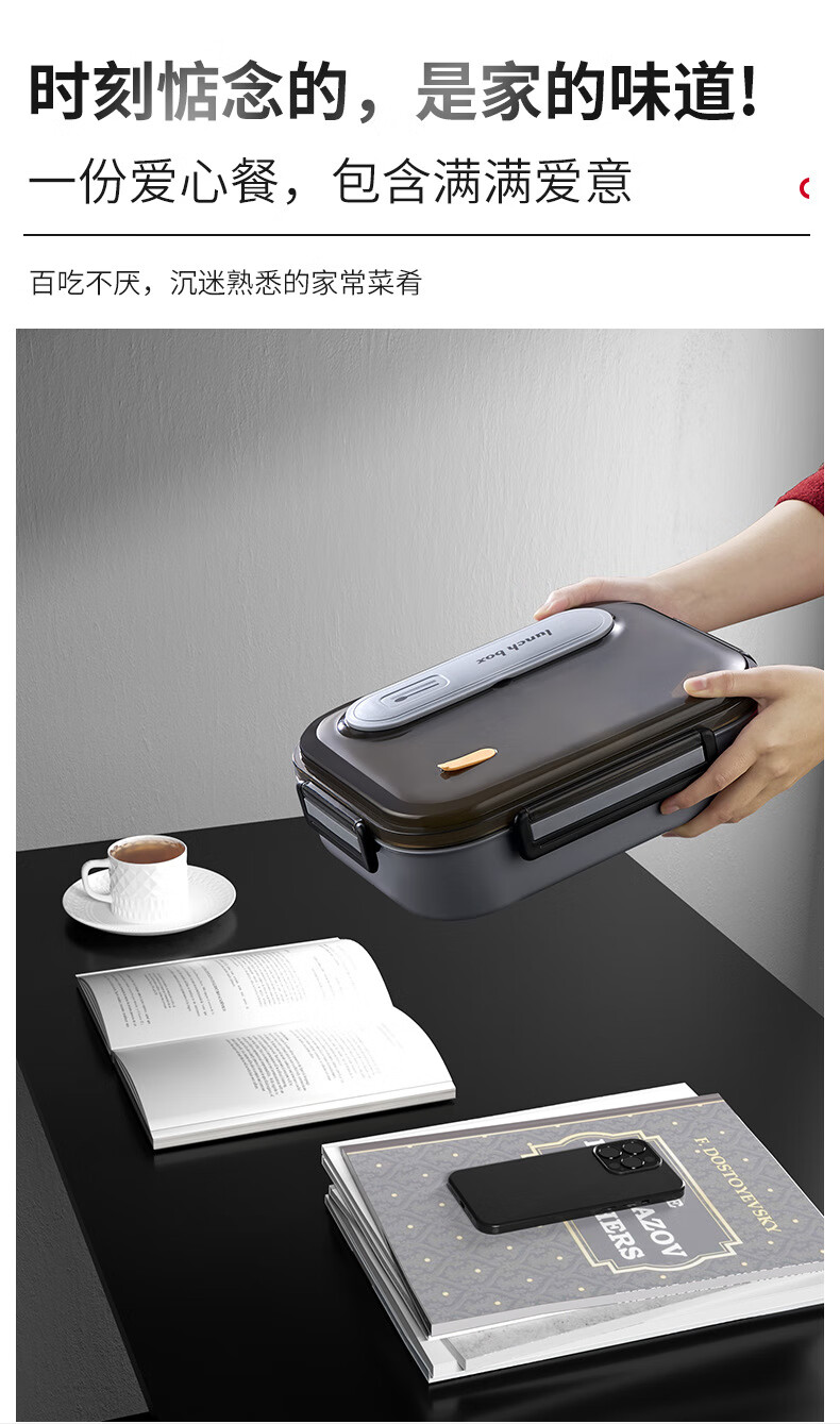 WFFPM德国品牌食品级316不锈钢饭盒上班可微波炉分隔密封餐盒学生上学 灰色大号5格(餐具+保温袋) 5分隔 2800ml