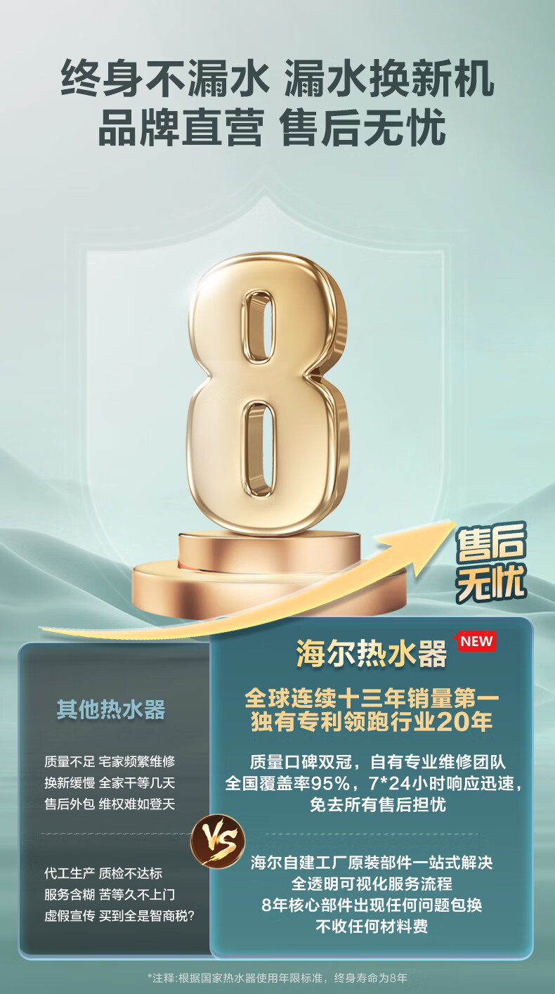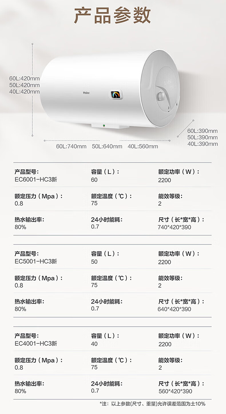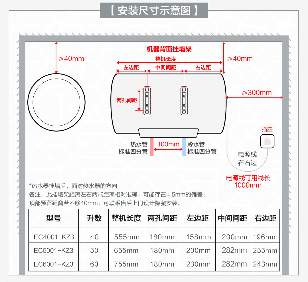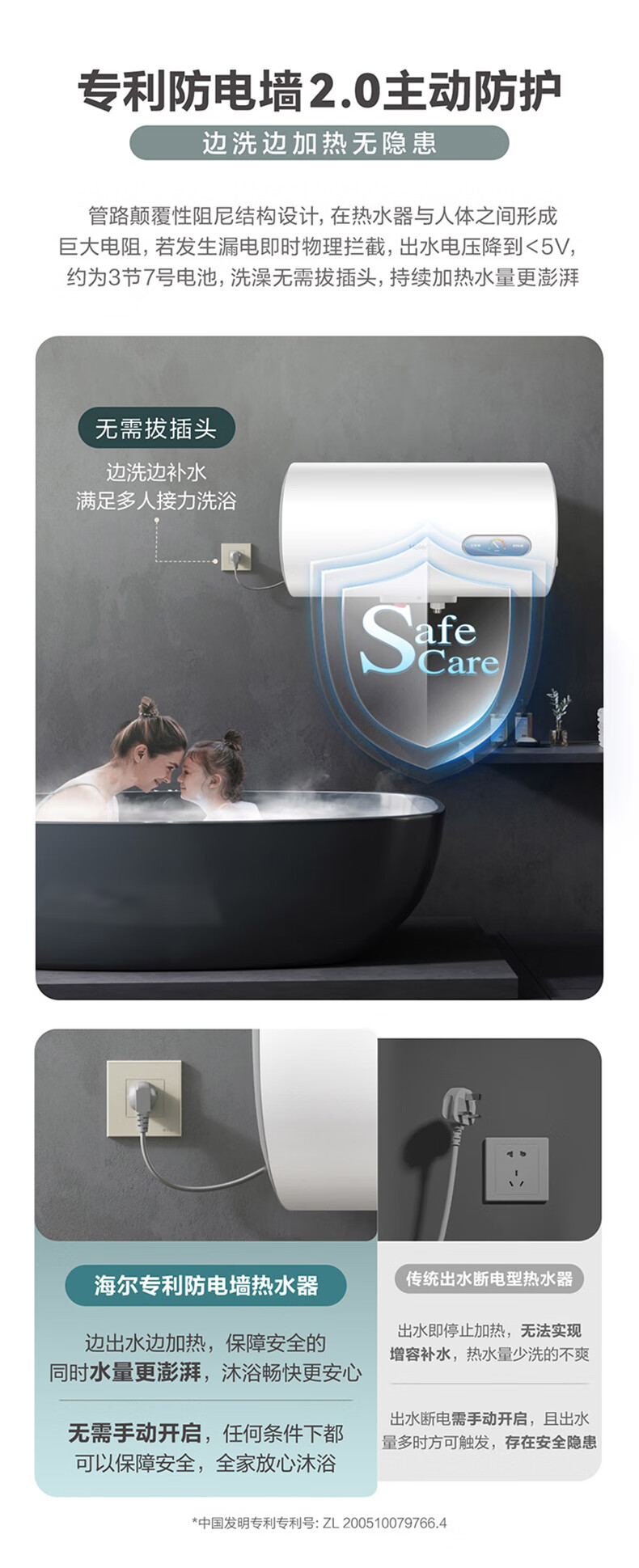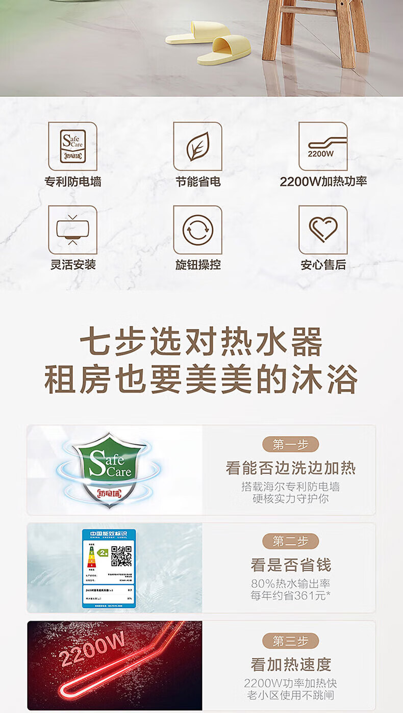 海尔(Haier)热水器电热水器50升【咨询客服享补贴 】家用储水式2200W速热KZ3一级能效小户型租房优选防电墙2.0 40L 2200W 一级节能KZ3