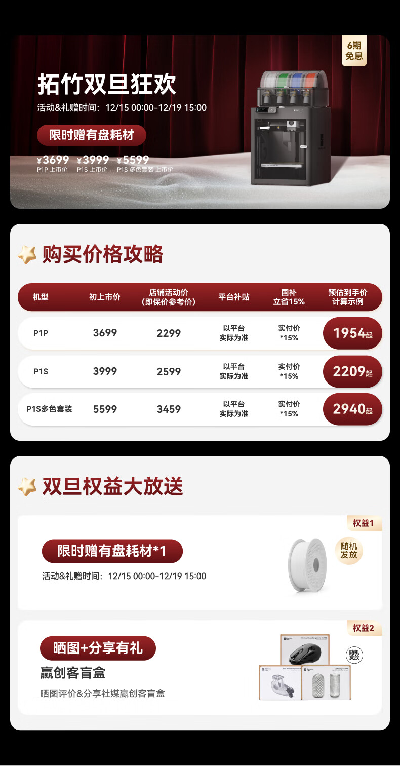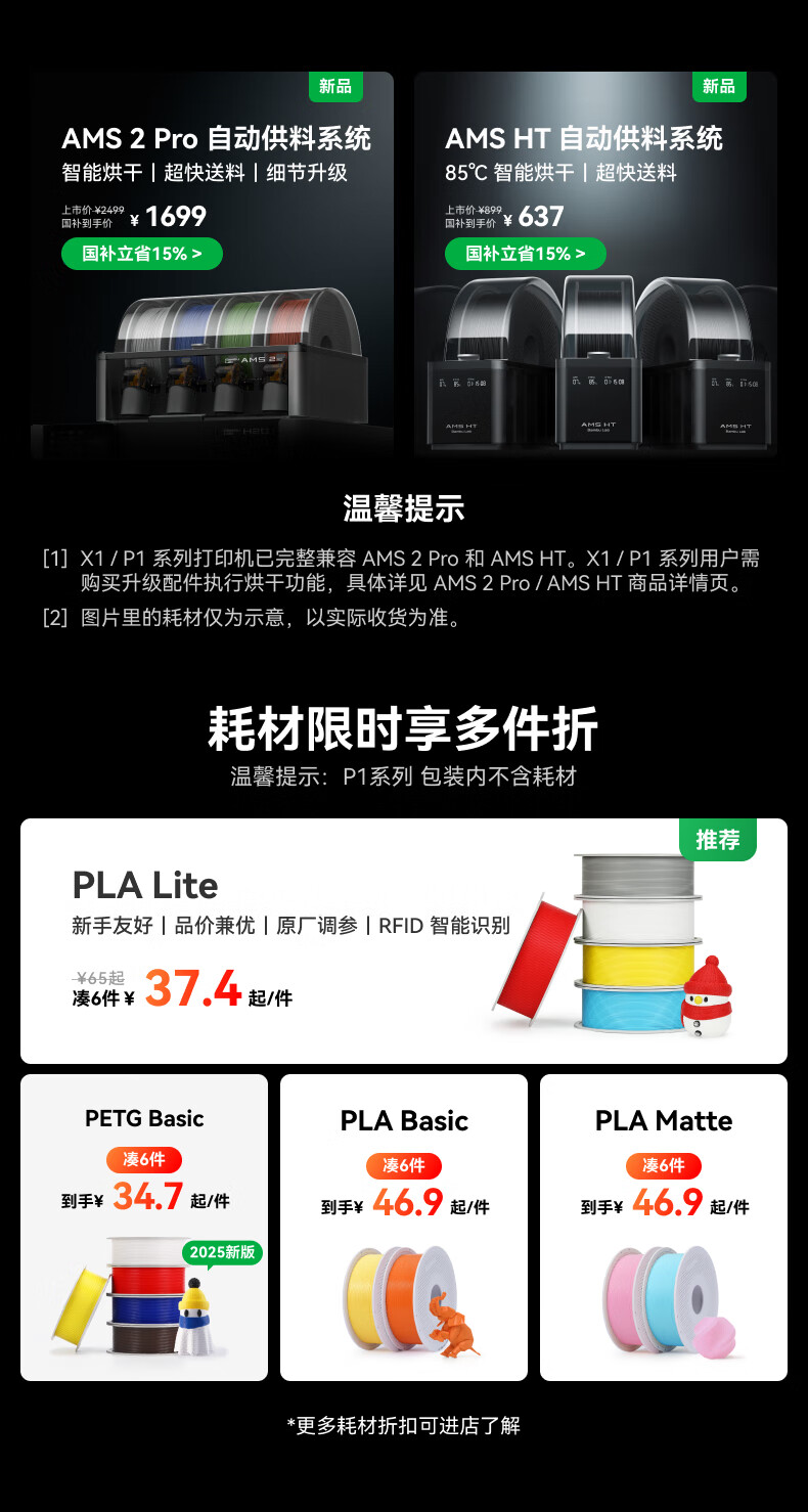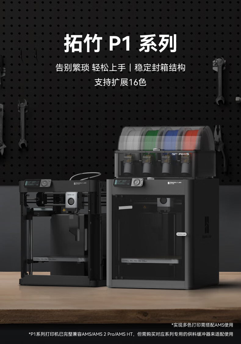 bambulabP1SC 3D打印机桌面家用FDM全自动调平大尺寸多色高速3d打印机器bambulab P1S 多色套装【大陆版】