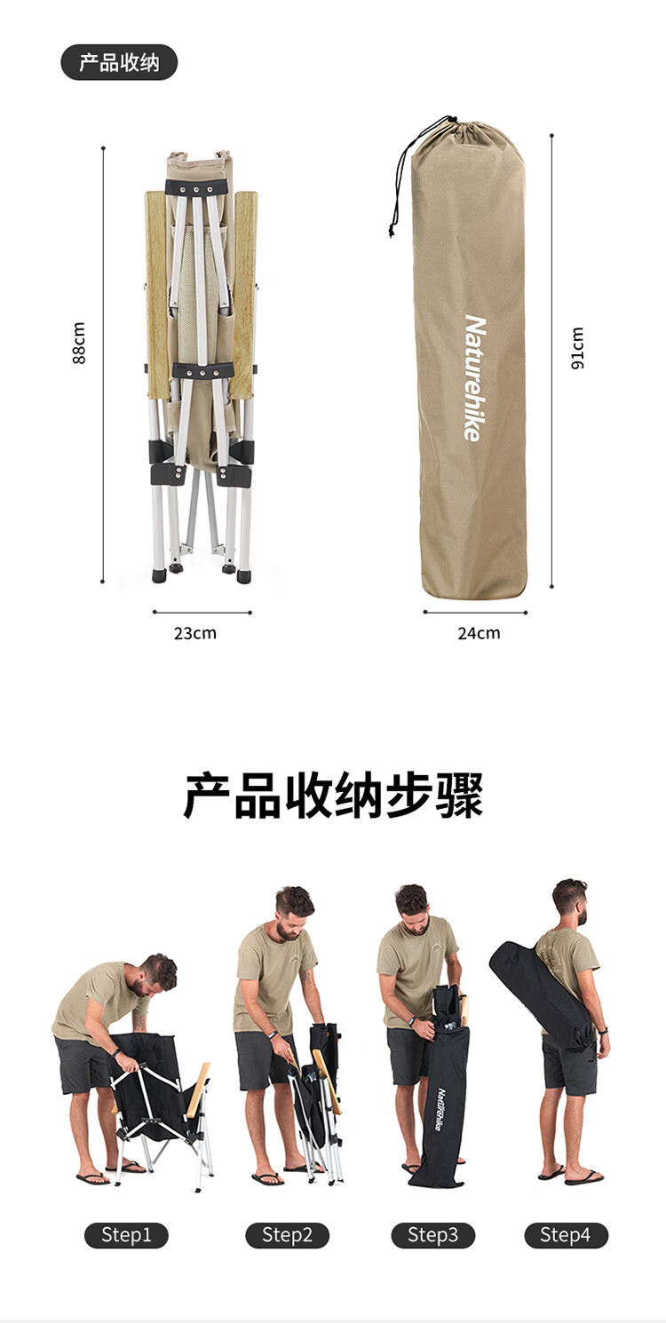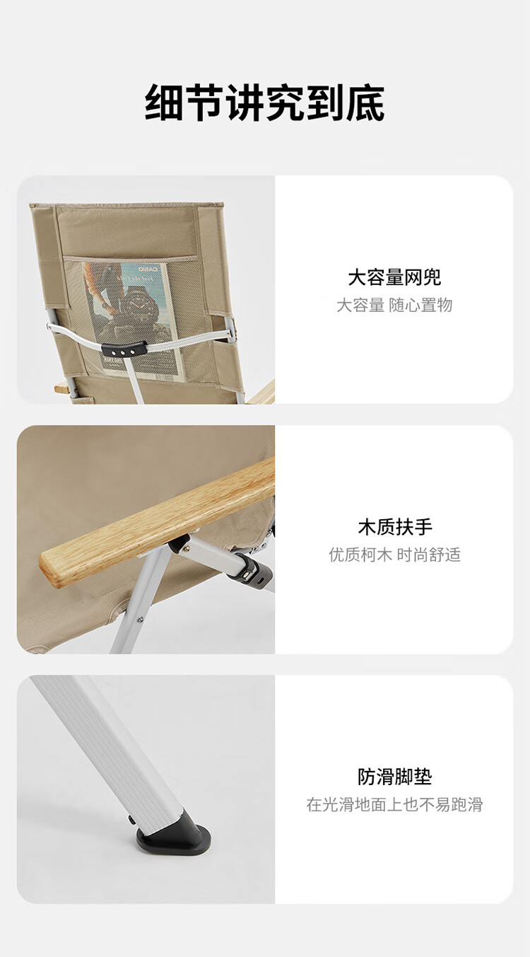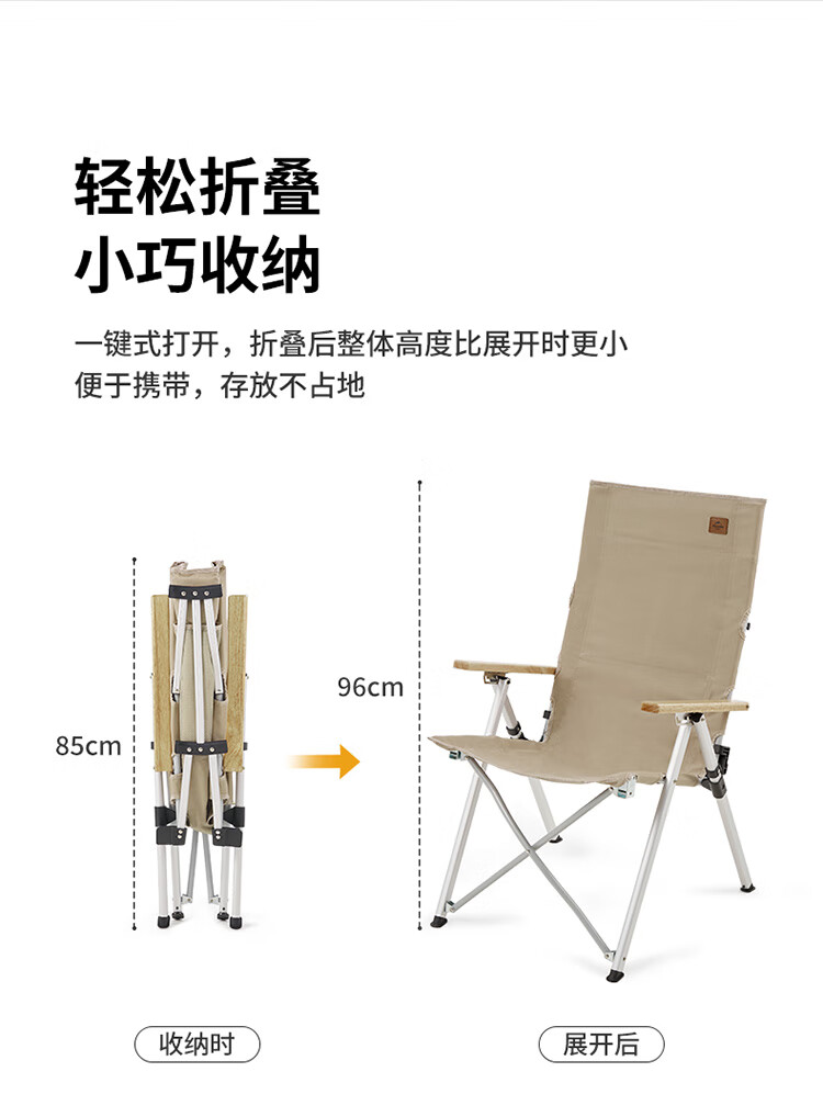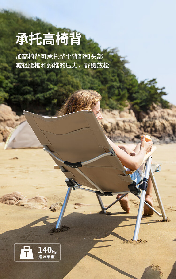 挪客Naturehike户外铝合金折叠椅便携钓鱼写生休闲椅露营沙滩椅 卡其色
