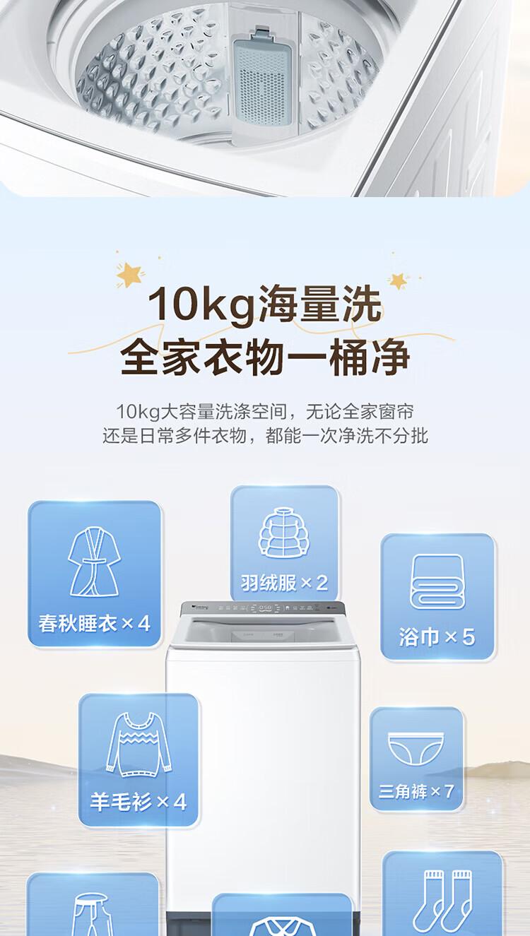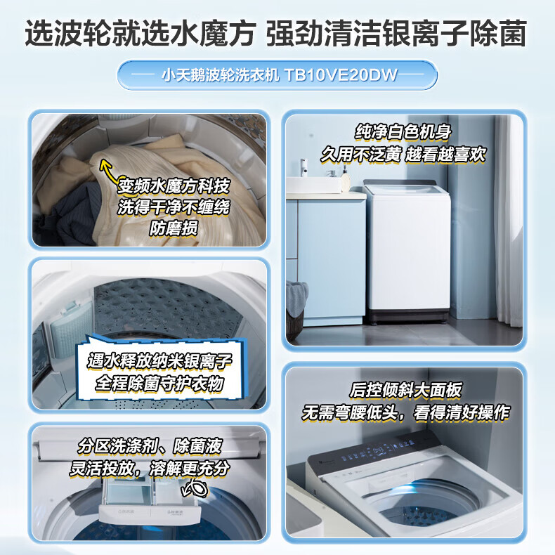 小天鹅(LittleSwan)波轮洗衣机全自动 小乌梅轻奢版【TB10VE20DW】水魔方防缠绕 10公斤 家电补贴20% 以旧换新 【轻奢版】白色高颜值+全域洁净VE20DW