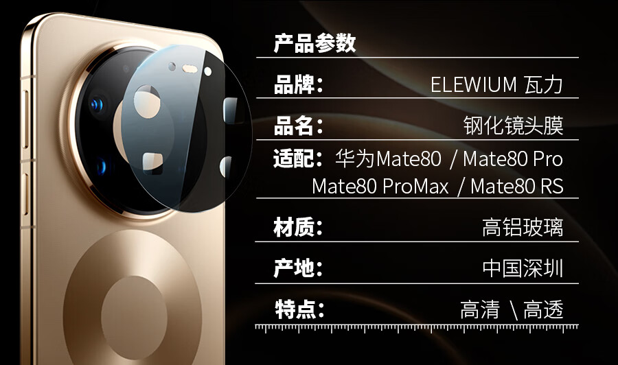 瓦力【AR增透】适用华为mate80rs镜头膜非凡大师MATE80RS后置镜头手机保护贴膜增透防炫光钢化膜