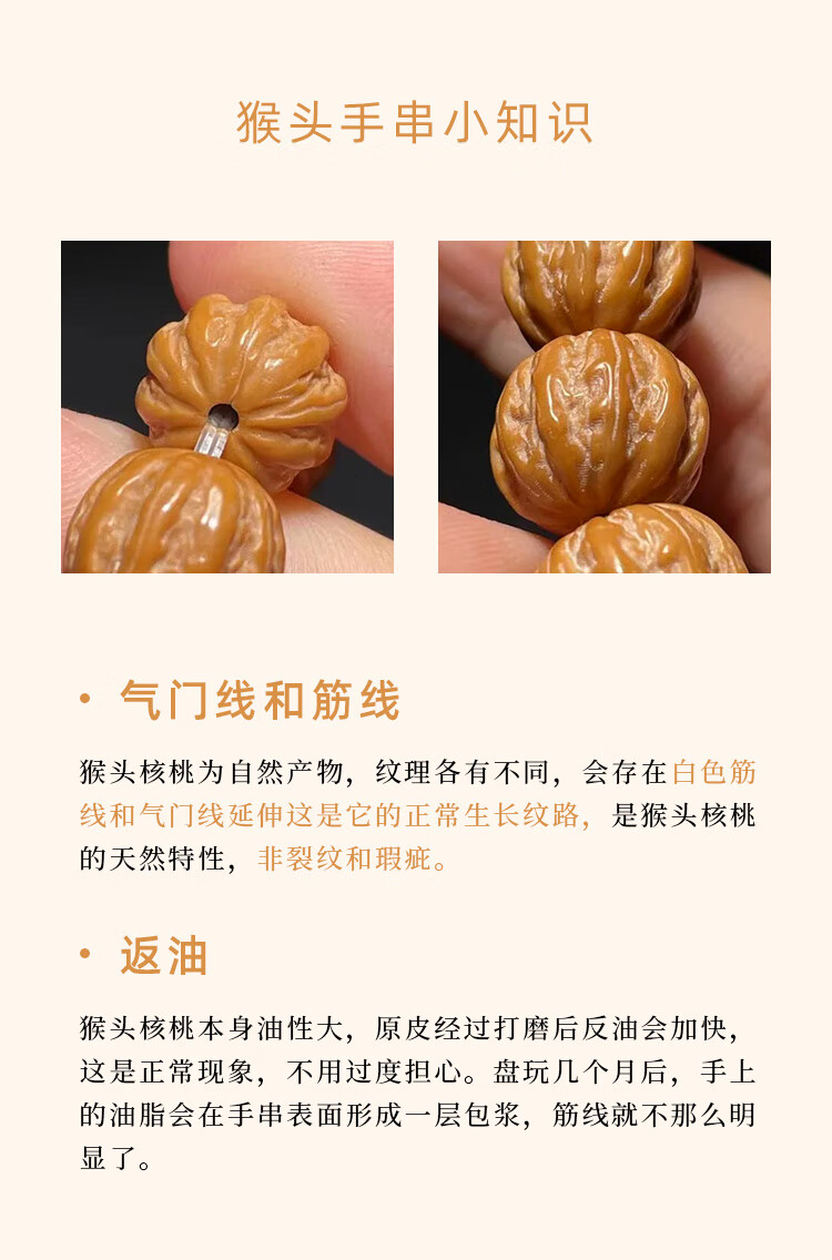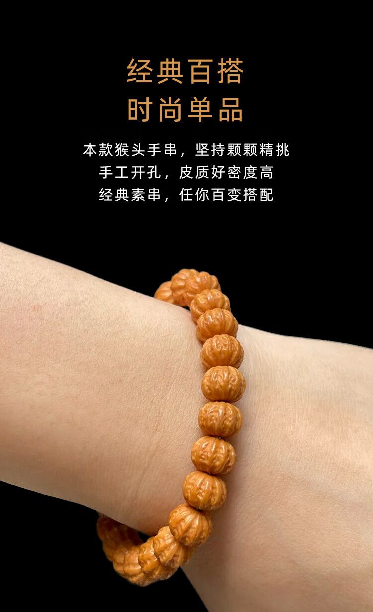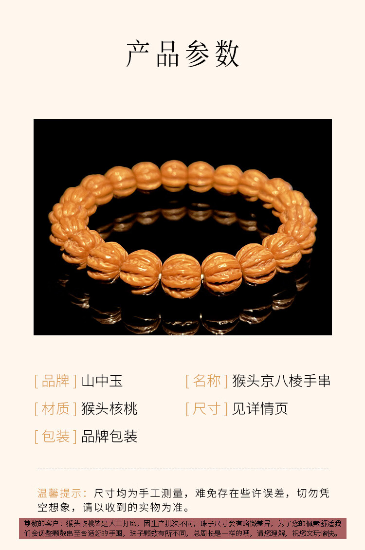 山中玉京八棱猴头手串男文玩小核桃盘玩雕刻女手链情侣中秋礼物10*12mm