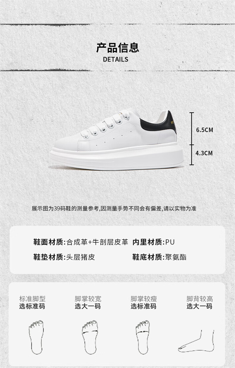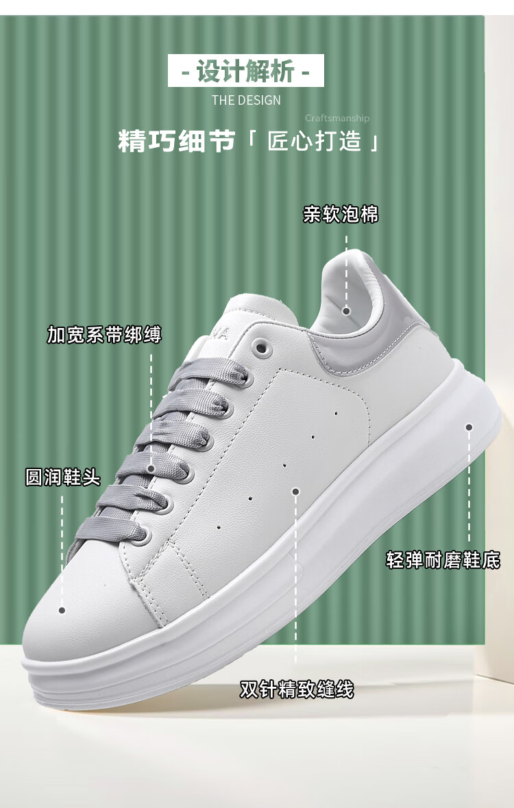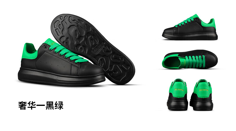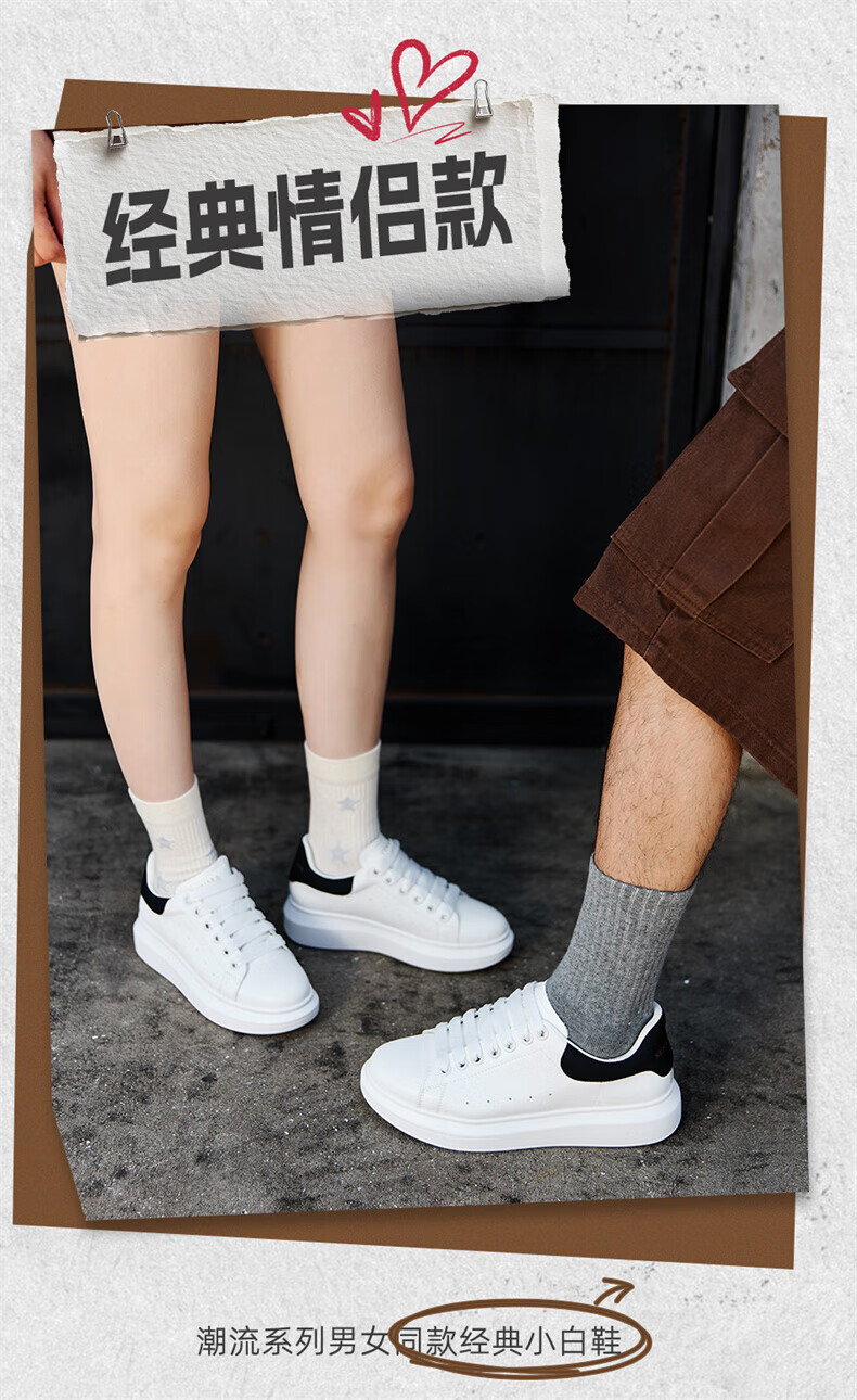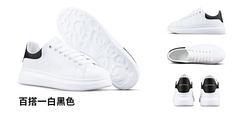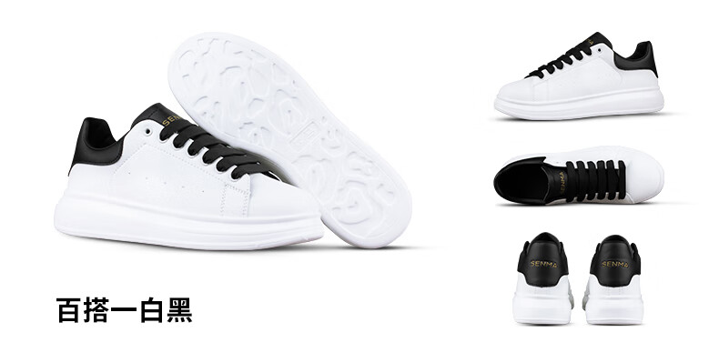 森馬新款男女小白鞋情侣款百搭运动休闲鞋板鞋轻便厚底潮流鞋子 全黑【冬季加绒款】 44