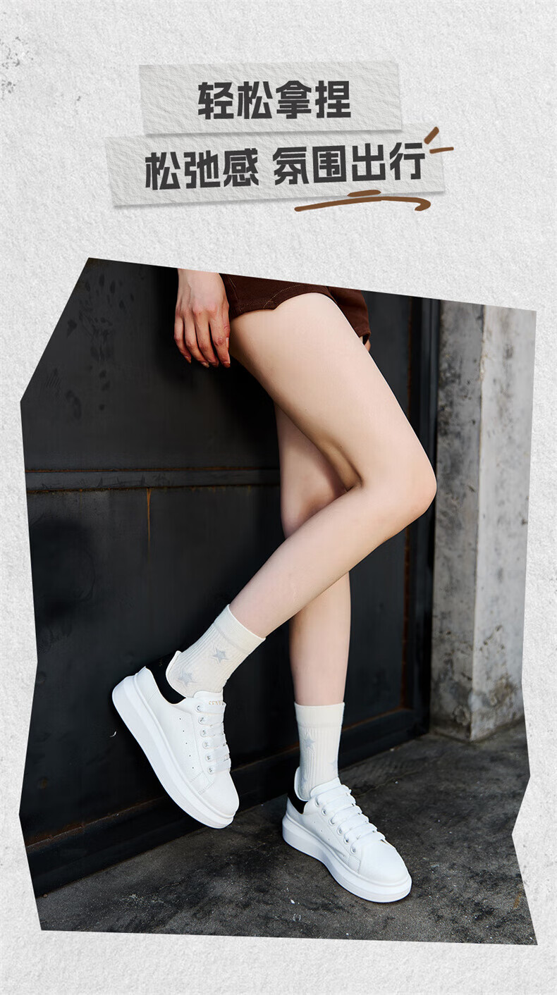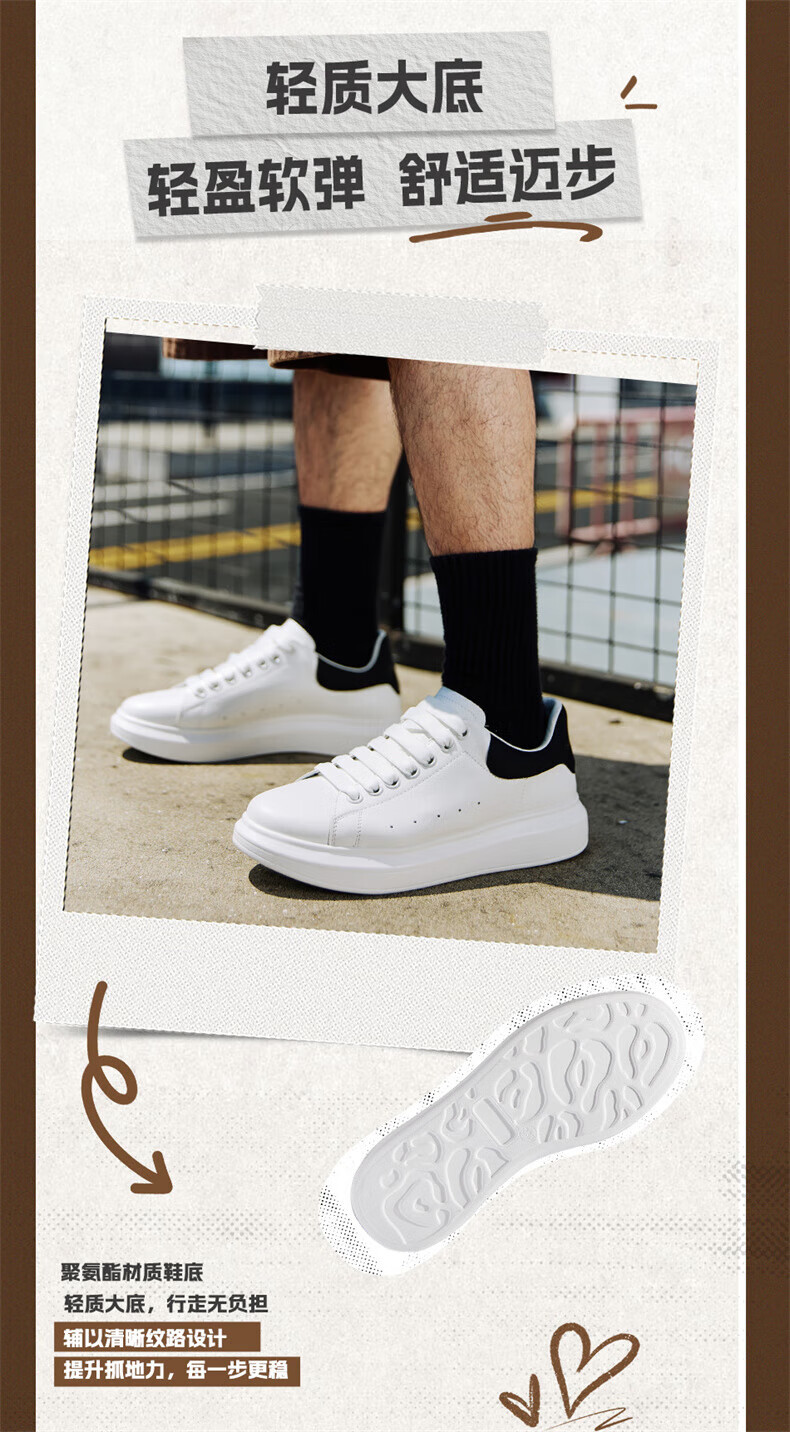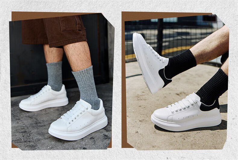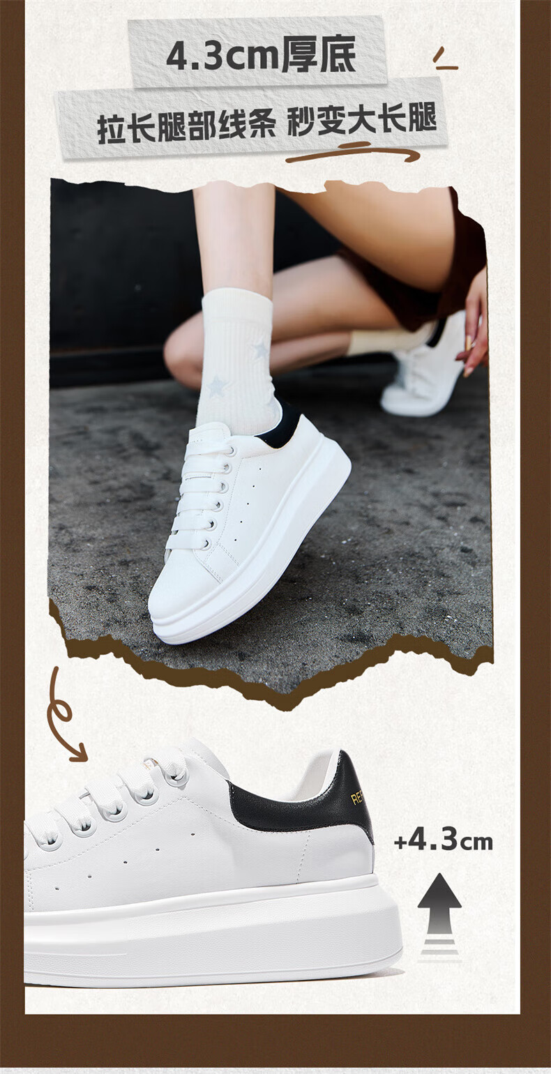 森馬新款男女小白鞋情侣款百搭运动休闲鞋板鞋轻便厚底潮流鞋子 全黑【冬季加绒款】 44